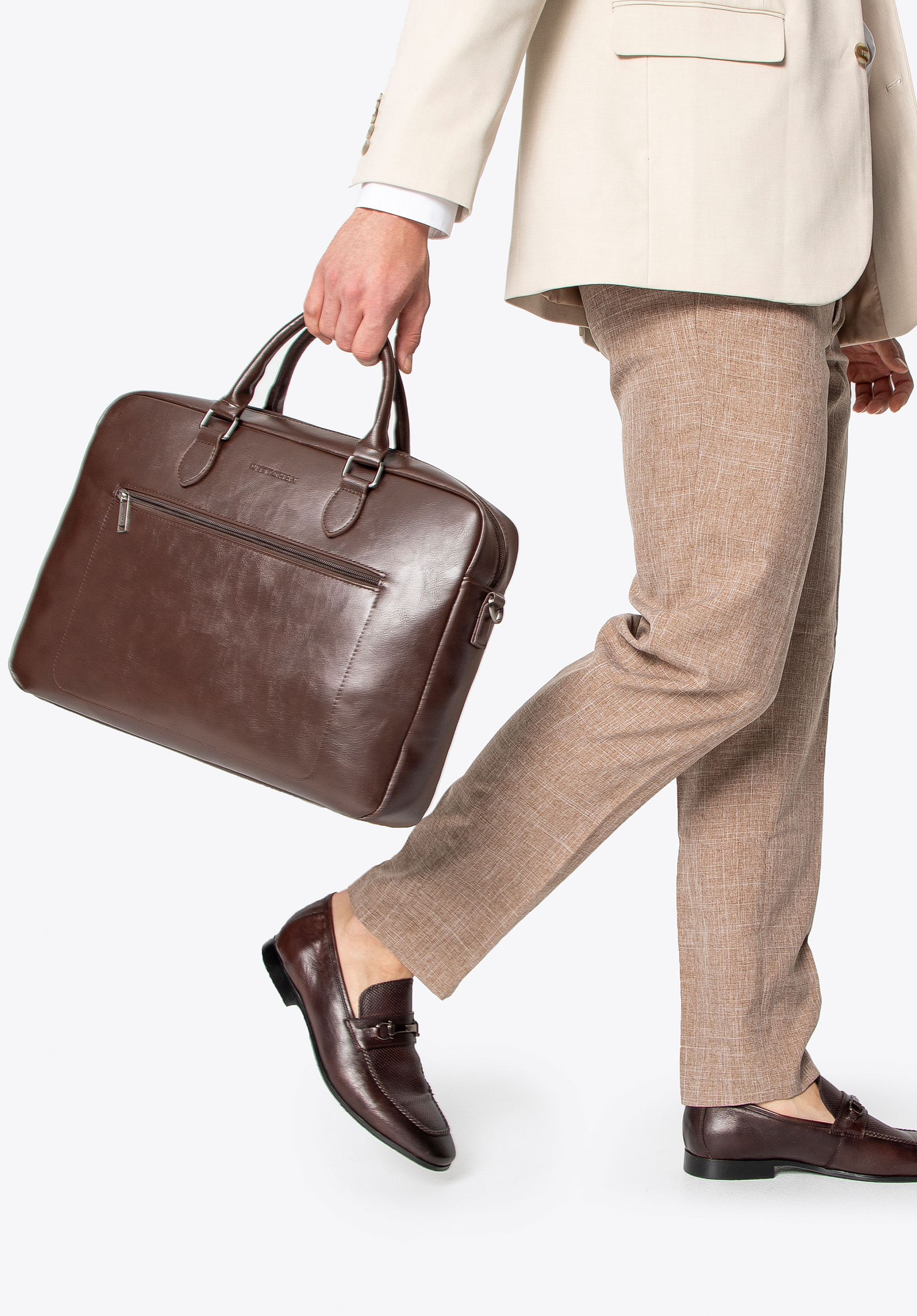This bag pairs perfectly with elegant leather wallets and belts, creating a cohesive, professional look. It also complements other leather accessories, such as cases or briefcases.