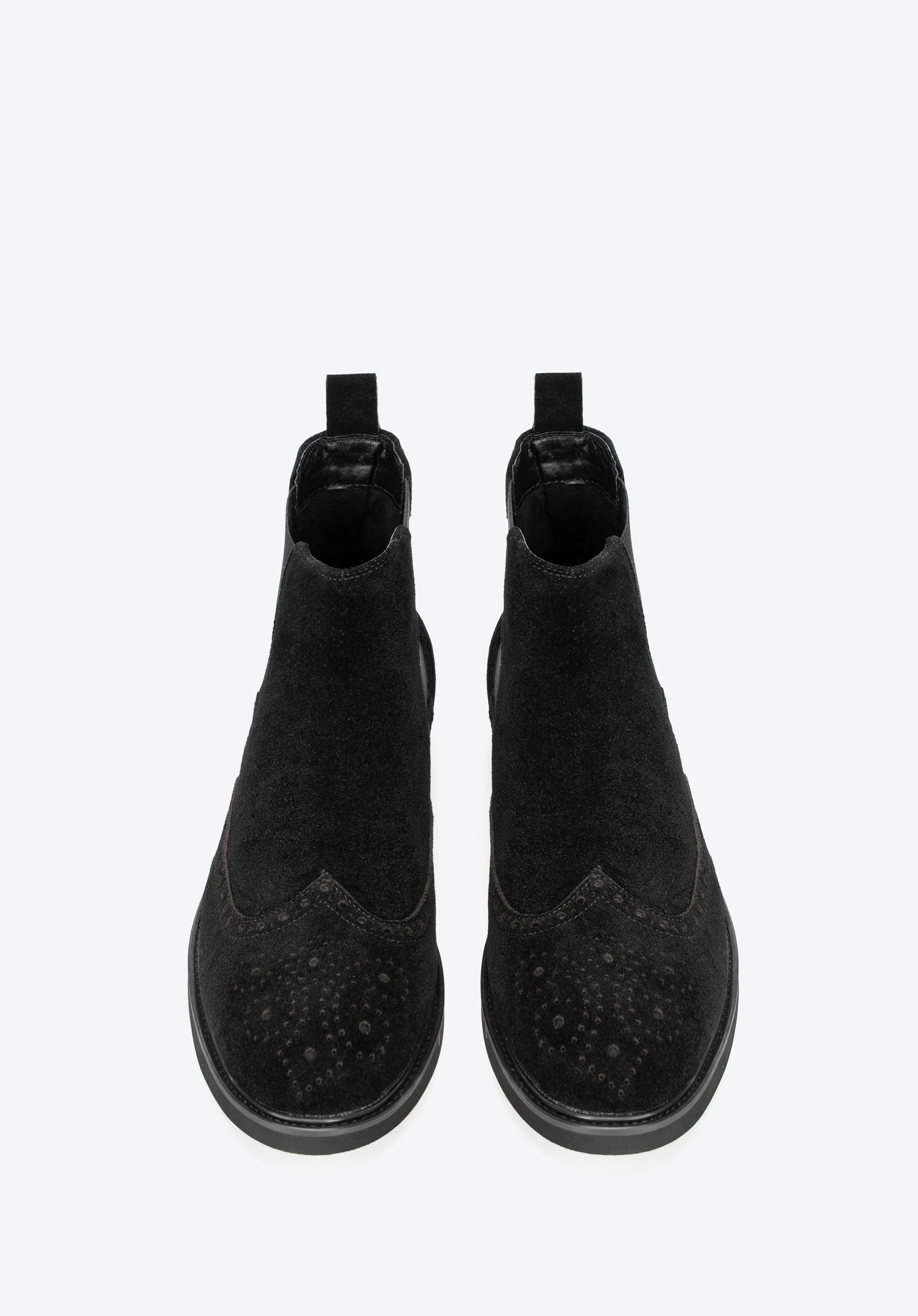 In our men's ankle boots, you'll find a combination of traditional elegance and modern comfort. Every detail has been carefully designed to ensure not only an excellent appearance but also maximum comfort. The deep shade of suedeleather gives the shoes a unique character, emphasising your individual style. Elasticside panels and decorative perforations not only add character but also ensure easy fit and proper ventilation.