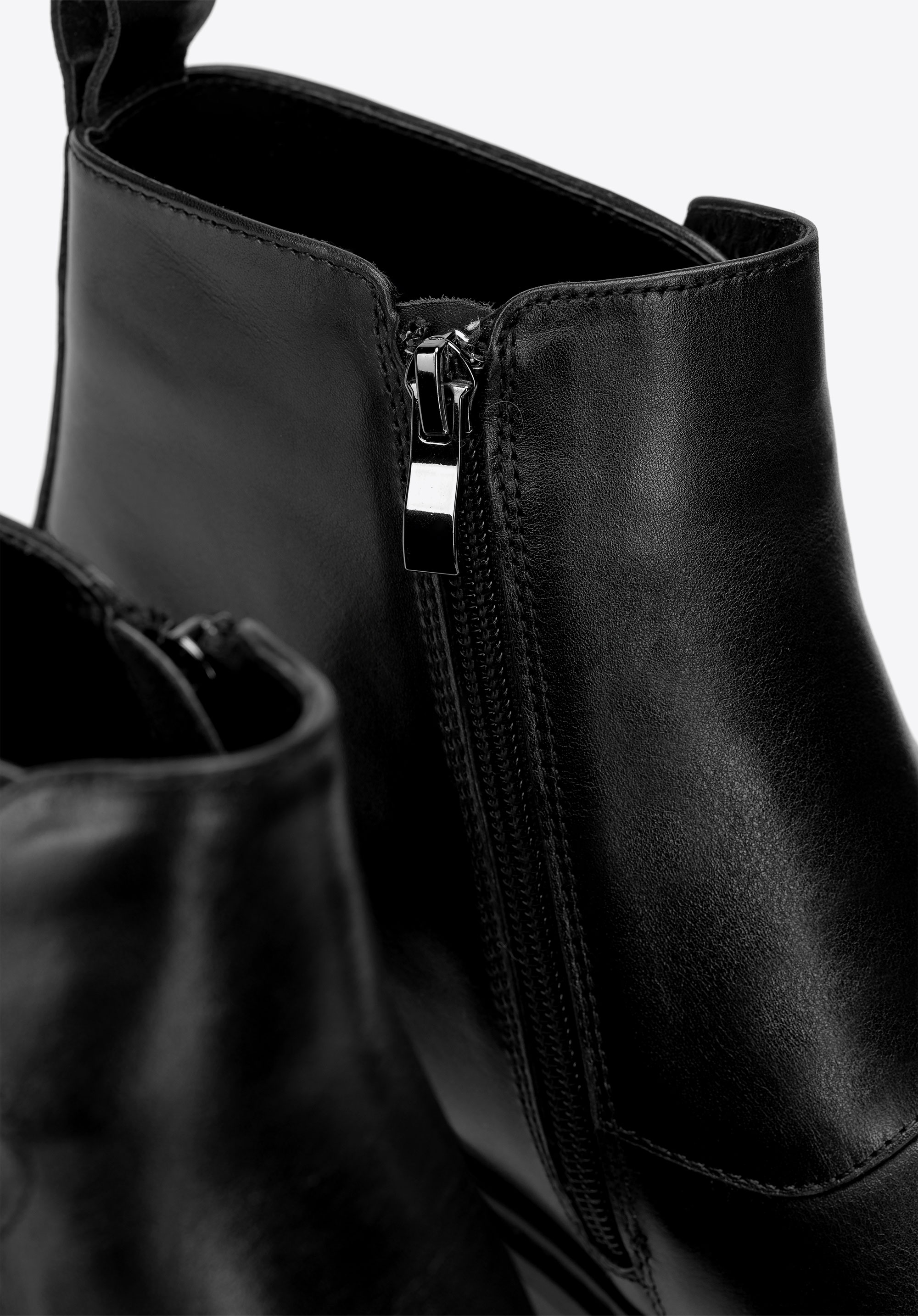 Choose timeless style with a modern twist. These men’s boots are crafted from natural leather, offering durability, comfort and a refined appearance. The sleek upper with a practical zip fastening not only adds character but also makes them easy to put on and ensures a perfect fit. A gently tapered almond-shaped toe enhances the elegant line while protecting the toes, and the overall design guarantees comfort and longevity – perfect for both urban settings and more demanding activities.