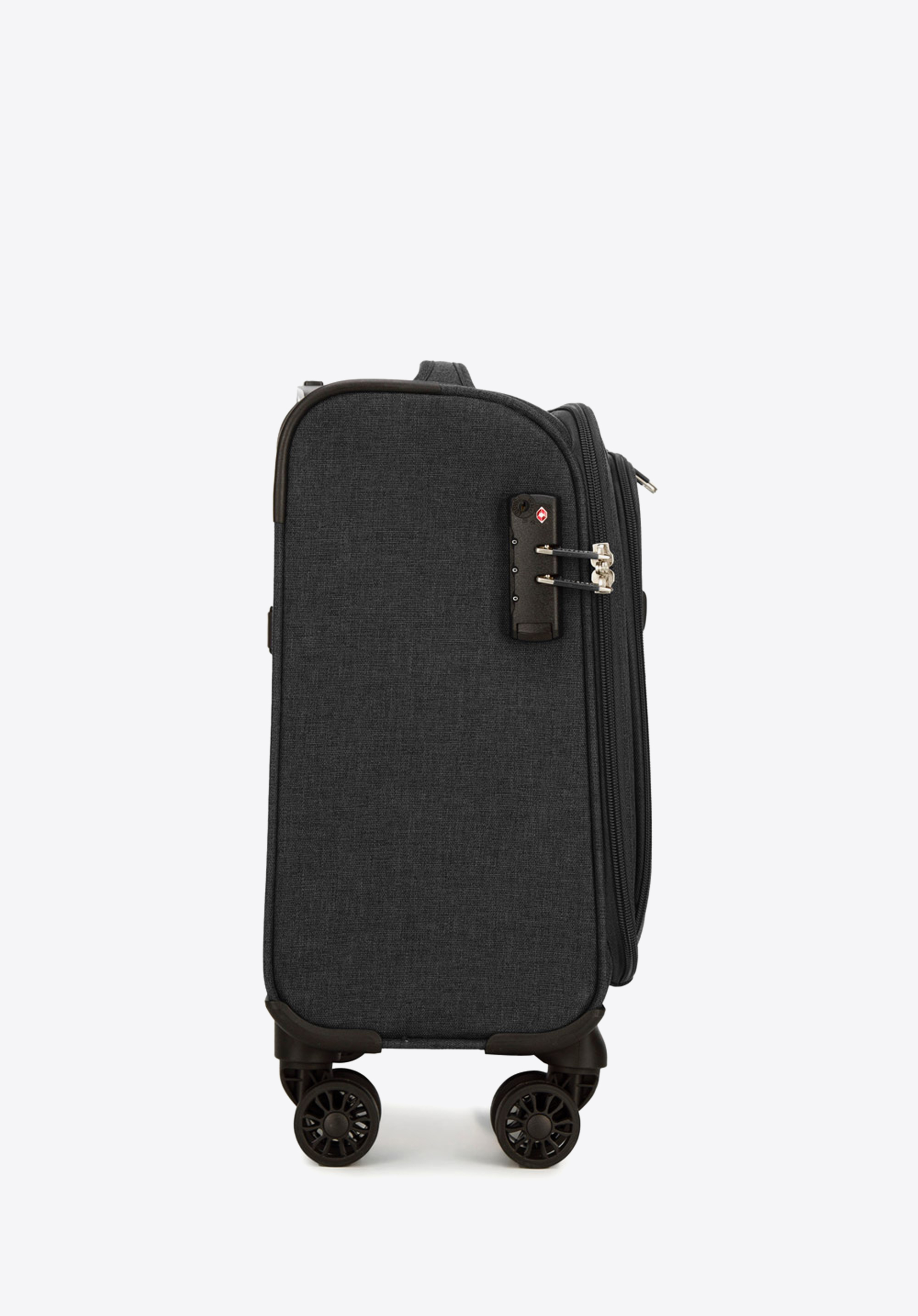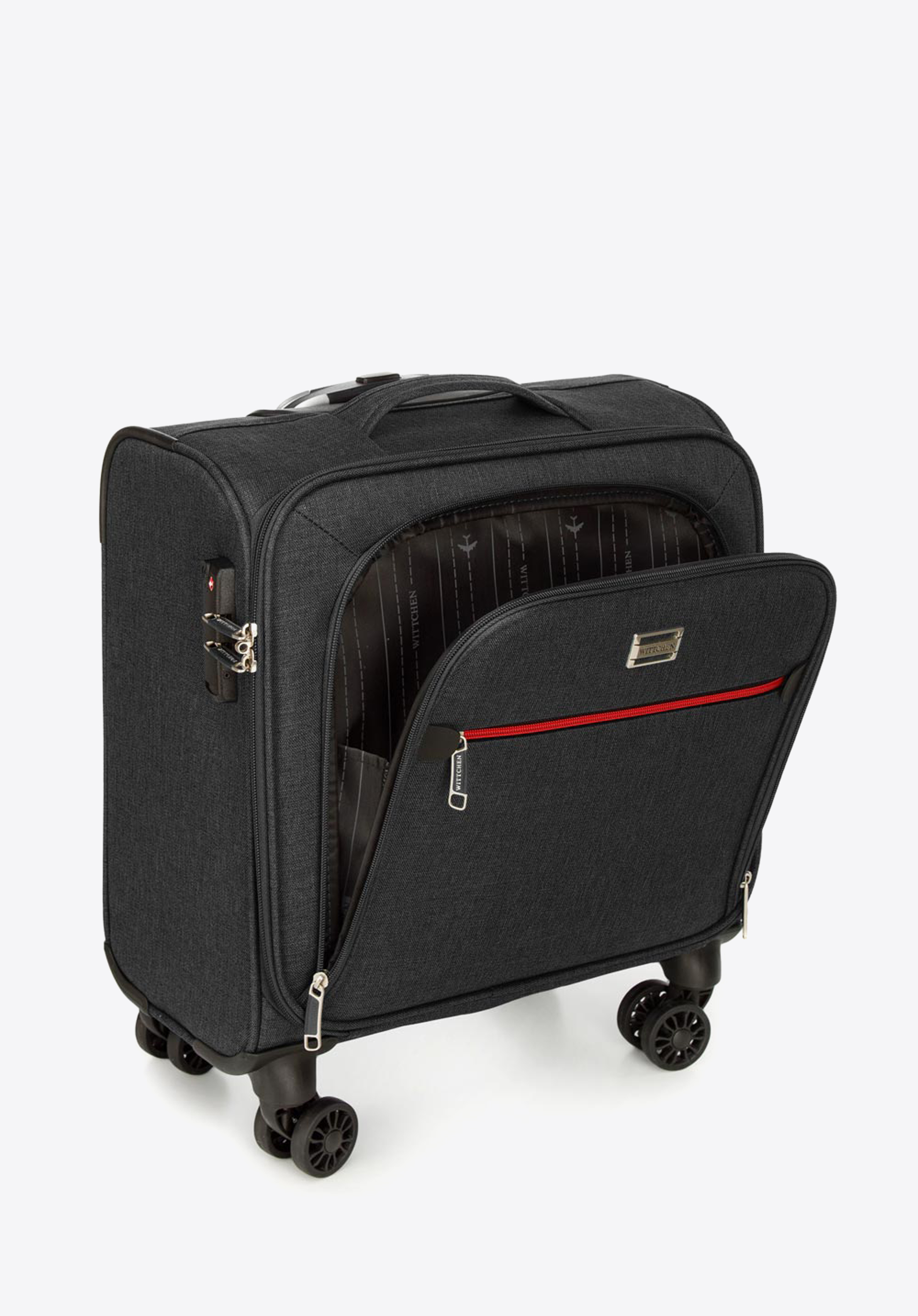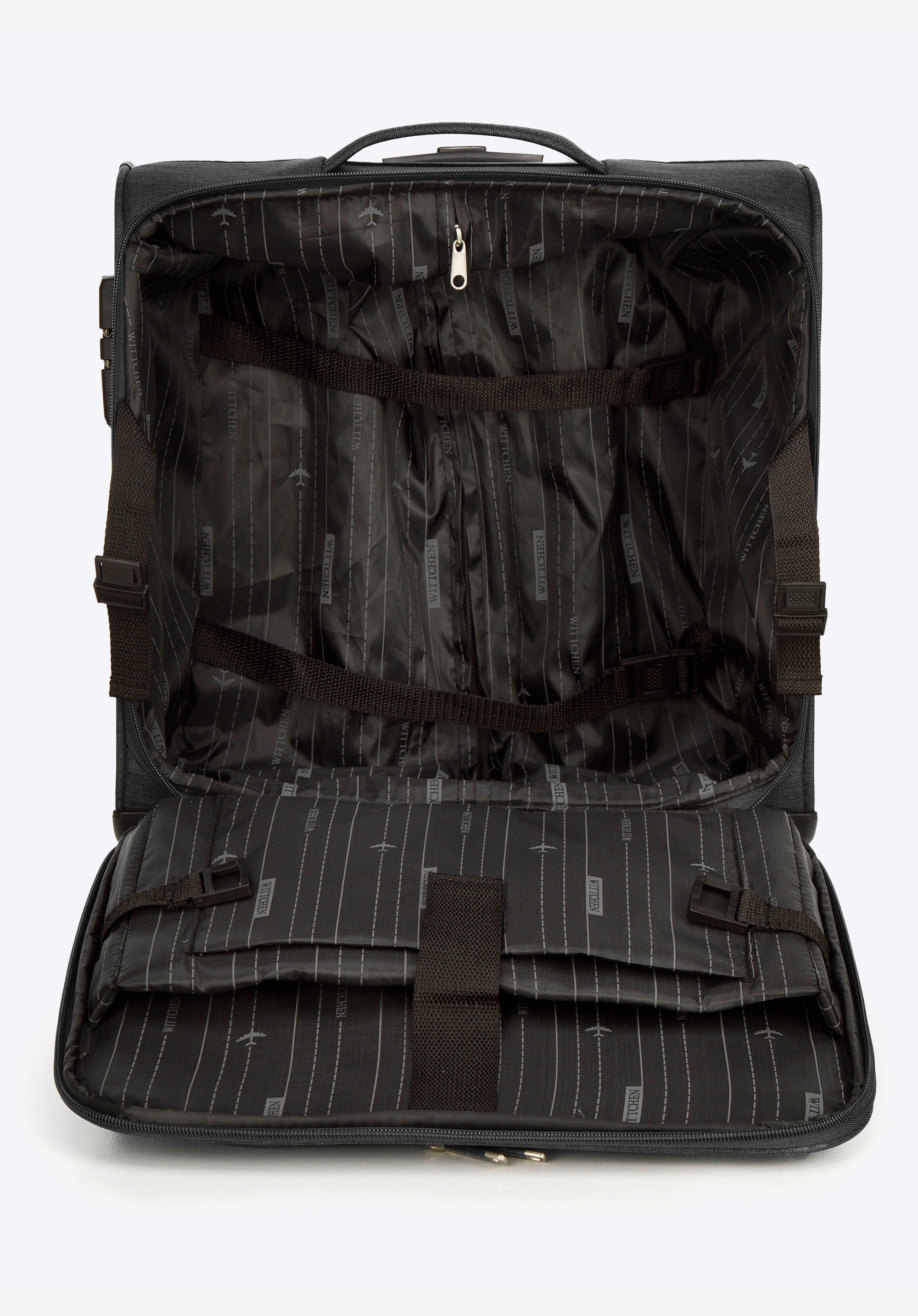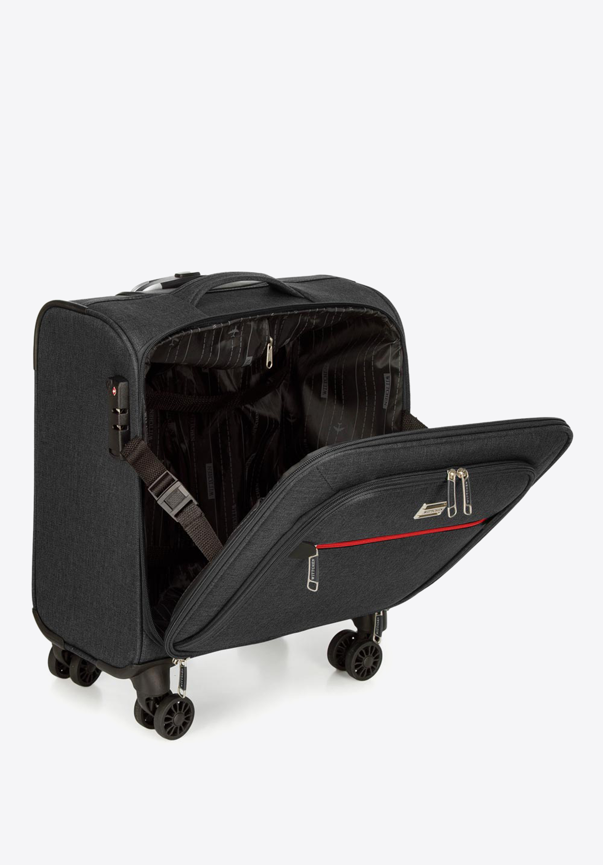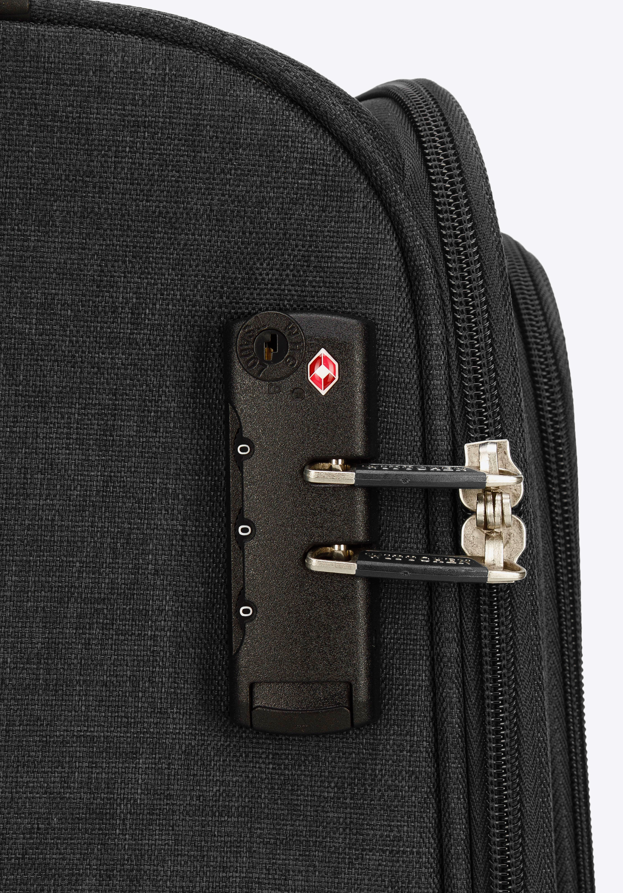 This lightweight laptop case can accompany you in all your business trips and adventures as it meets cabin luggage restrictions. Small but practical, it is perfect for holding your electronic device with maximum dimensions of 24 cm x 35 cm. The interior features packing straps and a branded lining with strong zips to keep the contents in place during transit. Made from durable and easy-to-clean polyester material, this eye-catching, modern 4 wheel luggage case features comfortable grab handles and TSA lock system for optimum protection. Characterised by core values such as quality and lightness, this travel bag features a retractable grip handle (actioned via a push button) which allows simple and easy transportation of the luggage case.