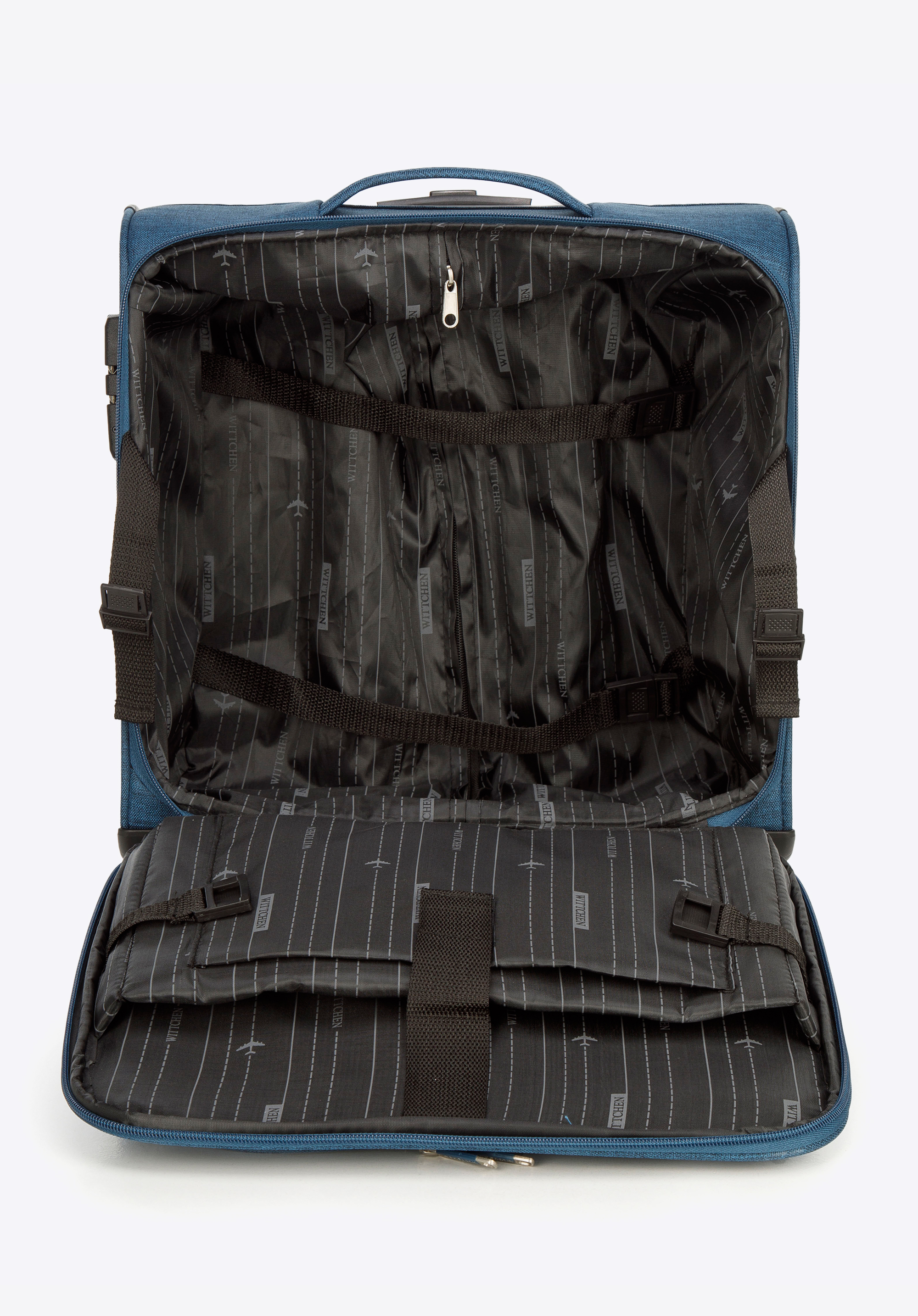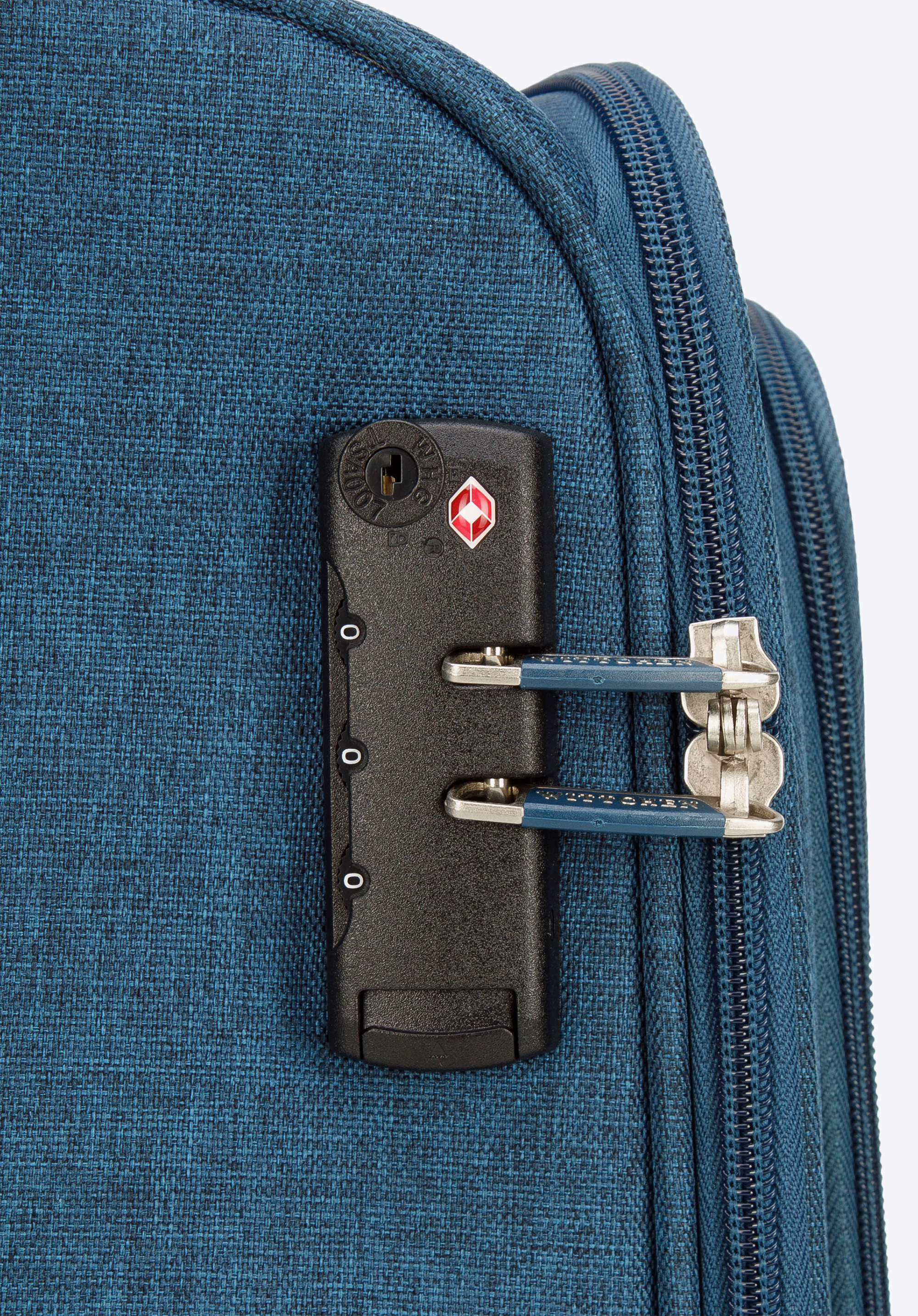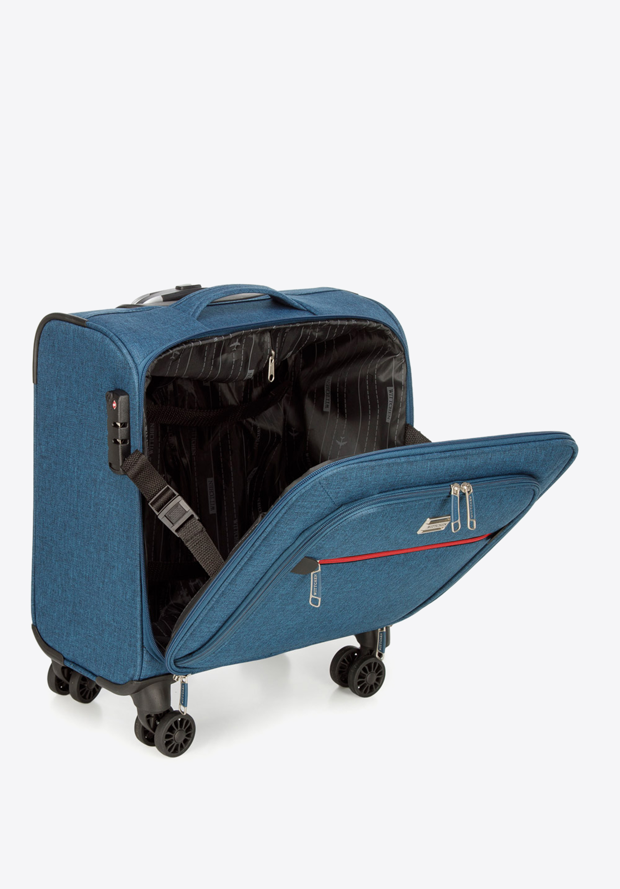 This lightweight laptop case can accompany you in all your business trips and adventures as it meets cabin luggage restrictions. Small but practical, it is perfect for holding your electronic device with maximum dimensions of 24 cm x 35 cm. The interior features packing straps and a branded lining with strong zips to keep the contents in place during transit. Made from durable and easy-to-clean polyester material, this eye-catching, modern 4 wheel luggage case features comfortable grab handles and TSA lock system for optimum protection. Characterised by core values such as quality and lightness, this travel bag features a retractable grip handle (actioned via a push button) which allows simple and easy transportation of the luggage case.