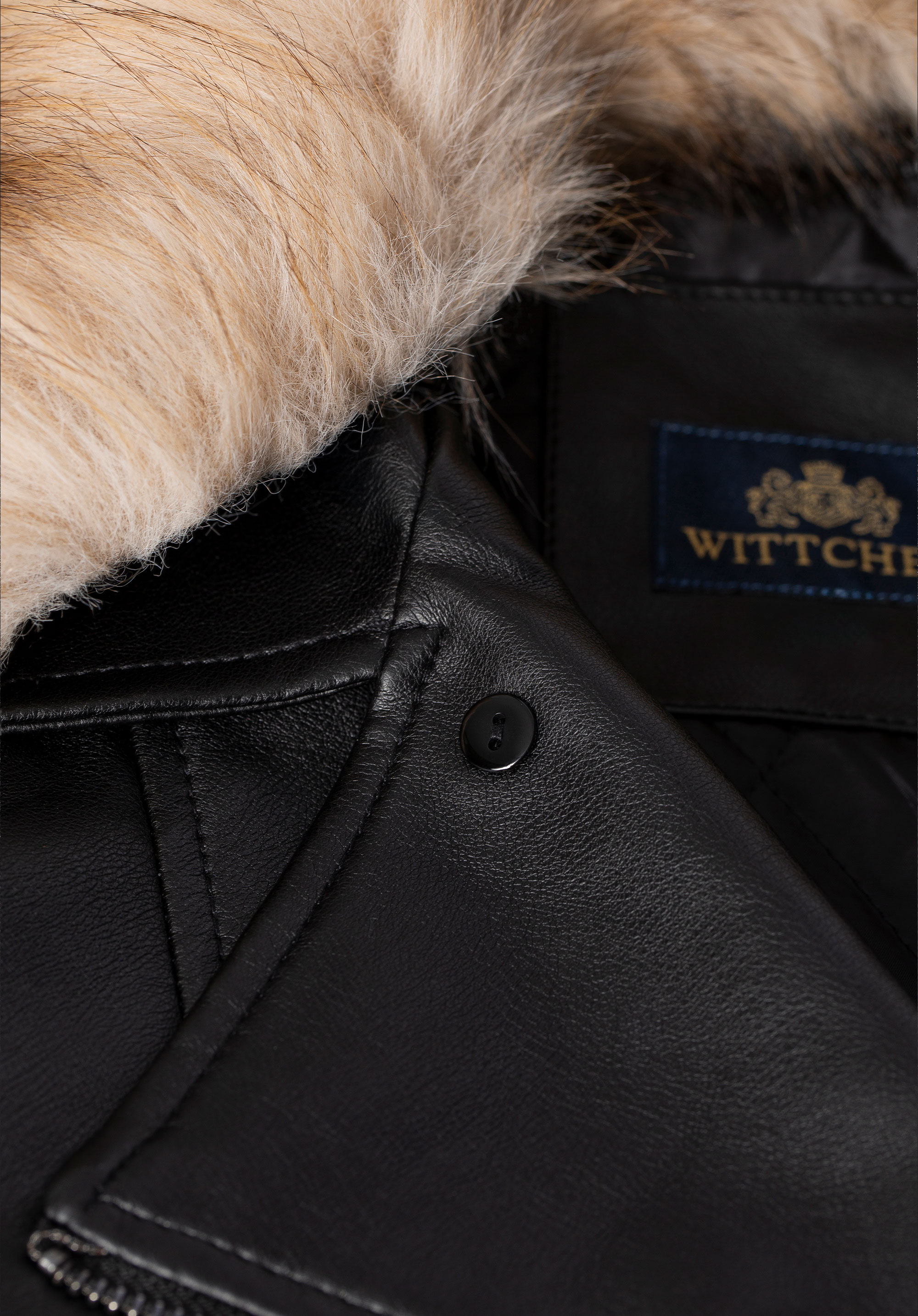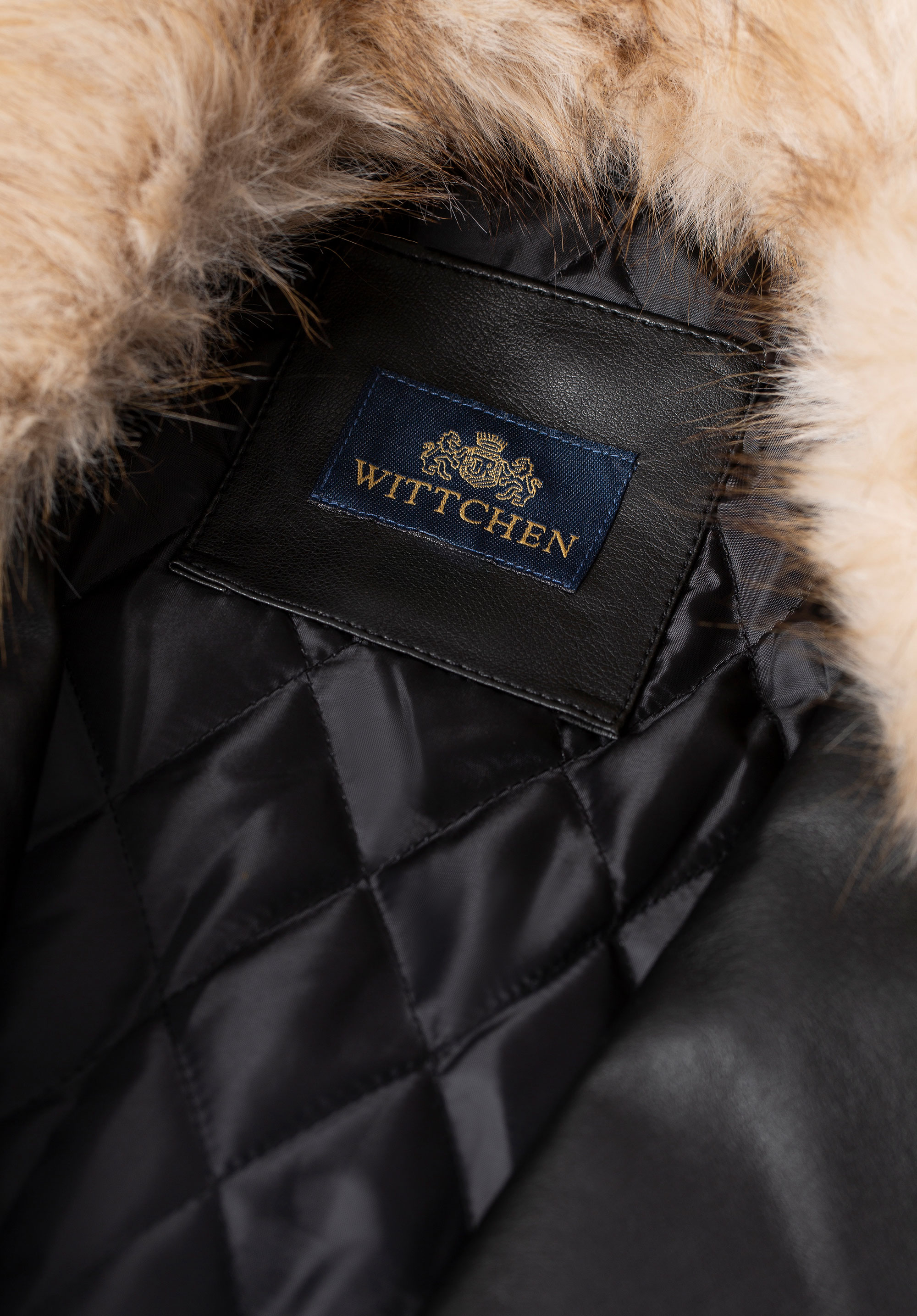 This lined biker jacket combines urban style with comfort and practical features for colder days. Made from polyurethane with polyester, viscose and cotton blend, it offers a sleek look and durability. The tailored design beautifully accentuates the silhouette, while the quilted polyester lining provides extra warmth and comfort. The faux fur collar adds a cosy, chic touch and protects the neck from the cold. Importantly, it is detachable, allowing you to customise the jacket’s look depending on the occasion or weather.