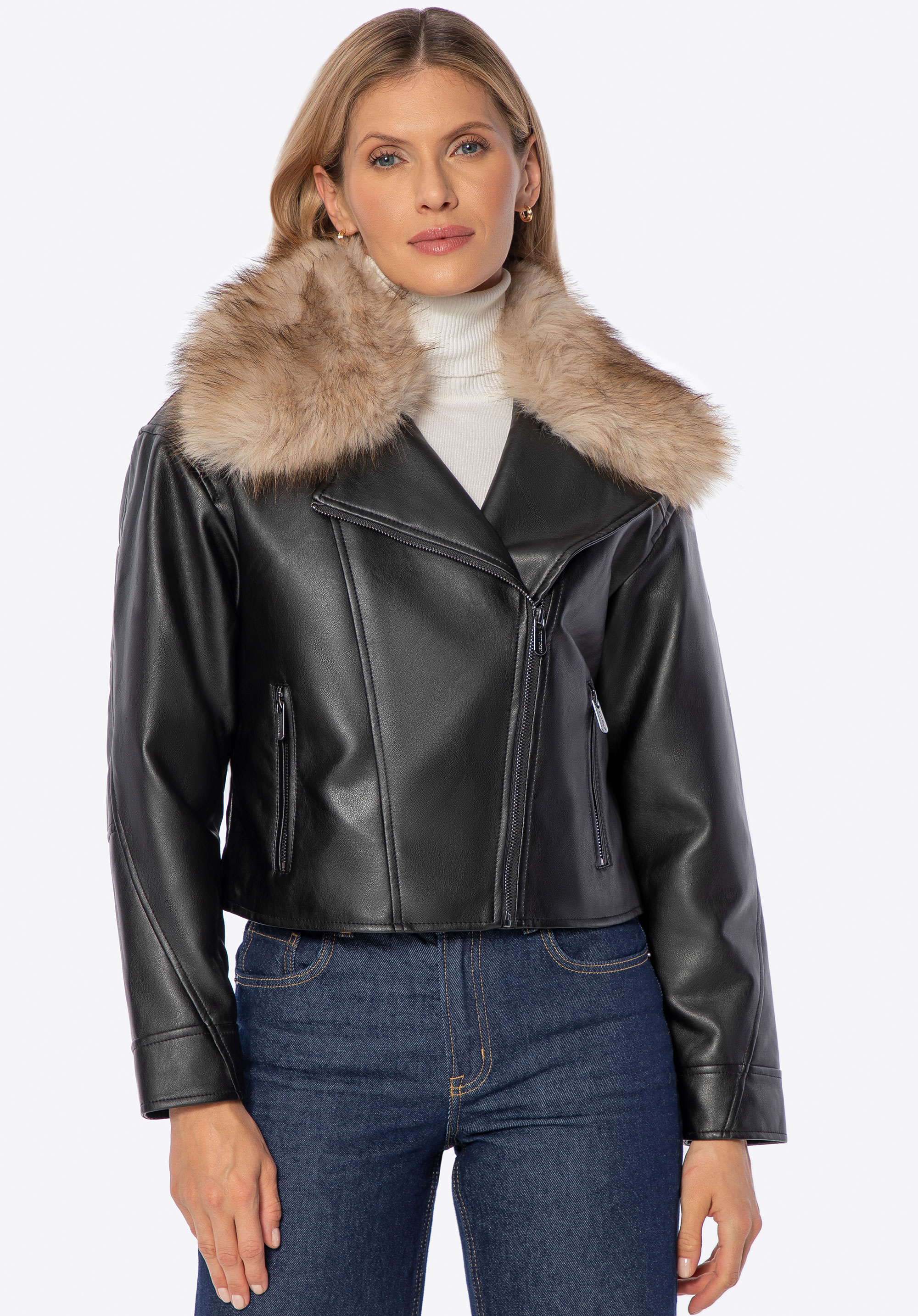 Our advice: Pair the biker jacket with jeans, heeled ankle boots or combat boots for a trendy, bold look. Complete the outfit with a leather handbag for an elegant touch.
