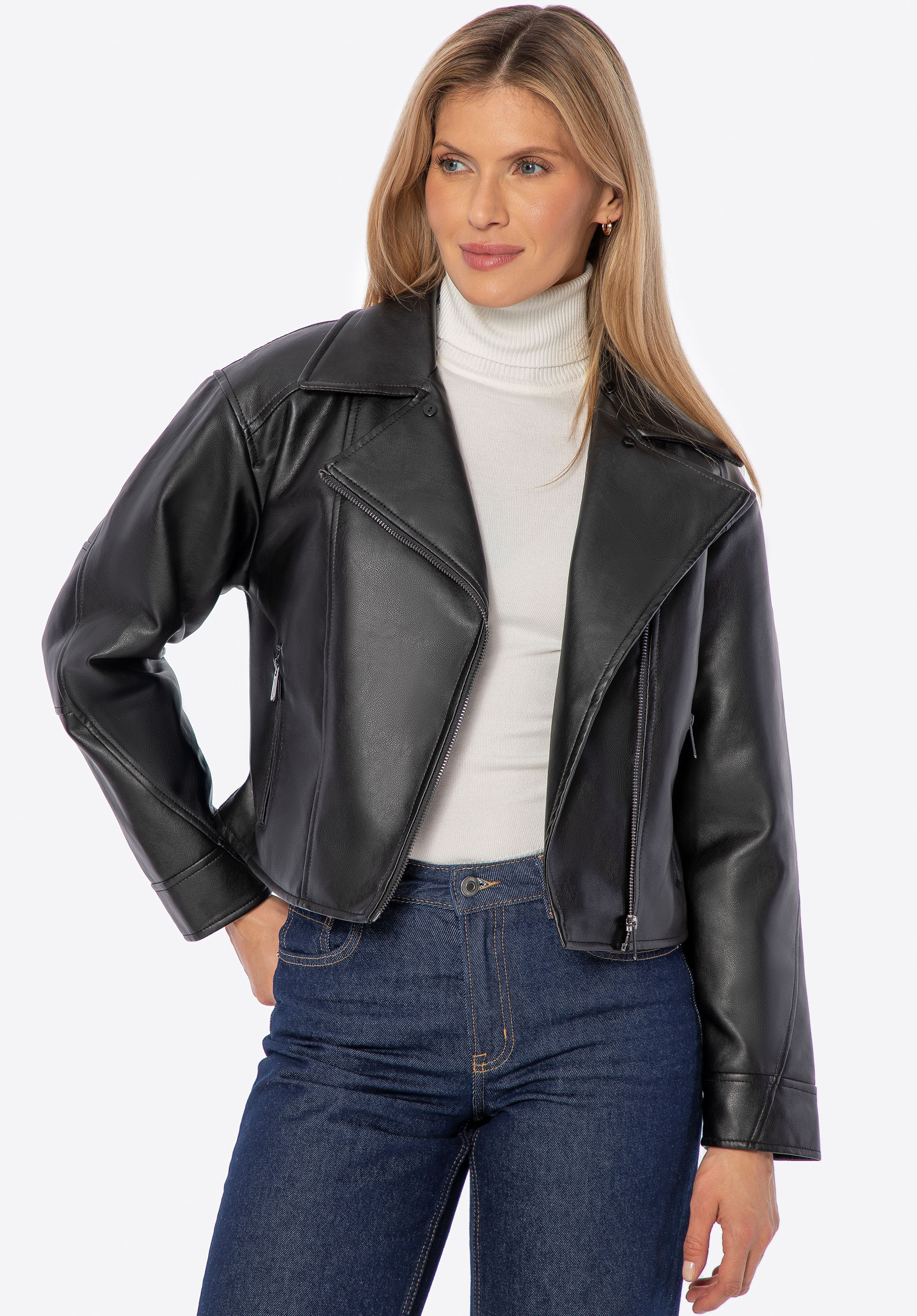 - Tailored cut: Accentuates the female silhouette and adds an elegant touch to the biker jacket.