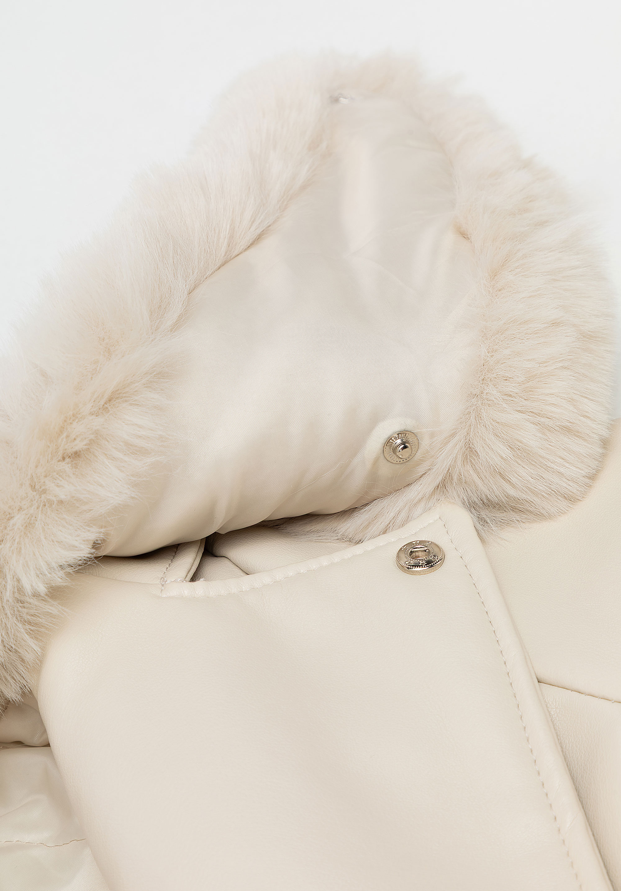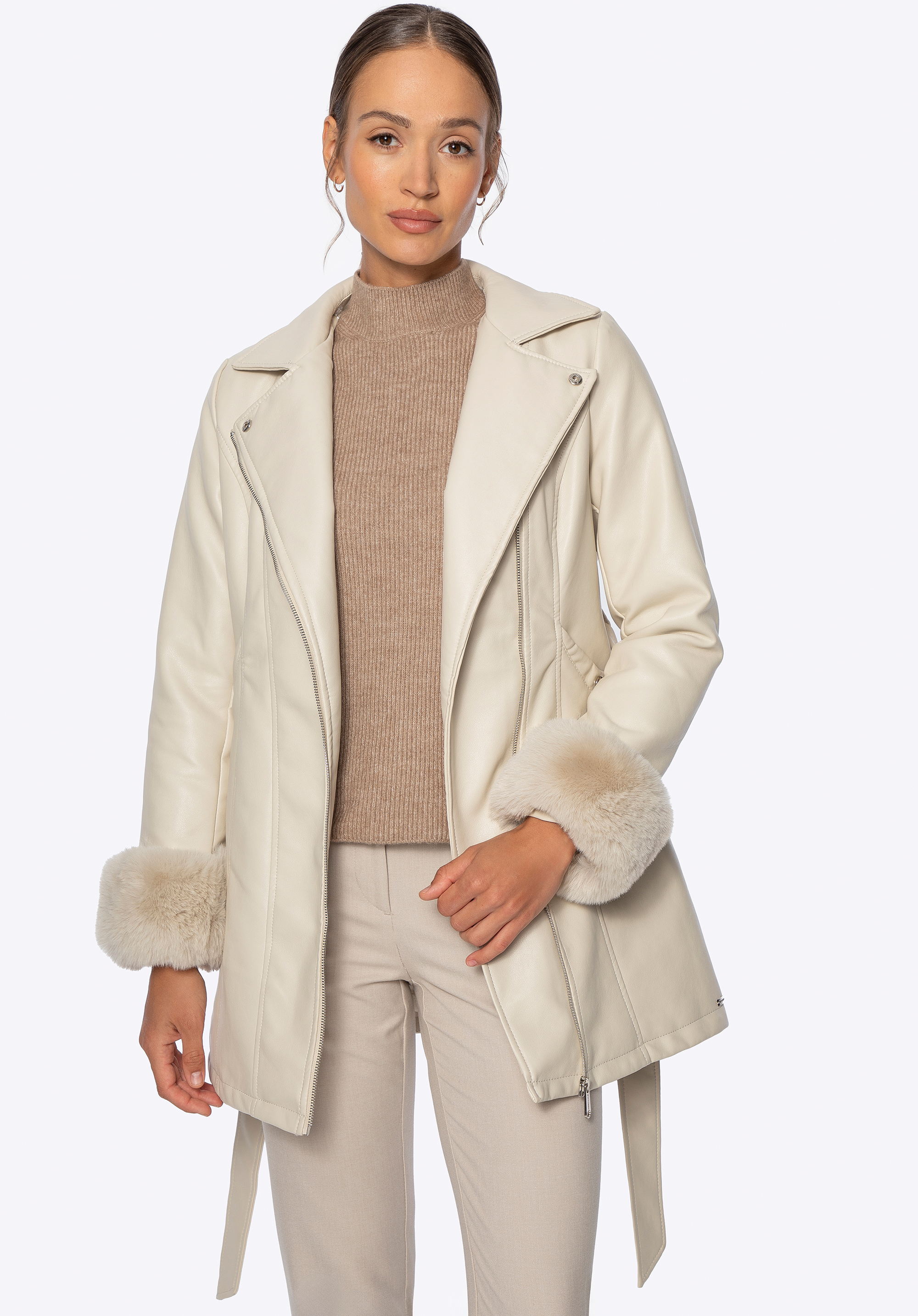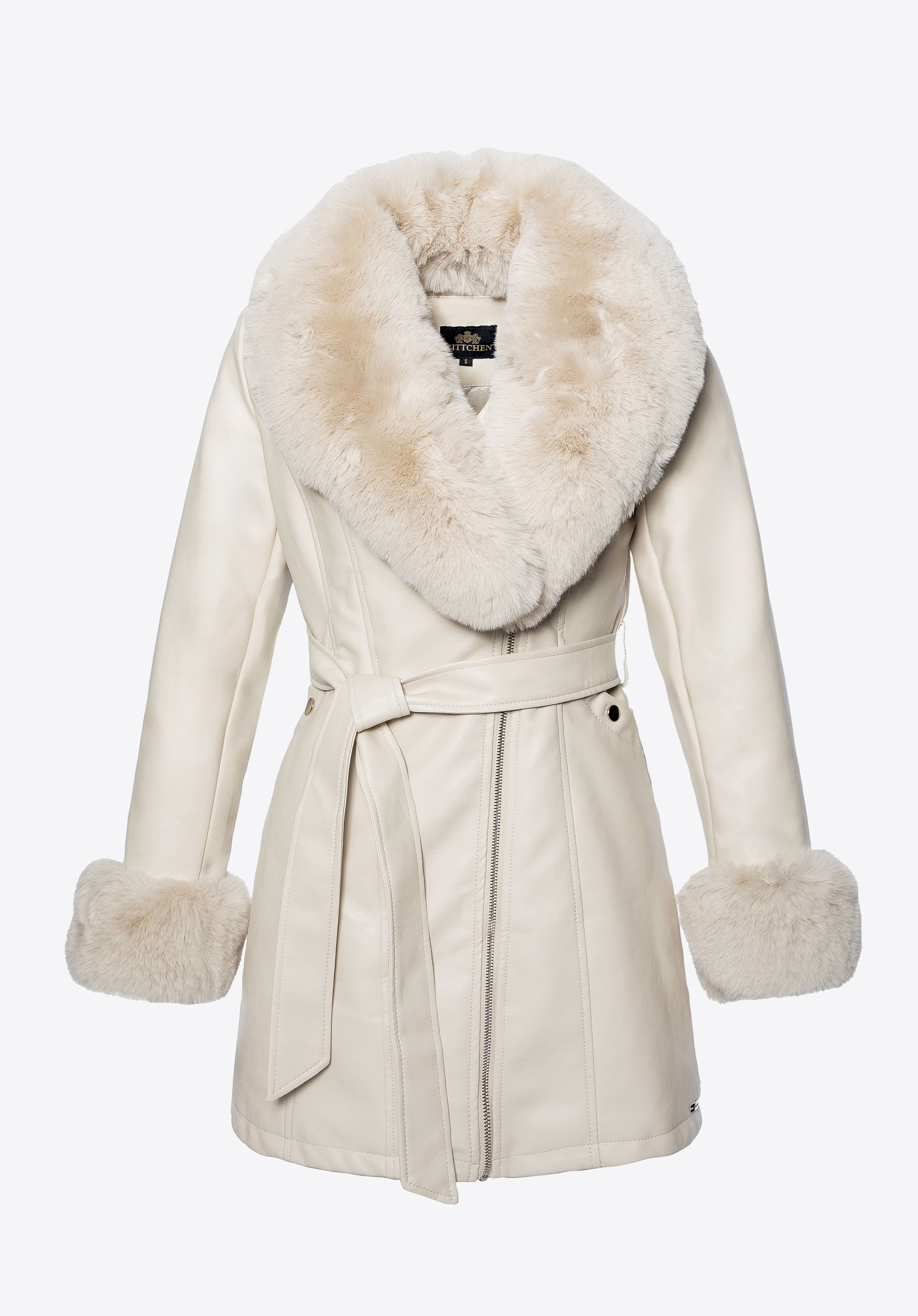 Women’s faux leather coat with faux fur collar and cuffsColour: cream