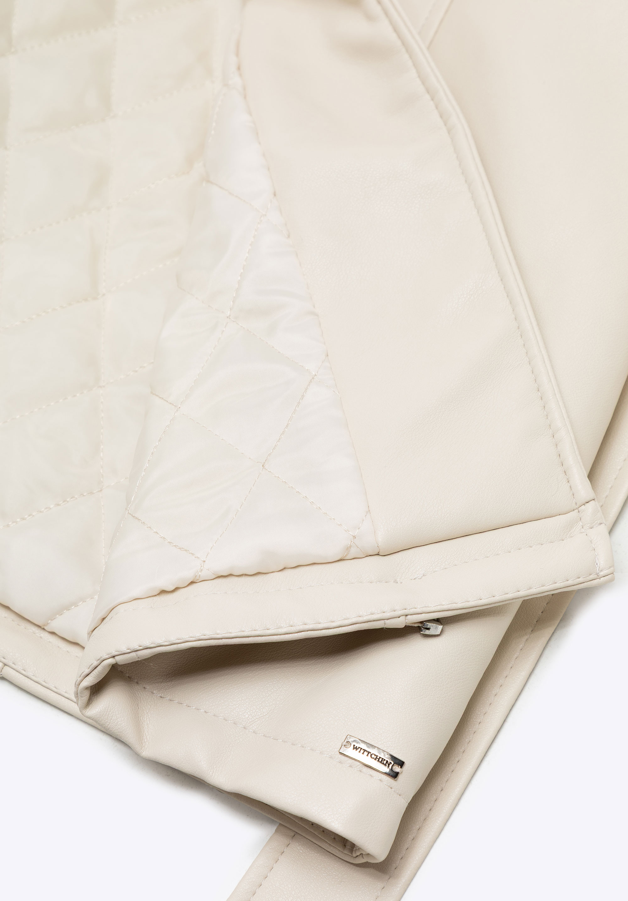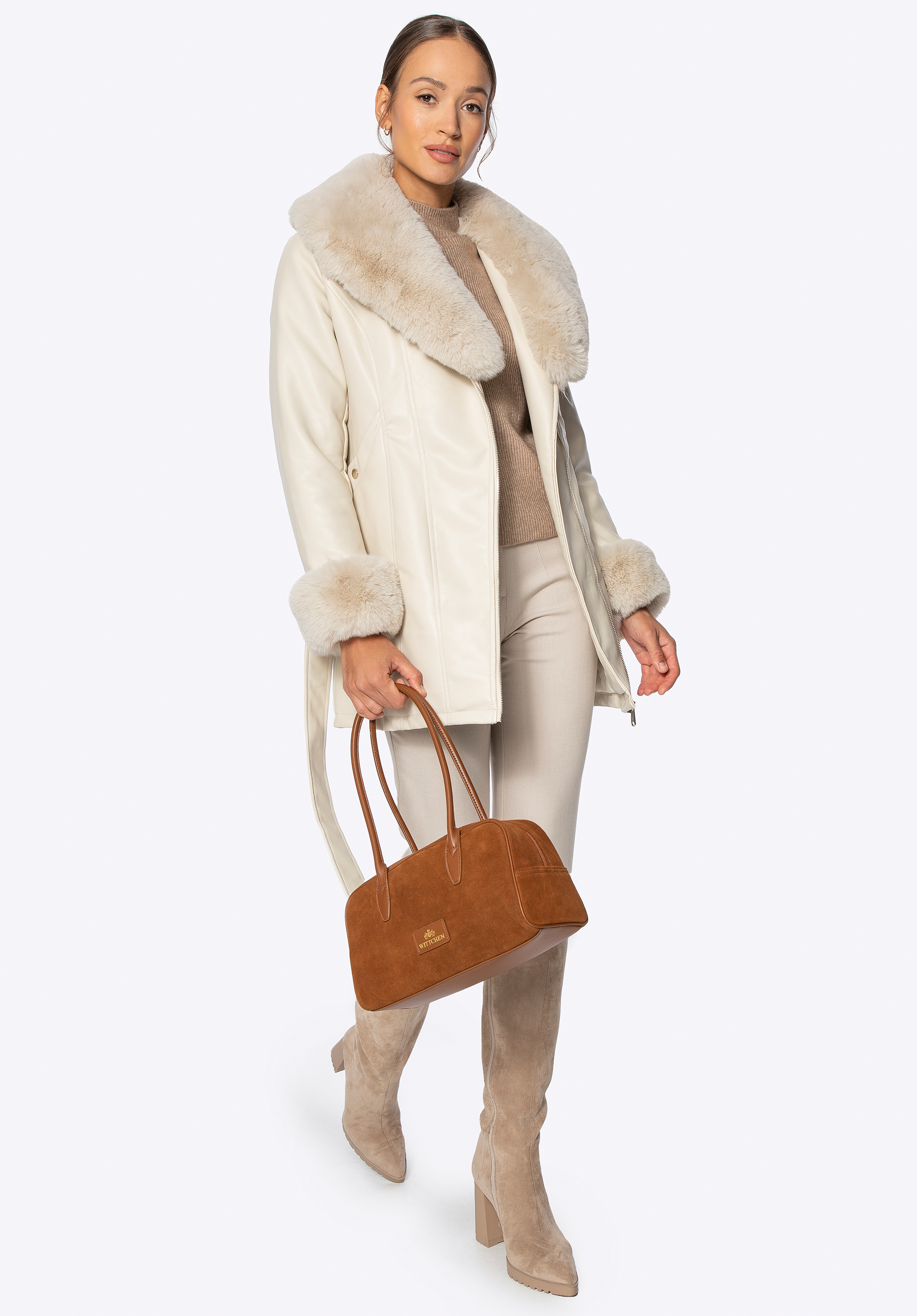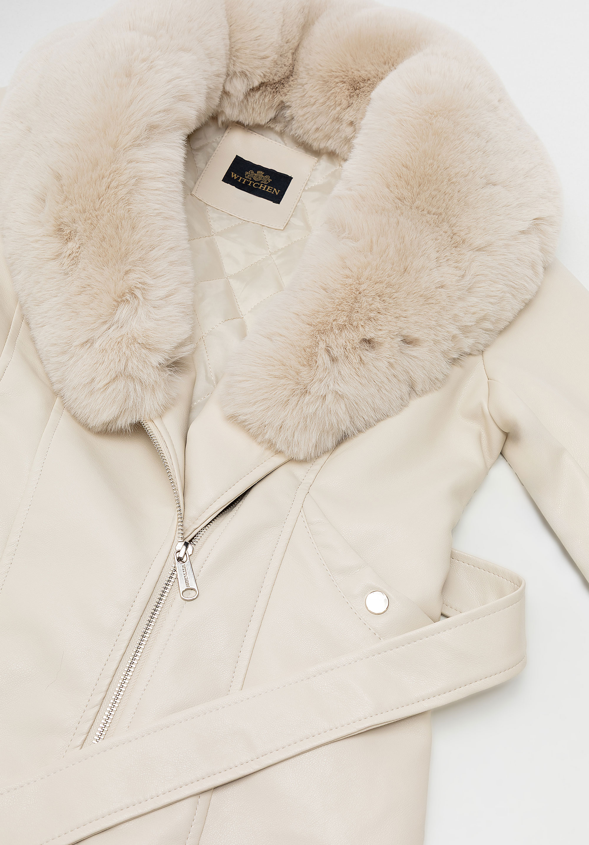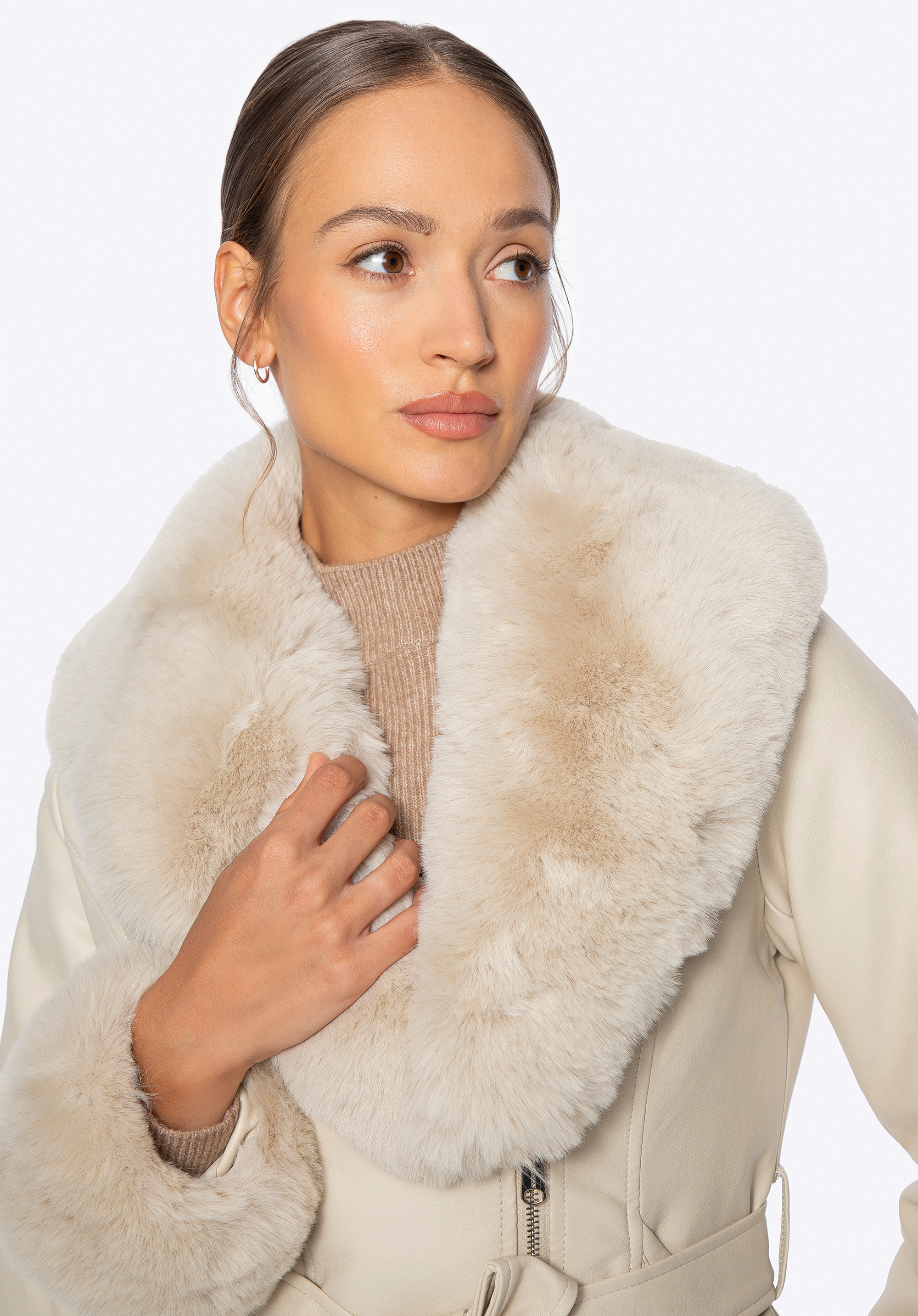 Women’s faux leather coat with faux fur collar and cuffsColour: cream