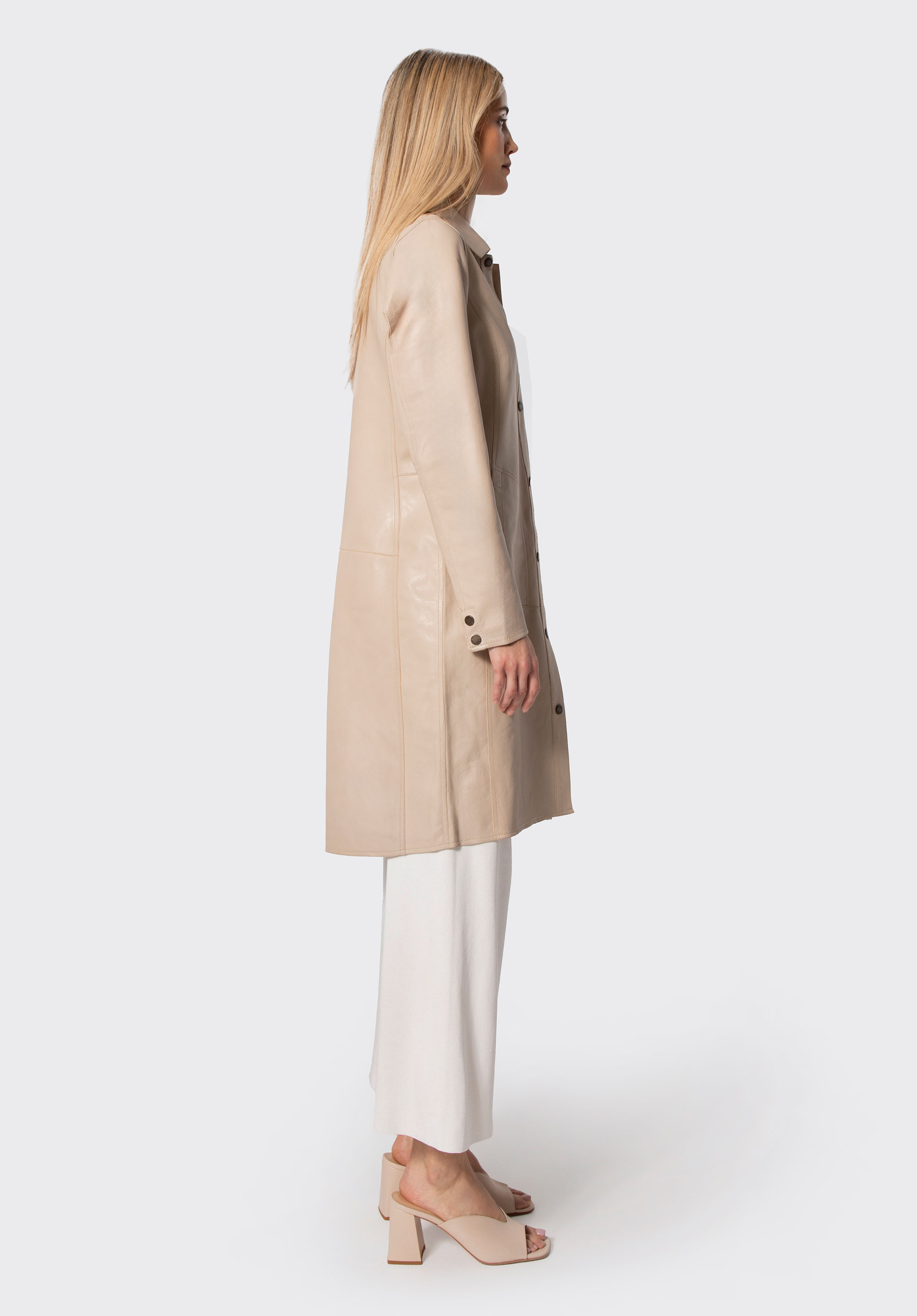 This coat is more than just wardrobe staple – it's a conscious choice of style, quality and comfort. Made from natural sheepskin leather, it's beautifully soft, elegant and impeccably finished. It envelops your figure with sophisticated twist and confidence whilst ensuring all-day comfort. Press stud fastening and rear vent guarantee freedom of movement – you can feel comfortable without compromising on style. The unlined natural leather interior enhances the luxurious quality and provides a wonderful feel against the skin. An investment in a coat that will stay with you for many seasons, always looking stylish and up to date.