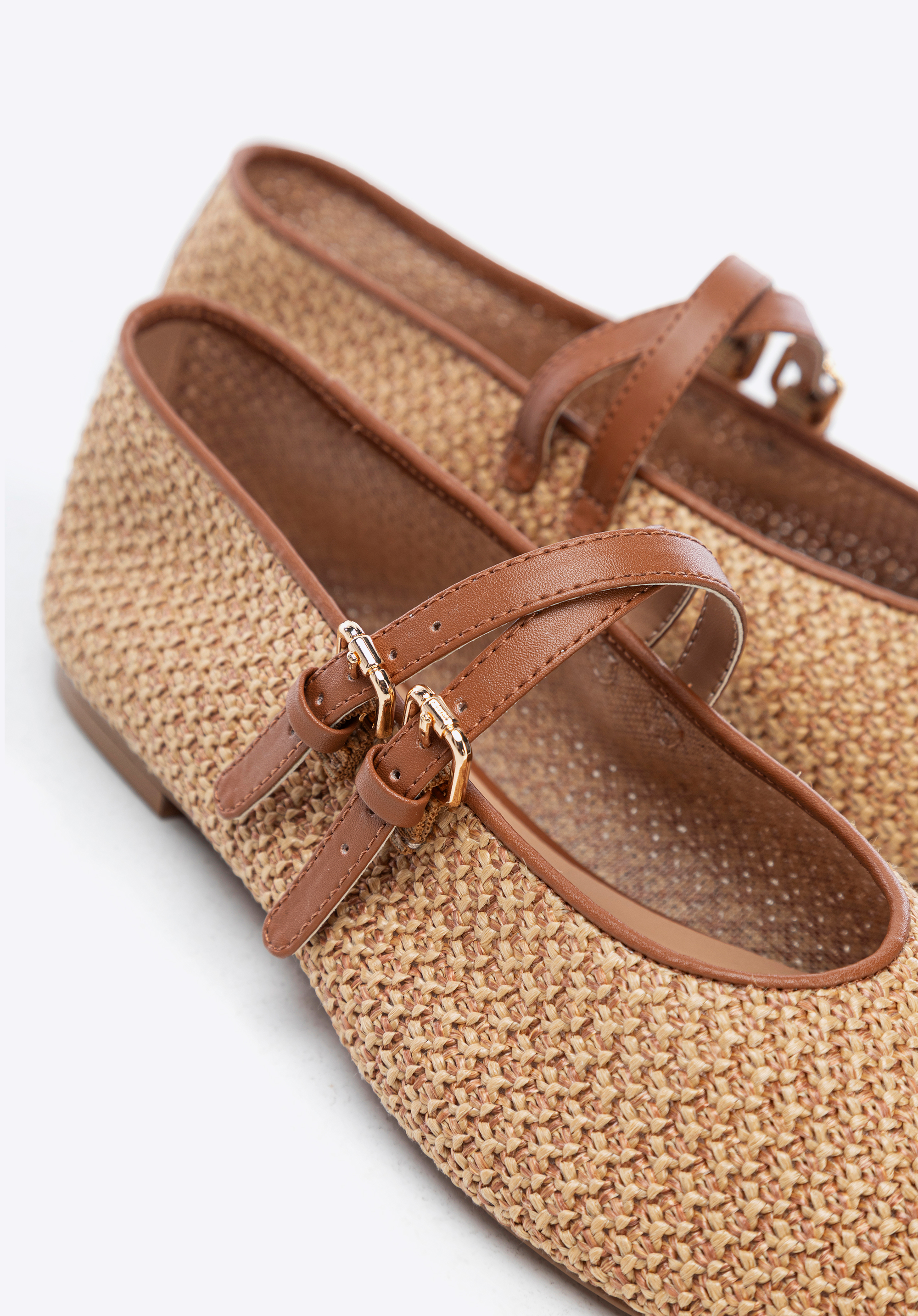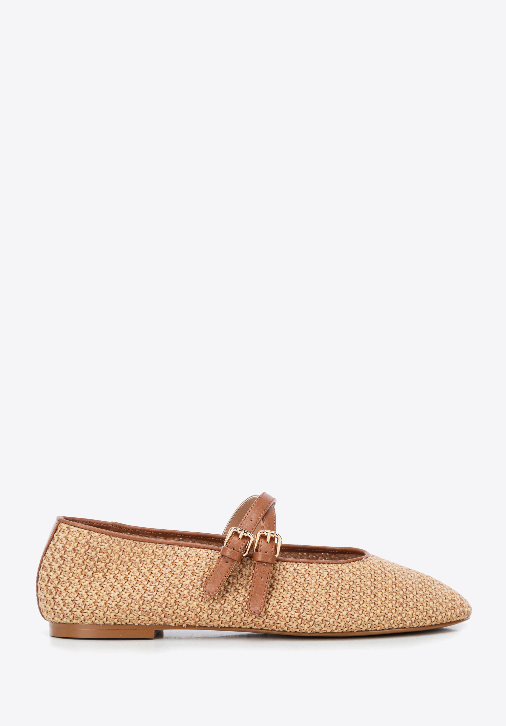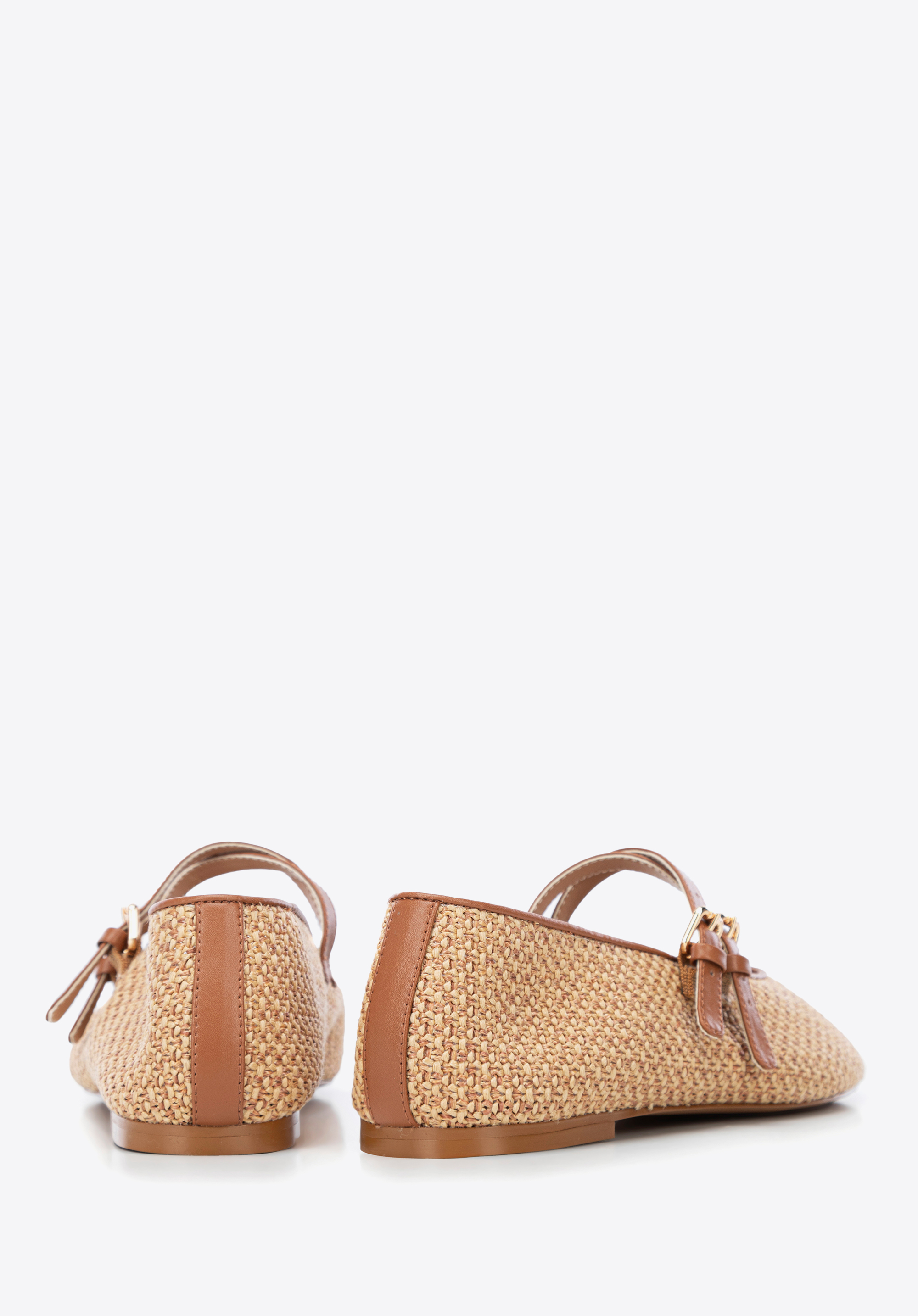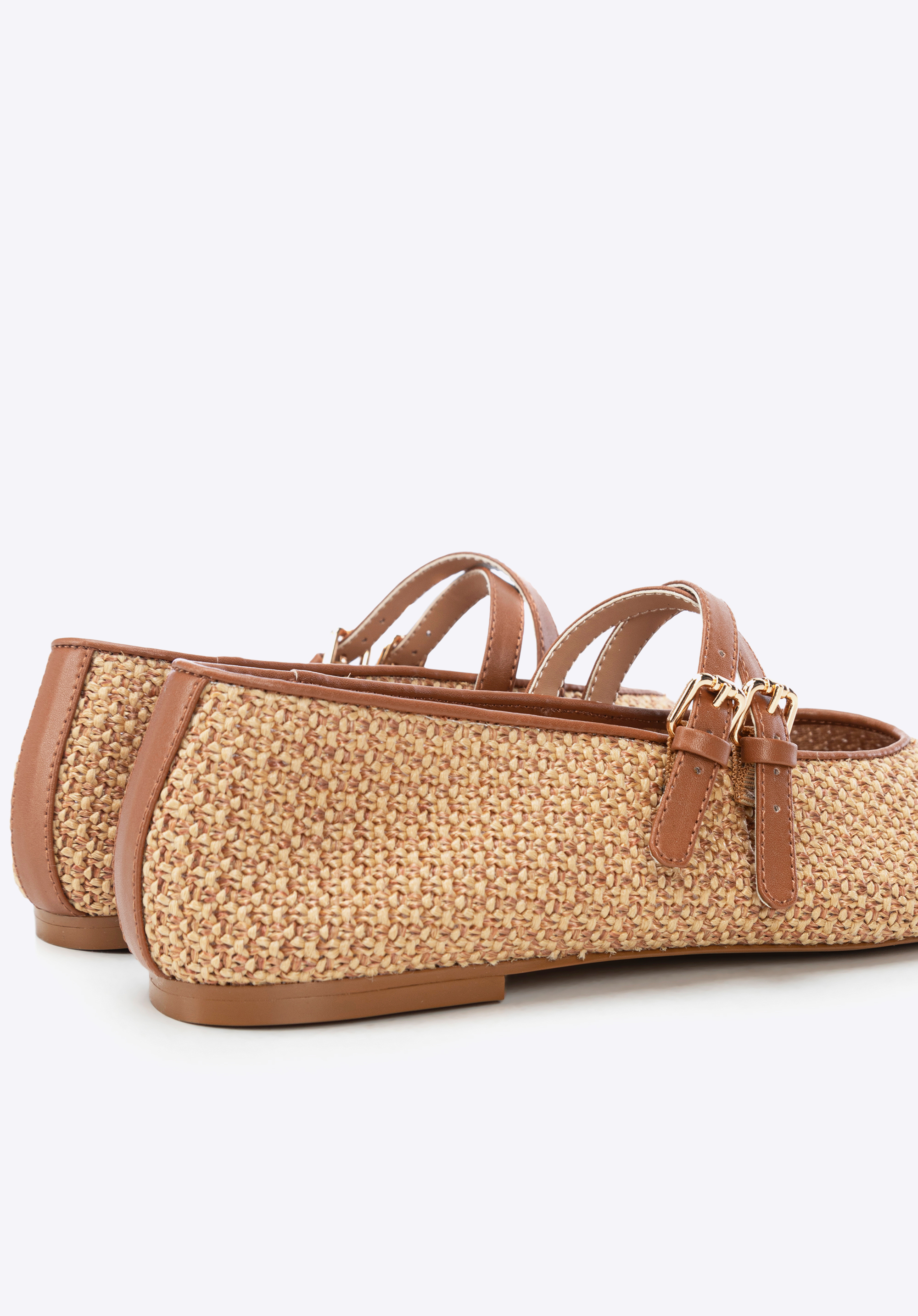 Braided faux leather and faux raffia ballerina shoesColour: brown