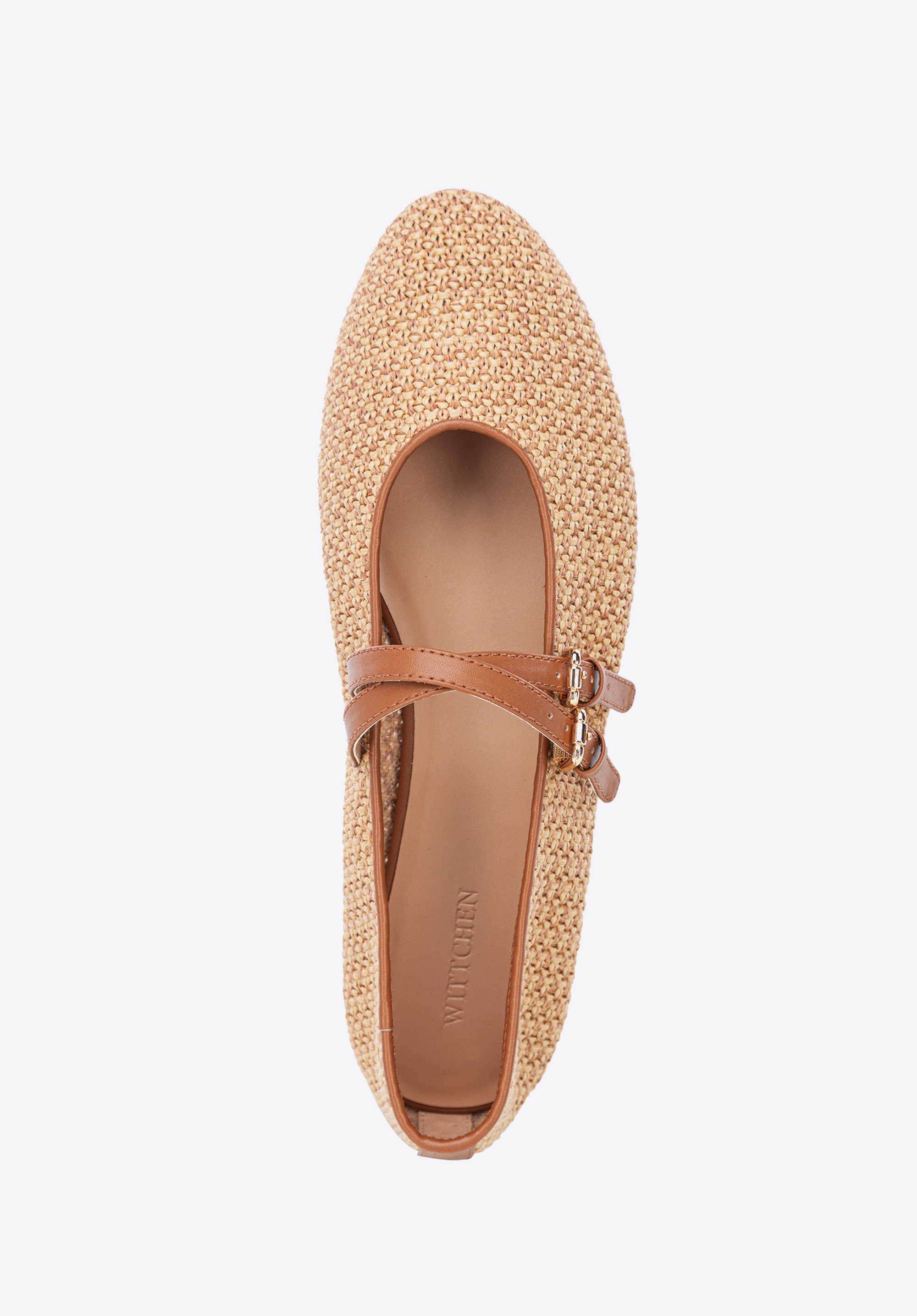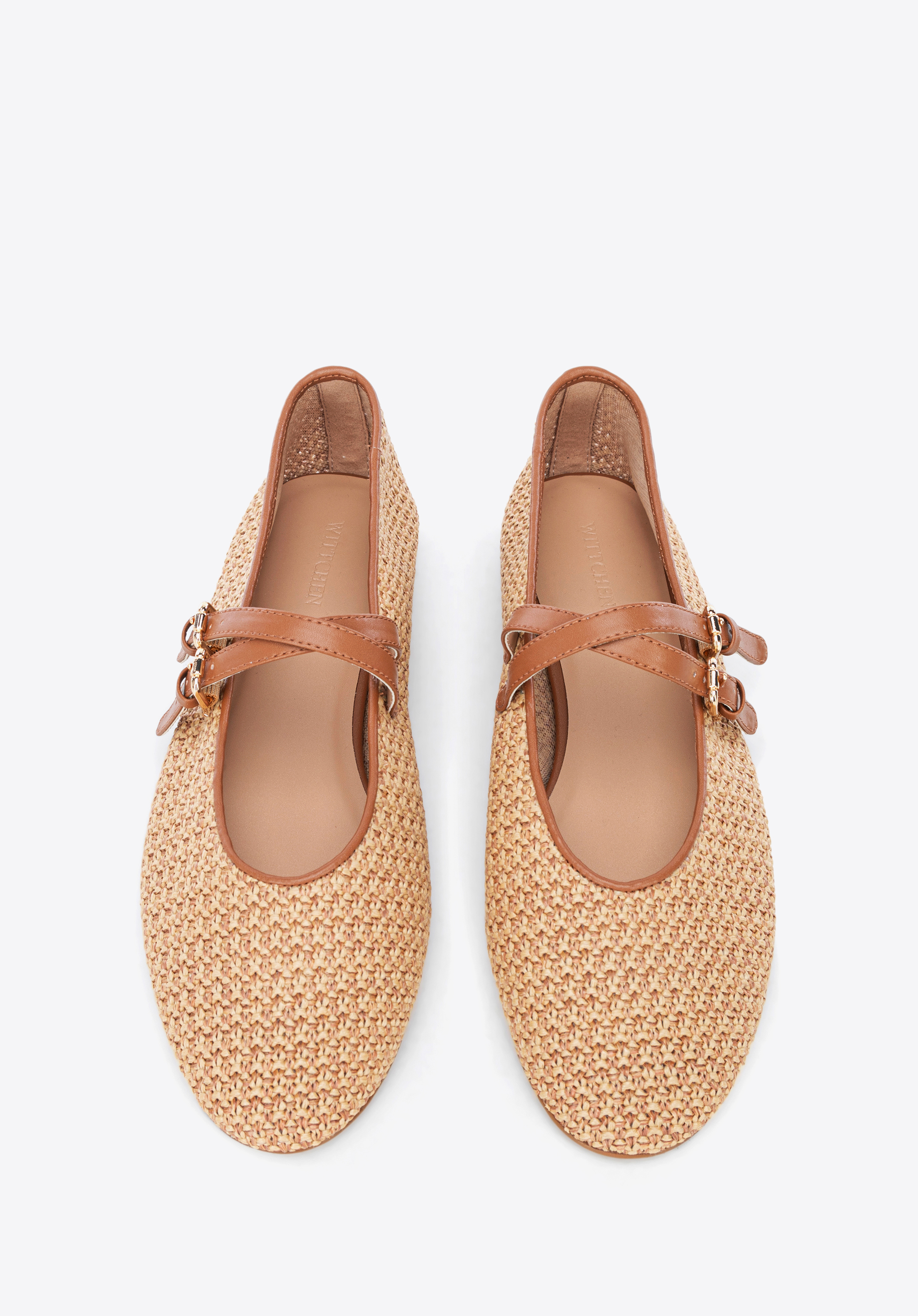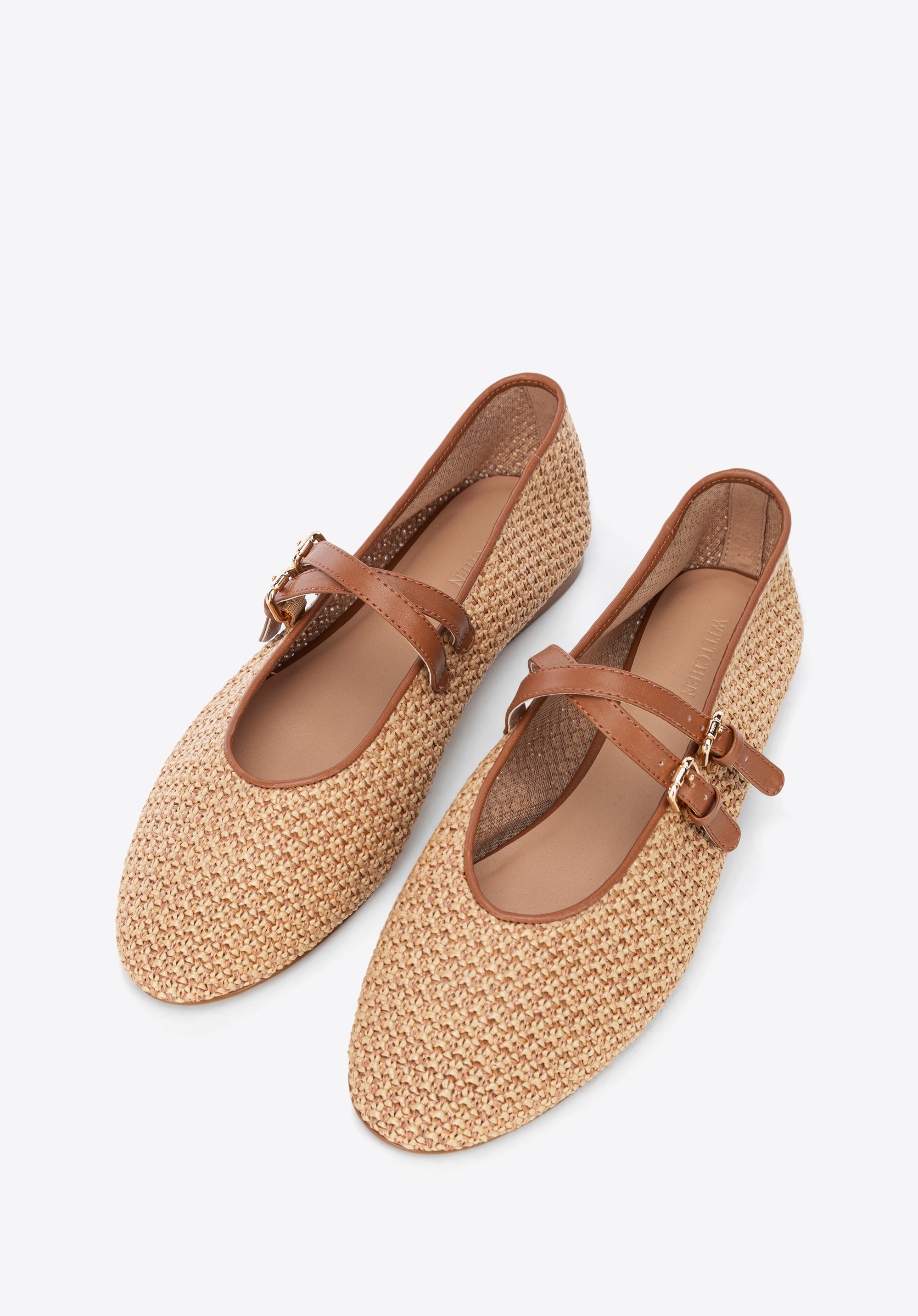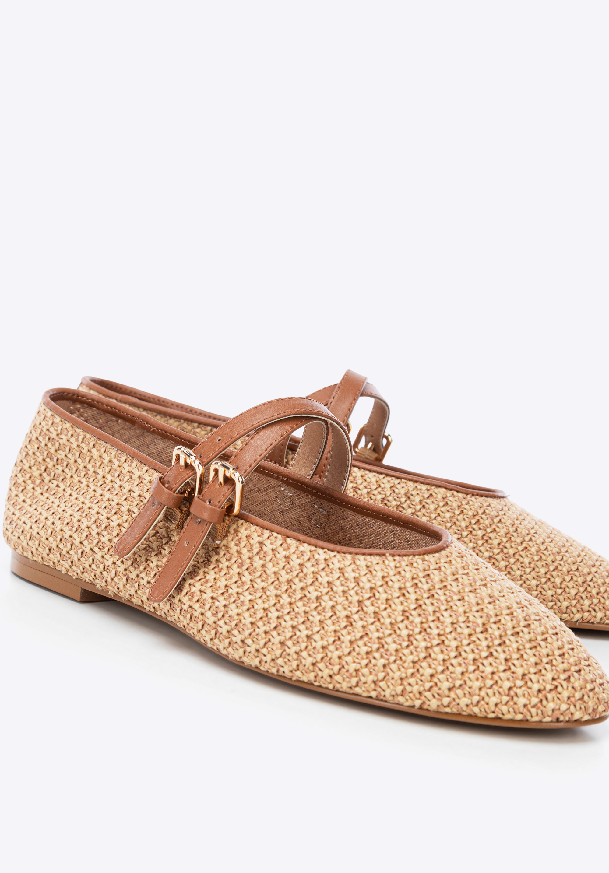 Braided faux leather and faux raffia ballerina shoesColour: brown