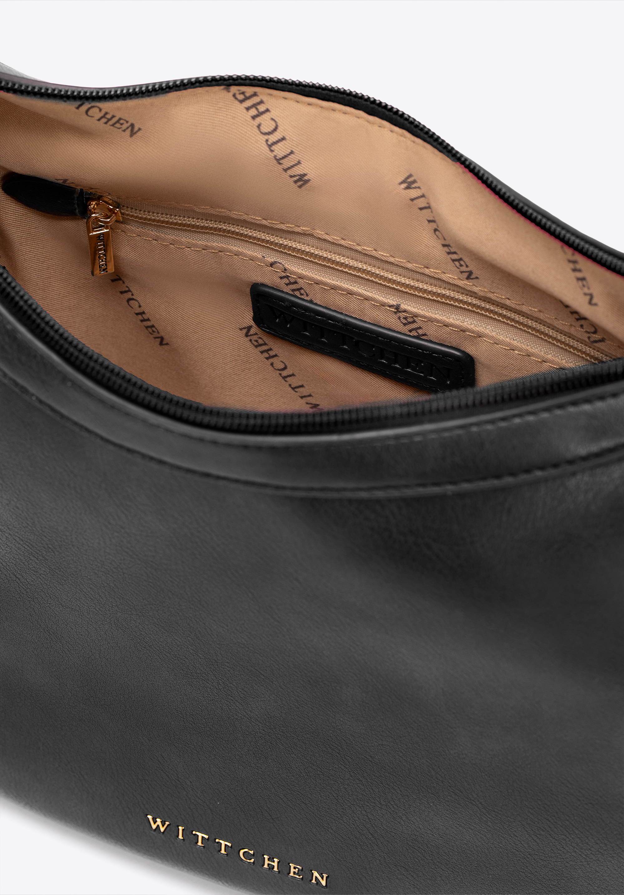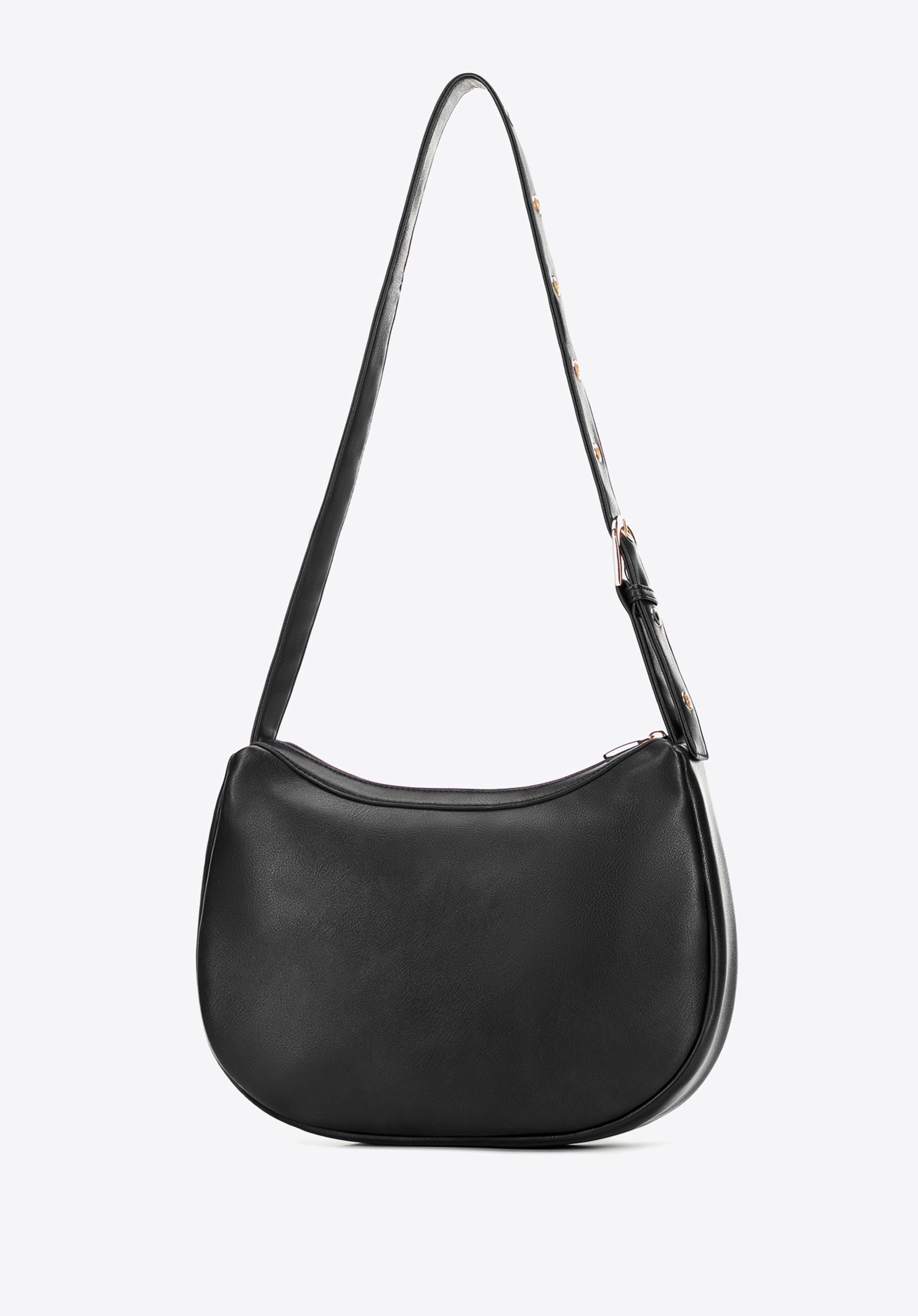 Lightweight, practical and full of charm – this half-moon crossbody bag made of faux leather is a great choice for everyday use. With two internal pockets, including one with a zip, you can keep your essentials neatly organised. The adjustable strap allows you to wear it on the shoulder or across the body, adapting effortlessly to your style and daily rhythm.
