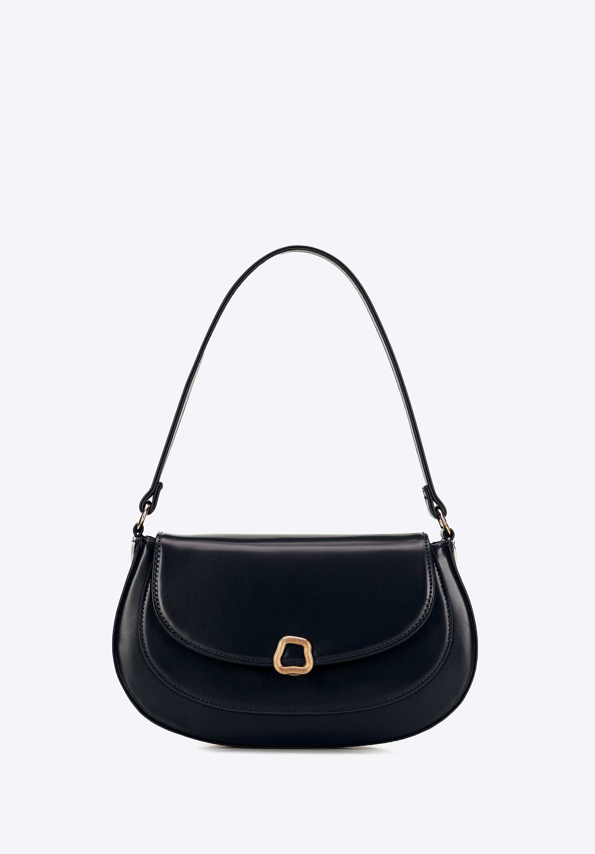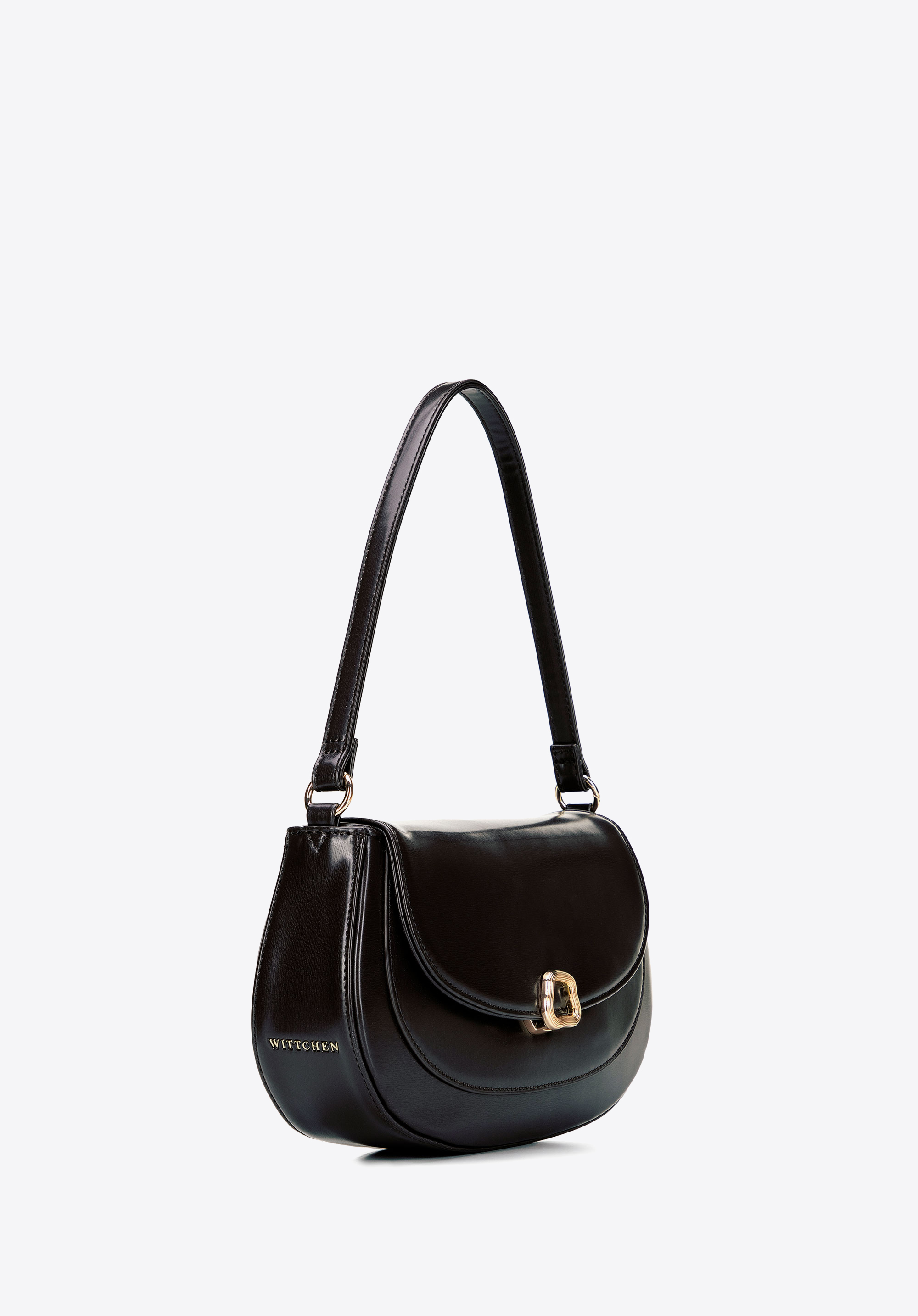 Looking for a handbag that adds a touch of elegance to your outfits while remaining suitable for everyday wear? This sophisticated handbag made from faux leather is just what you need. Its silhouette features a subtle sheen and refined finish, while the decorative buckle on the flap brings a modern, stylish character. The reinforced base ensures that the bag always keeps its shape – no matter what you carry inside.