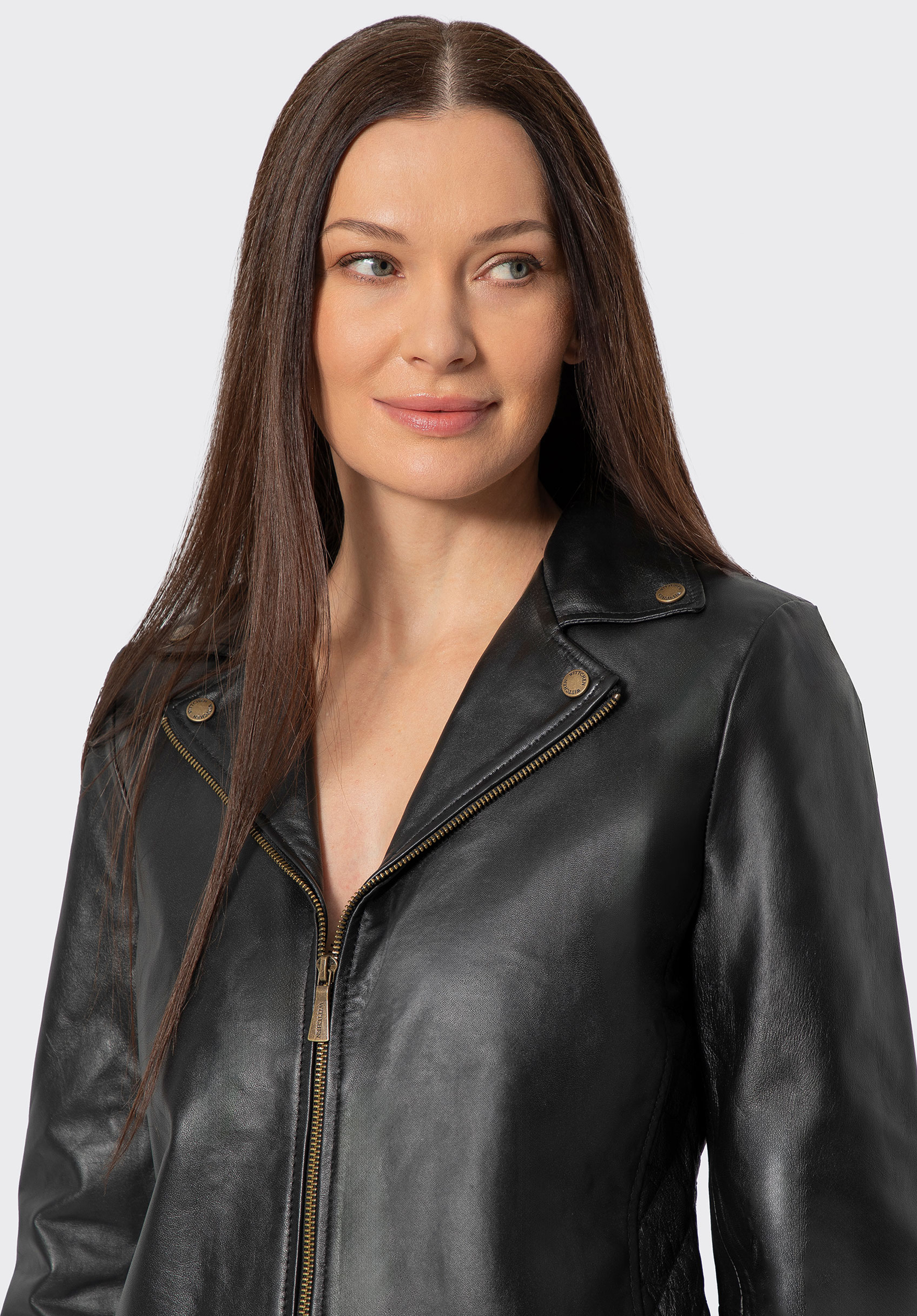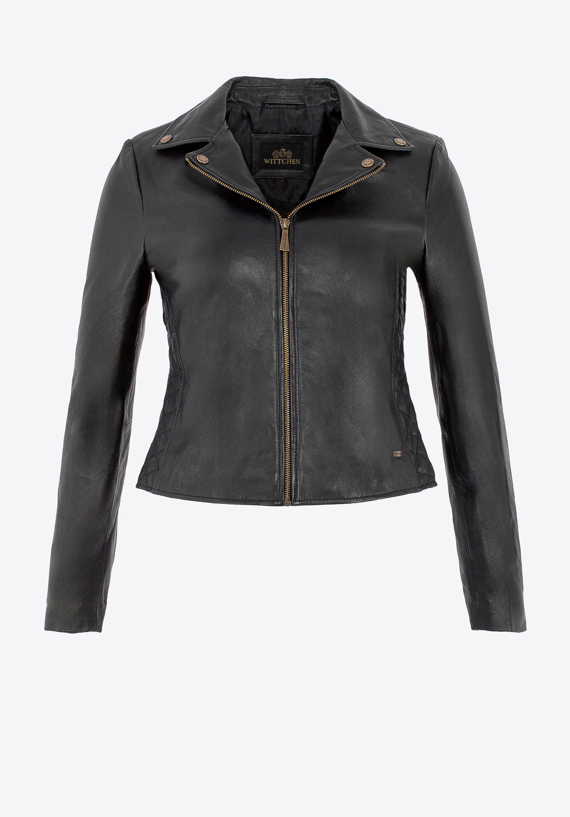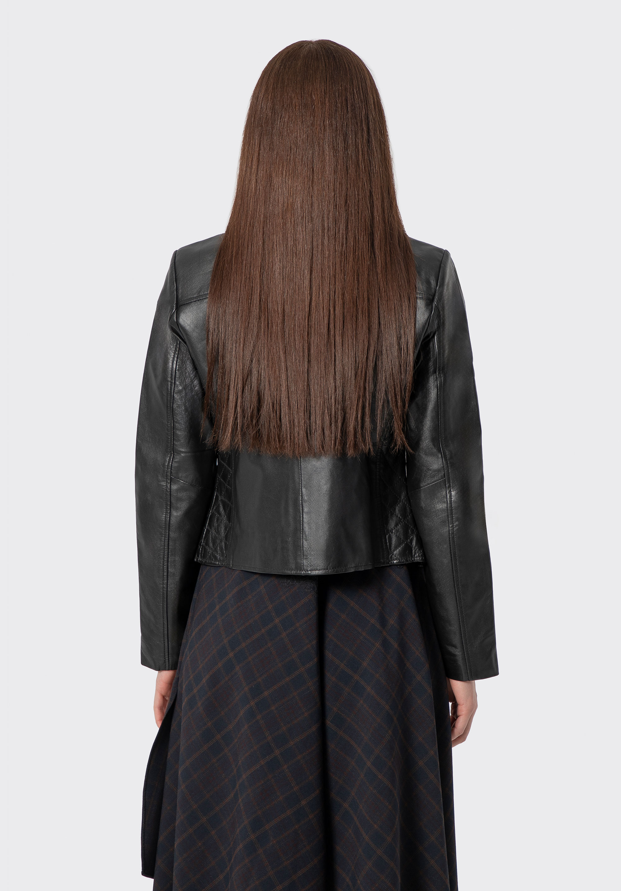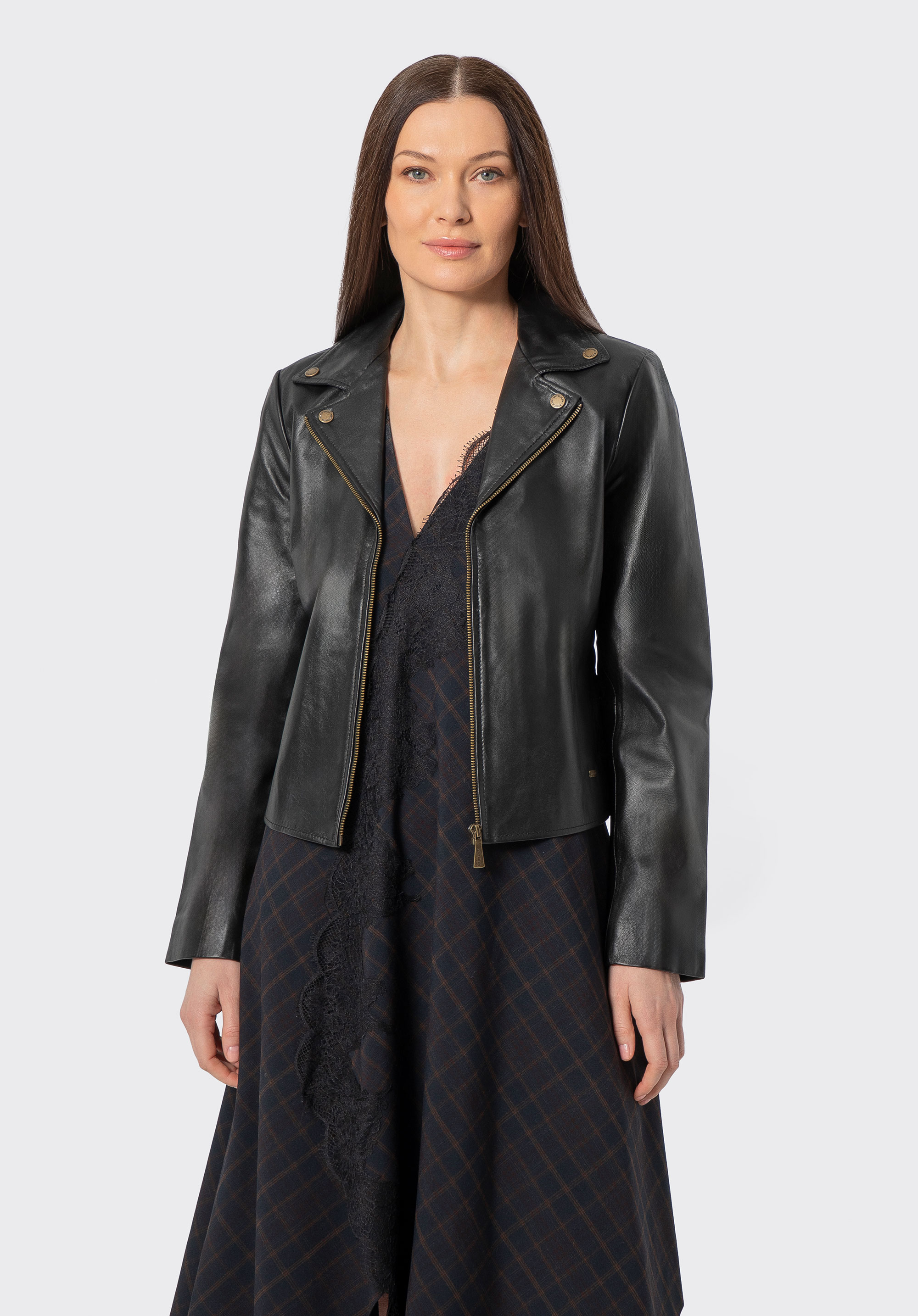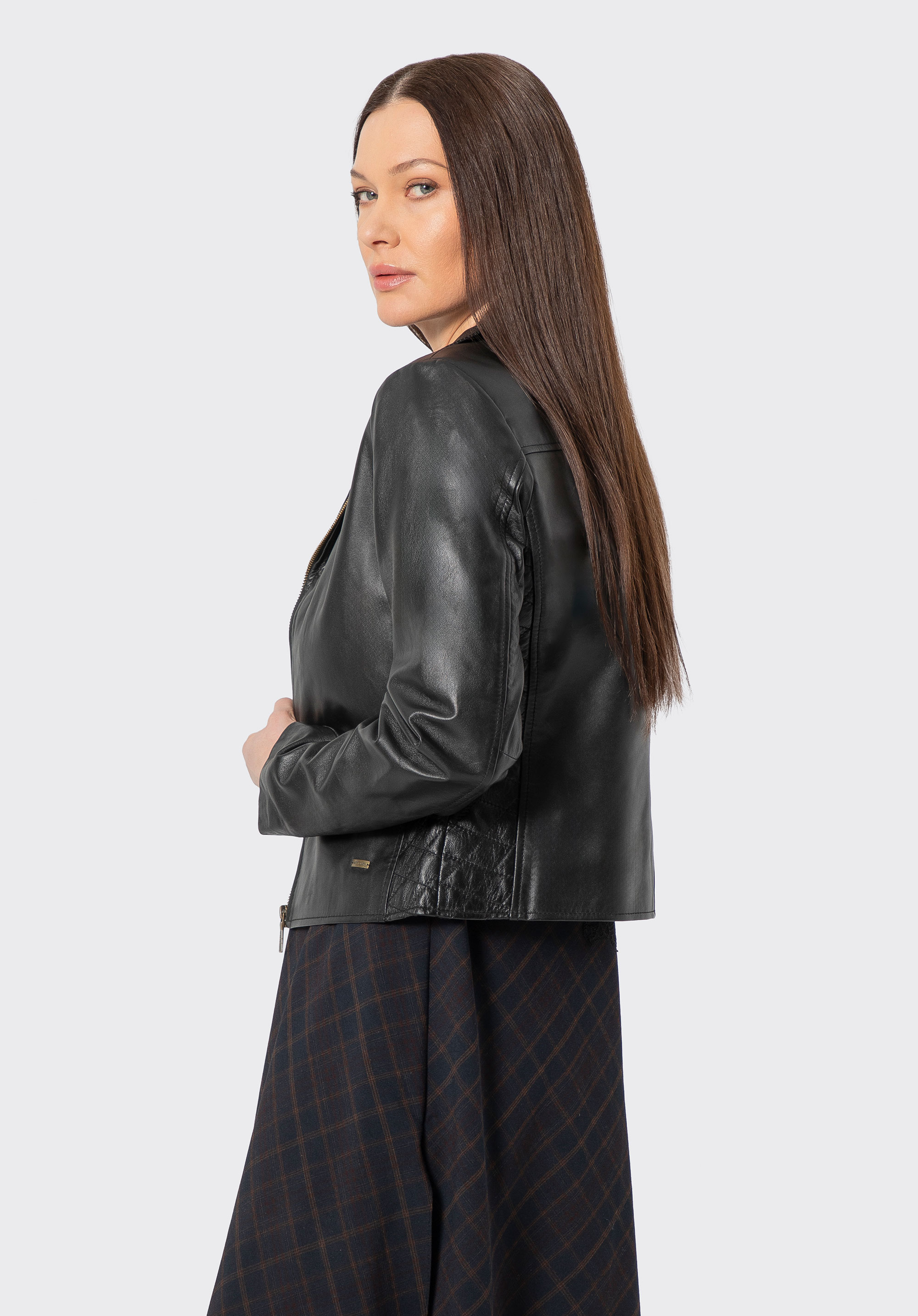Looking for a jacket that will add character to your outfits and accentuate your silhouette? You've just found it! Made from soft, natural leather, it is durable and comfortable to wear. The tailored cut beautifully sculpts the silhouette, while geometric stitching on the sides gives it a modern touch. A zip fastening and subtle metal details – including the brand's logo on the side and branded buttons – emphasise its unique style.