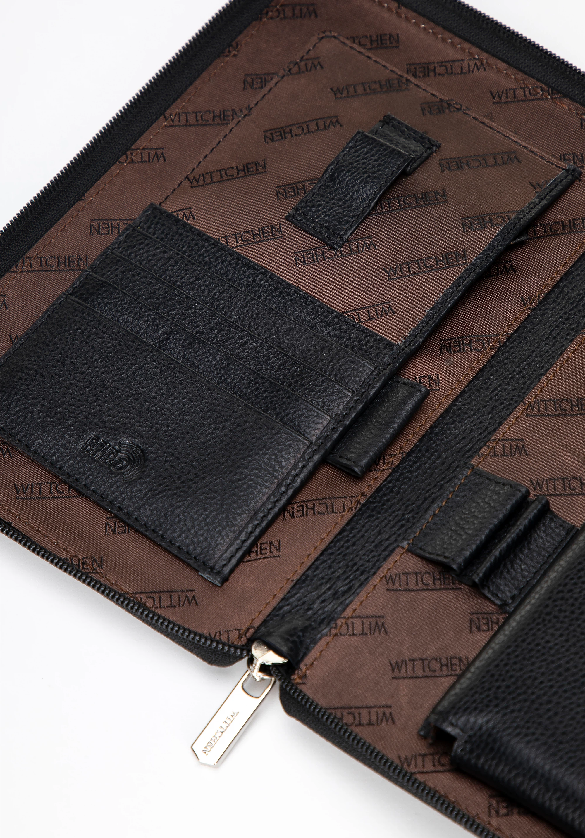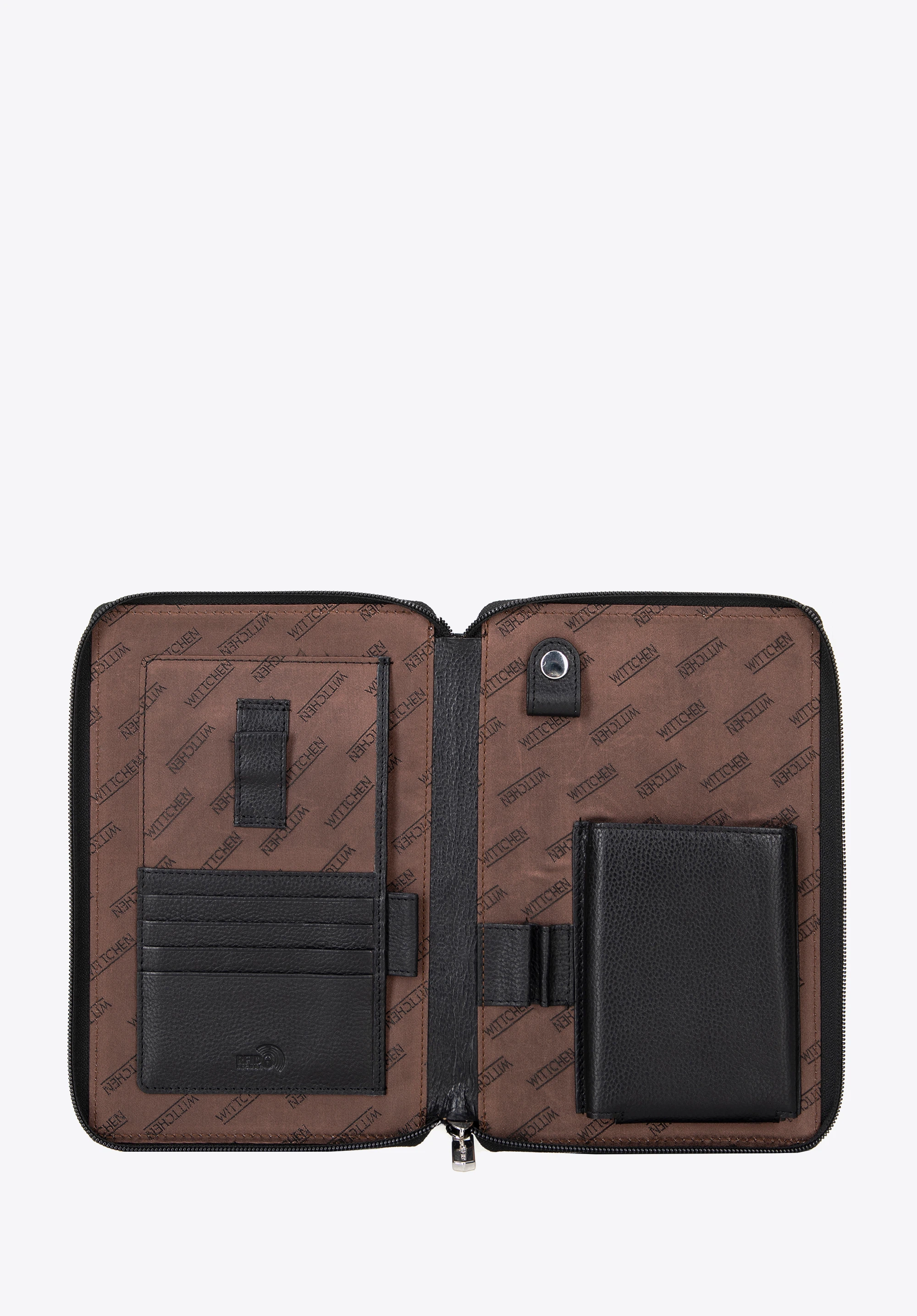 Stylish and functional – this organiser for documents is an essential accessory for those who value order and professionalism. Made from natural leather, it features an elegant finish and precise detailing. The thoughtful interior layout allows for convenient storage of the most important items. You’ll find four card slots, secured with RFID lining to protect against unauthorised scanning. The open pocket is perfect for documents you want to keep close at hand.