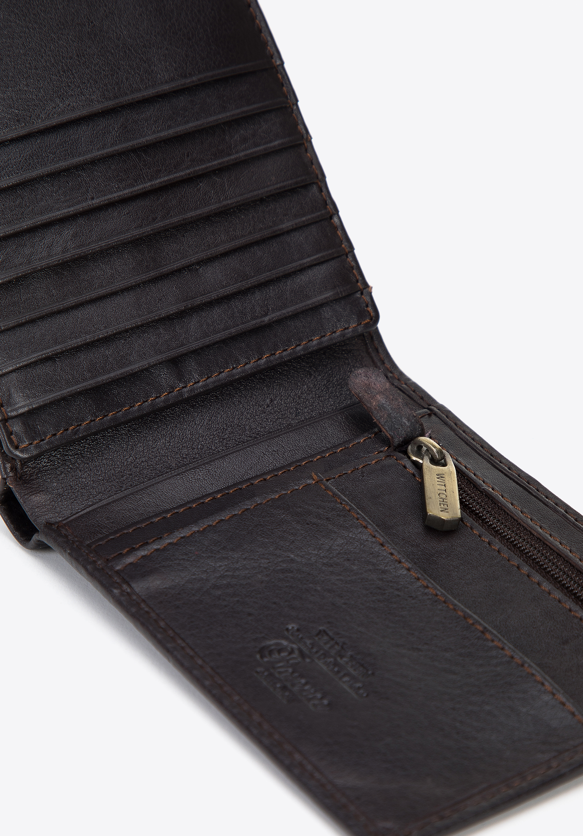 Our elegant men's wallet, crafted from premium soft calf leather, is a perfect blend of style and functionality. The classic design with an embossed WITTCHEN logo highlights its prestige, while the innovative RFID lining ensures your data is secure. The thoughtfully designed interior, featuring 14 card slots, 2 banknote compartments, and a zipped coin pocket, guarantees everyday convenience. It’s an ideal choice for men who appreciate timeless elegance and reliability.