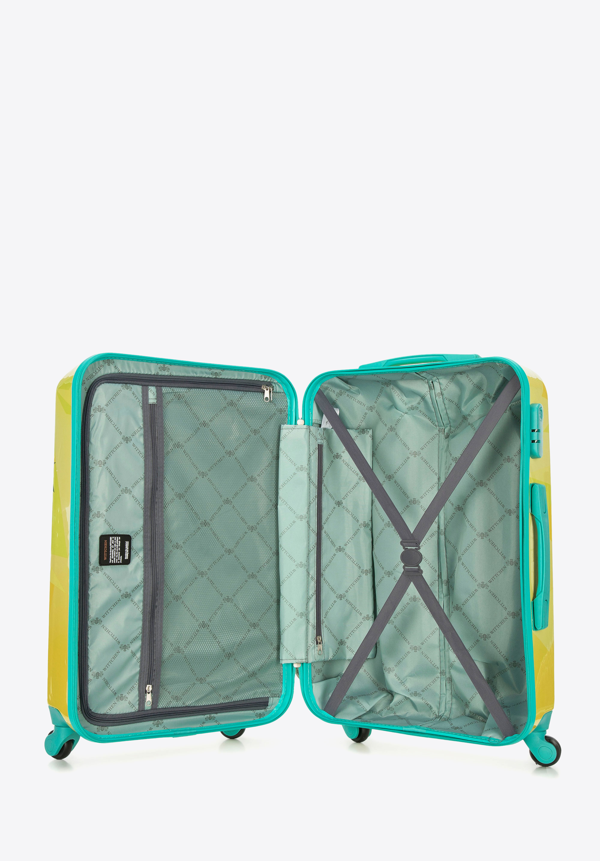 Medium-size suitcase made from a hardwearing ABS material with the additional polycarbonate coating. Crafted in captivating modern design with colourful prints of nature and wildlife, this suitcase will meet the expectations of every savvy traveller. This luggage is offered in an array of colours.