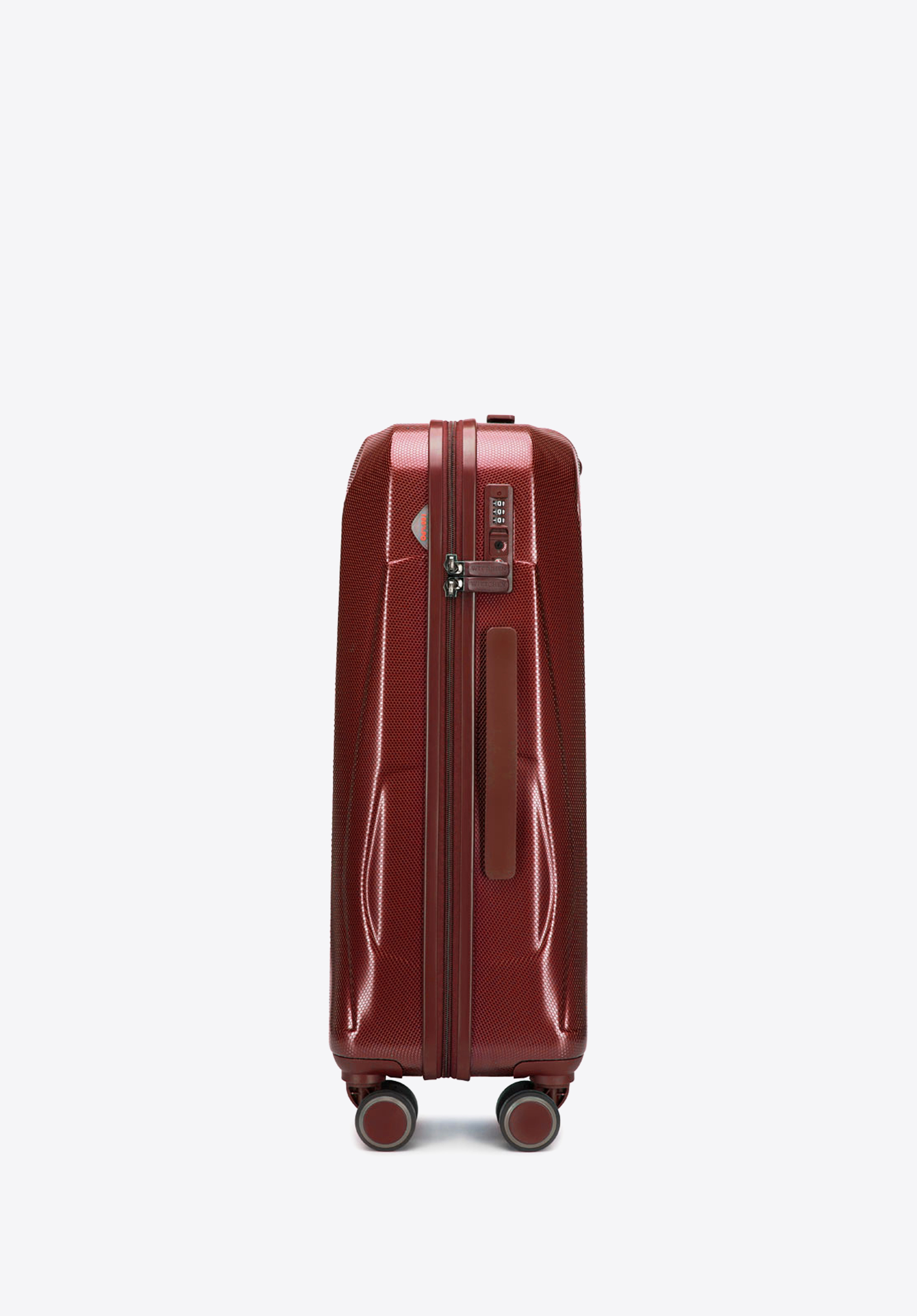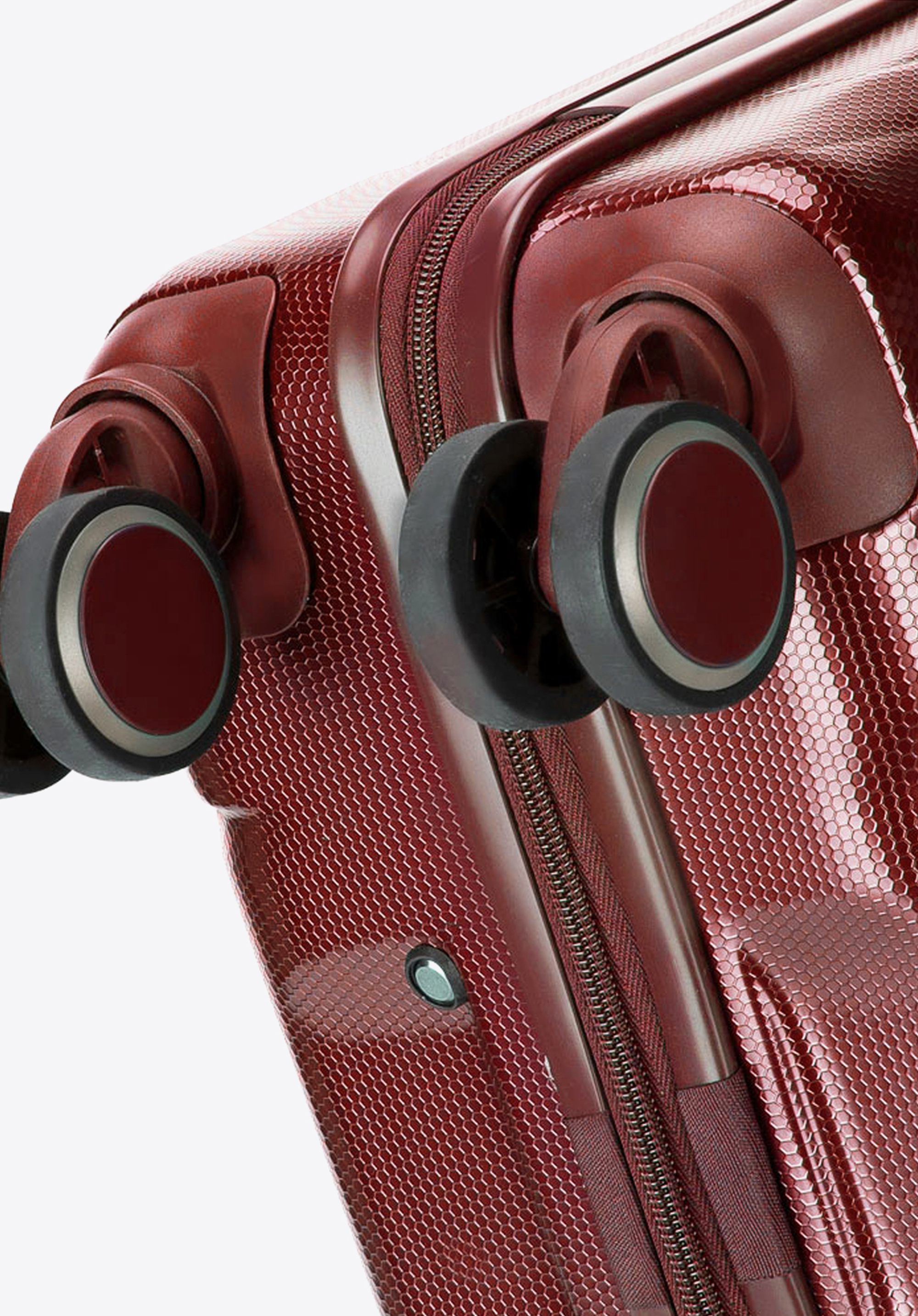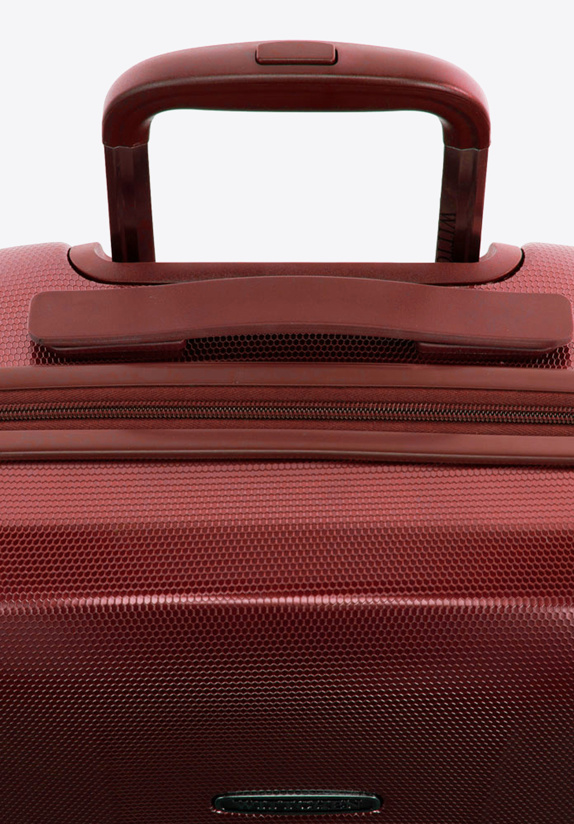 With a honeycomb textured outer, which will hide the appearance of scratches and a durable polycarbonate construction, this medium-sized suitcase is designed to withstand the rigours of any trip. It features a telescopic push button locking handle and two auxiliary lifting handles. This monochromatic design is offered in 5 colours: blue, green, burgundy, navy blue and black.