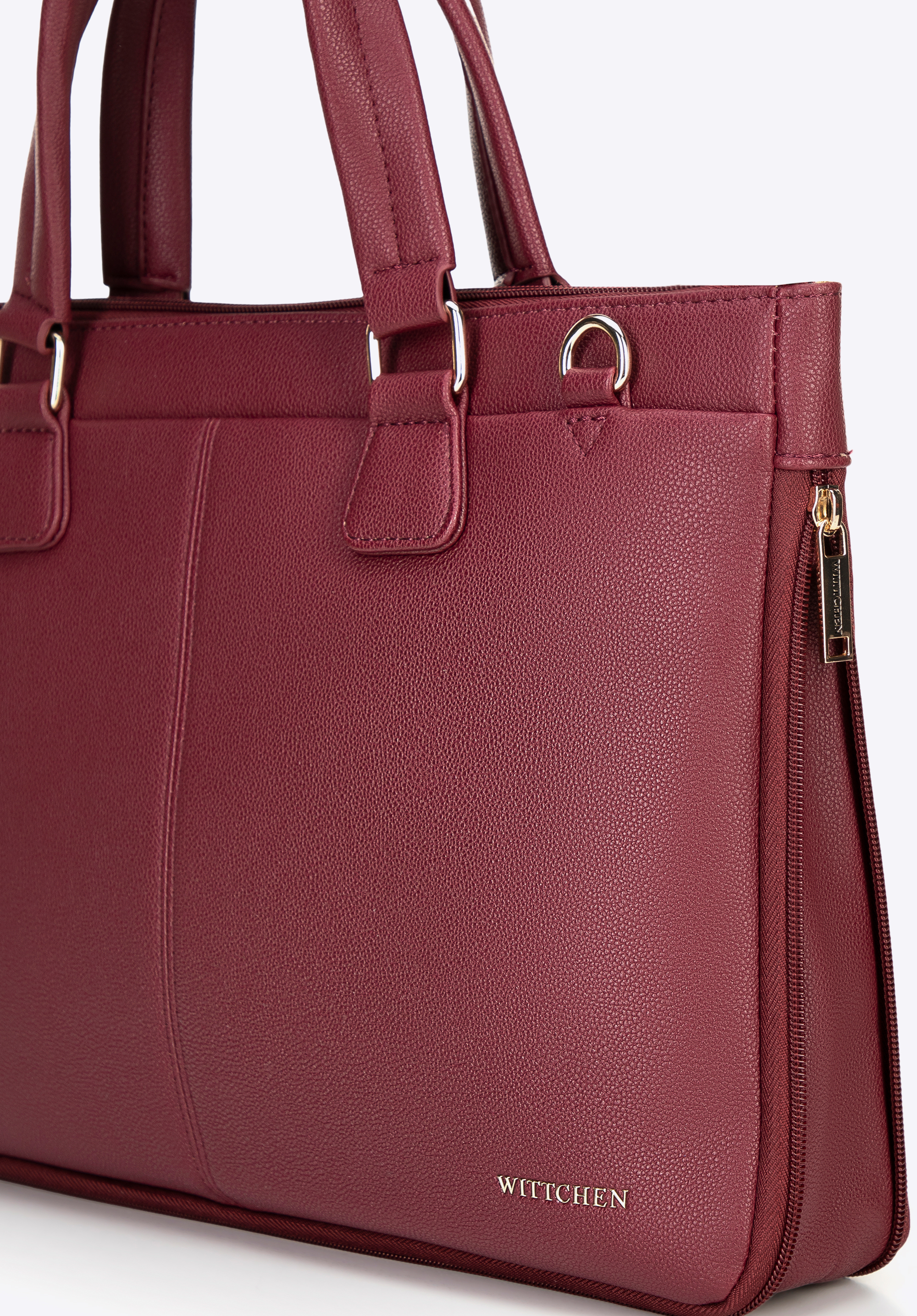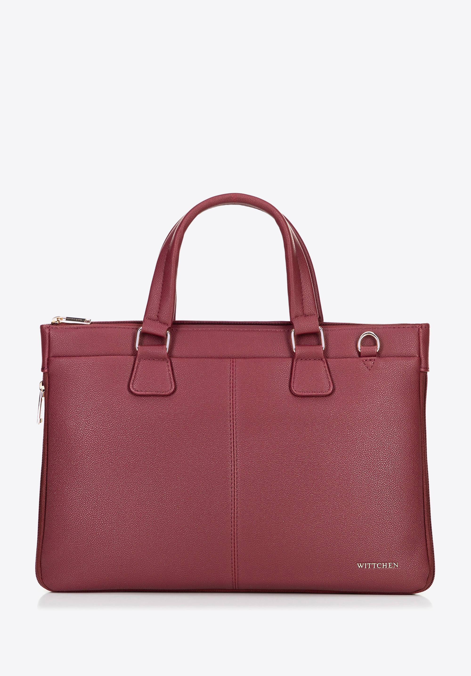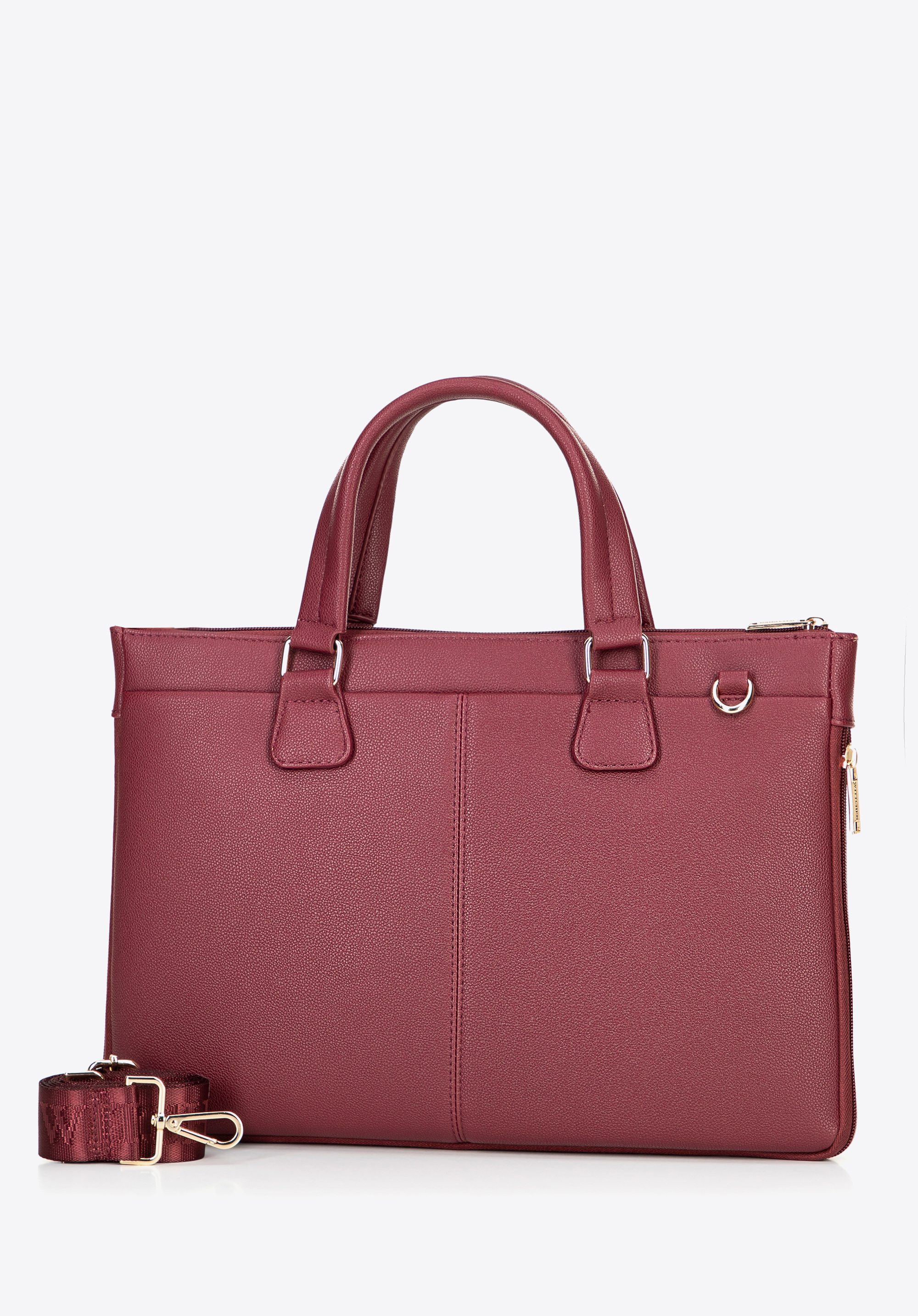 This stylish laptop bag 14.5" combines functionality with modern design. Made from faux leather and secured with a zip fastening, it ensures full protection for your device. The bag features two comfortable handles and a detachable, adjustable strap, allowing you to carry it in hand or over your shoulder. The interior includes a laptop compartment for devices up to 23 × 30 cm, ensuring a secure fit.