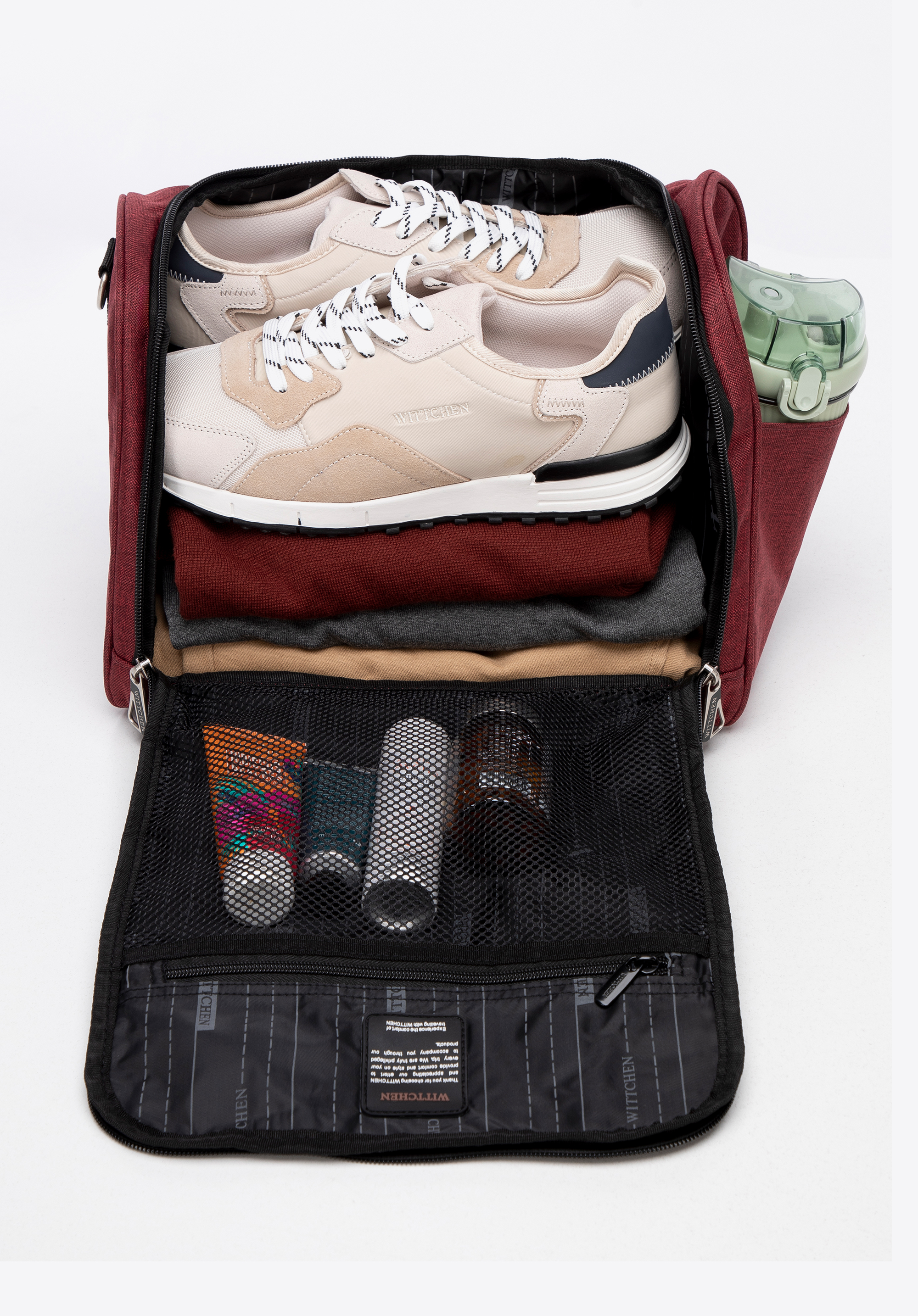 This travel bag is the perfect travel companion – it meets the cabin luggage requirements of most airlines, allowing you to take it on board without any extra fees. With its compact dimensions and thoughtful functionality, you can fit everything essential for a short trip – from accessories to clothing items.