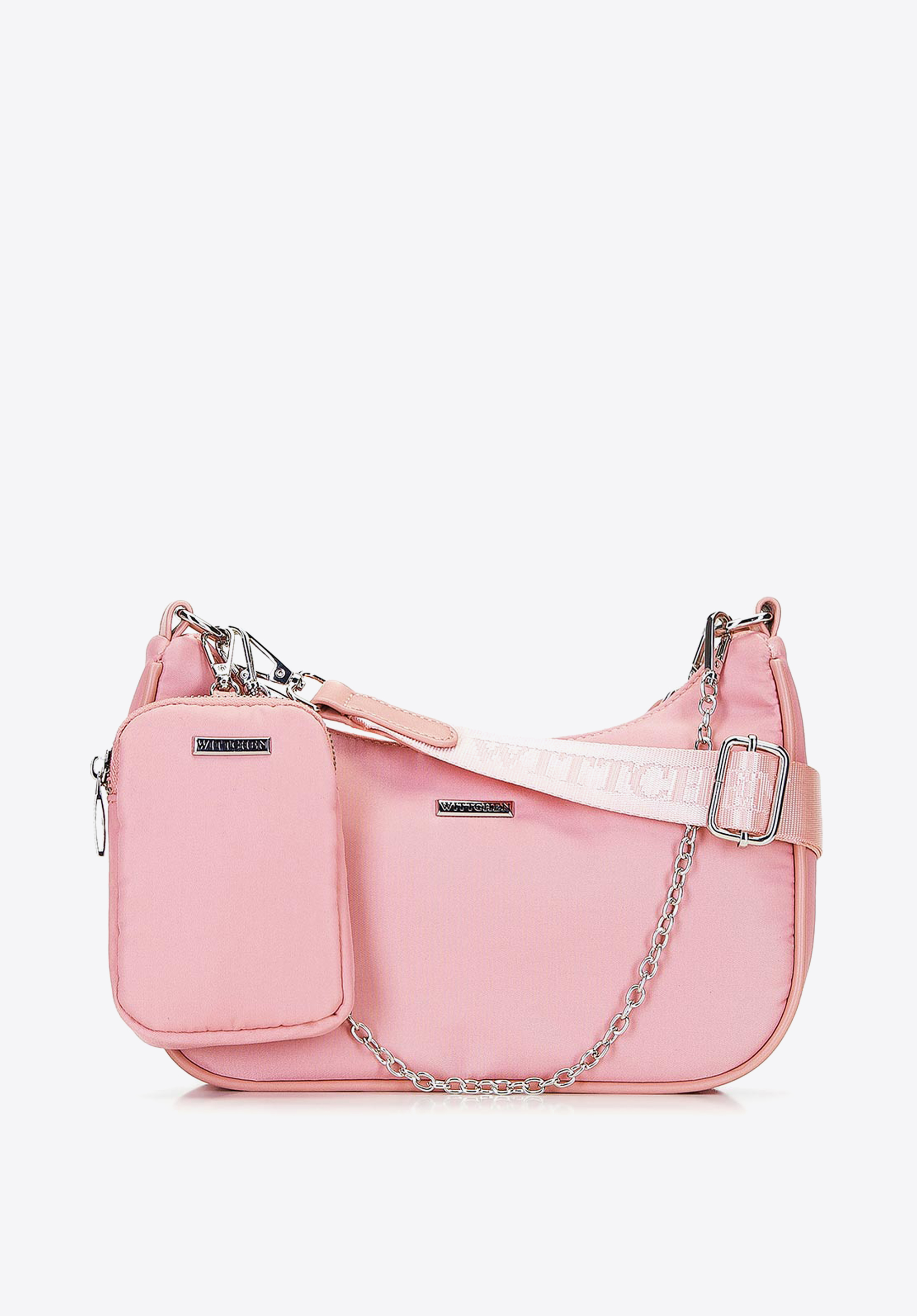 - decorative, detachable chain strap;