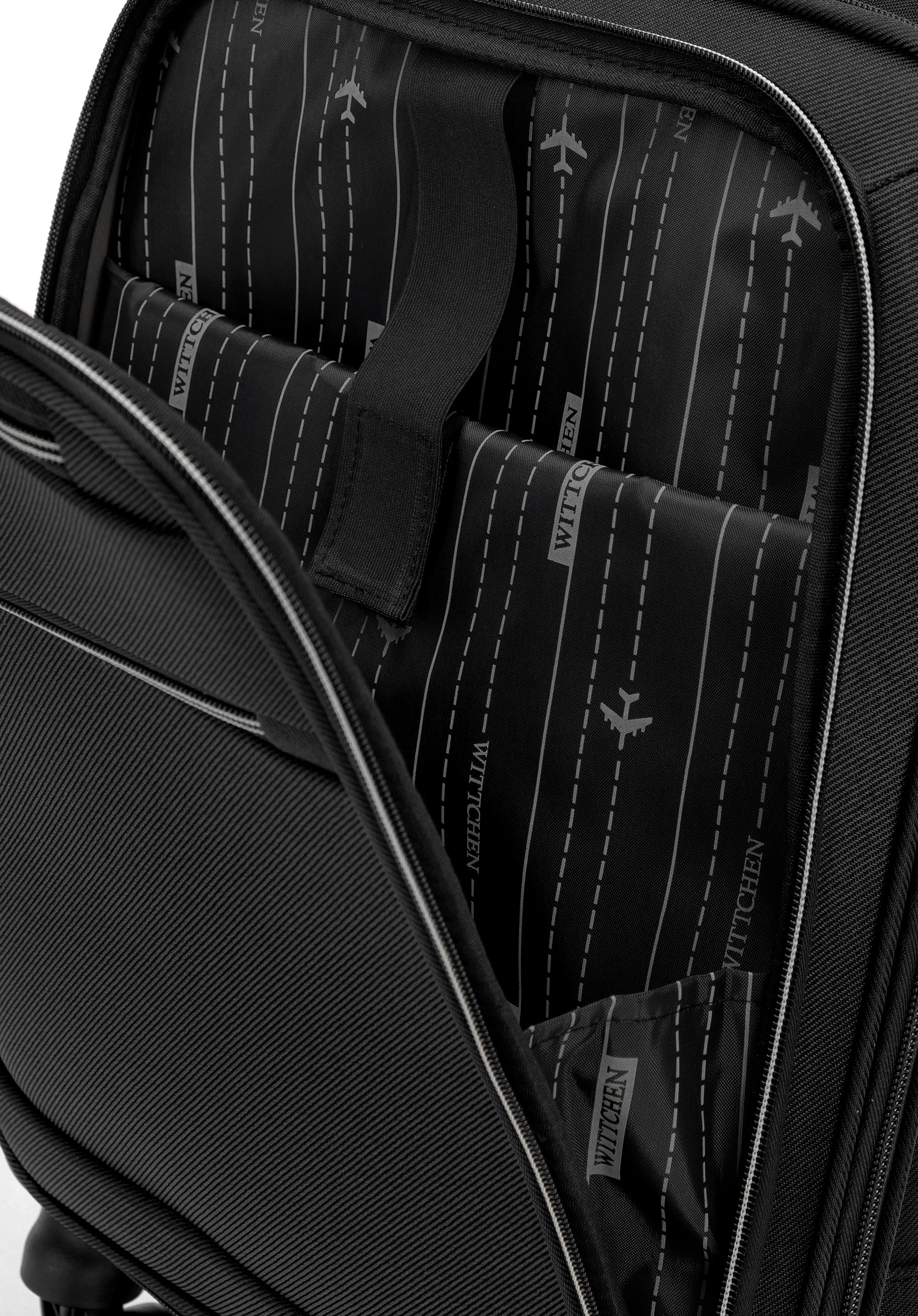 This lightweight, soft cabin case is perfect for short business trips and weekend getaways. Made from durable polyester that resists scratches and is easy to clean, it combines practicality with a modern look. Four double 360° wheels ensure smooth manoeuvring, while the laptop pocket for devices up to 15" adds convenience for travellers on the move.