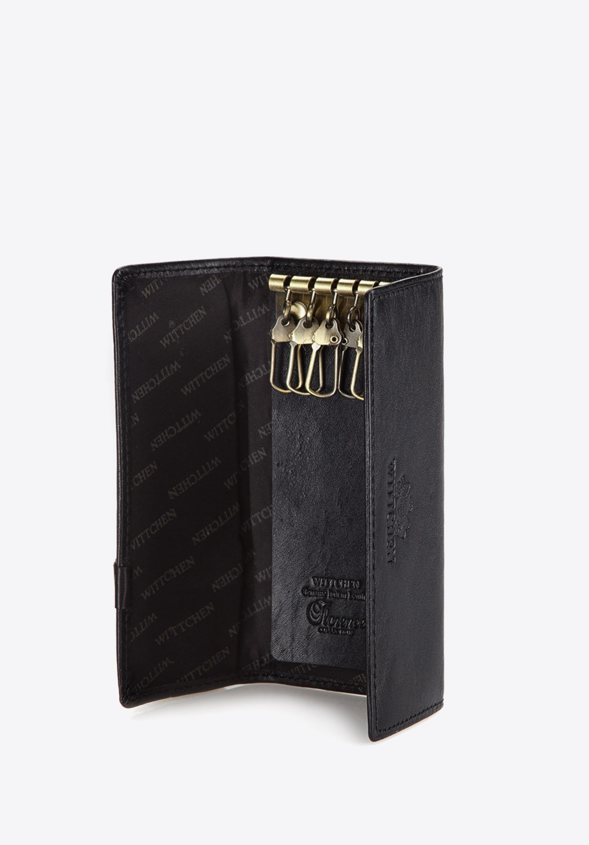 sześć karabińczyków na klucze. Z przodu znajduje się wytłoczone logo WITTCHEN. Etui na długie klucze to propozycja dla osób ceniących sobie jakość, niezawodność, funkcjonalność oraz proste rozwiązania.