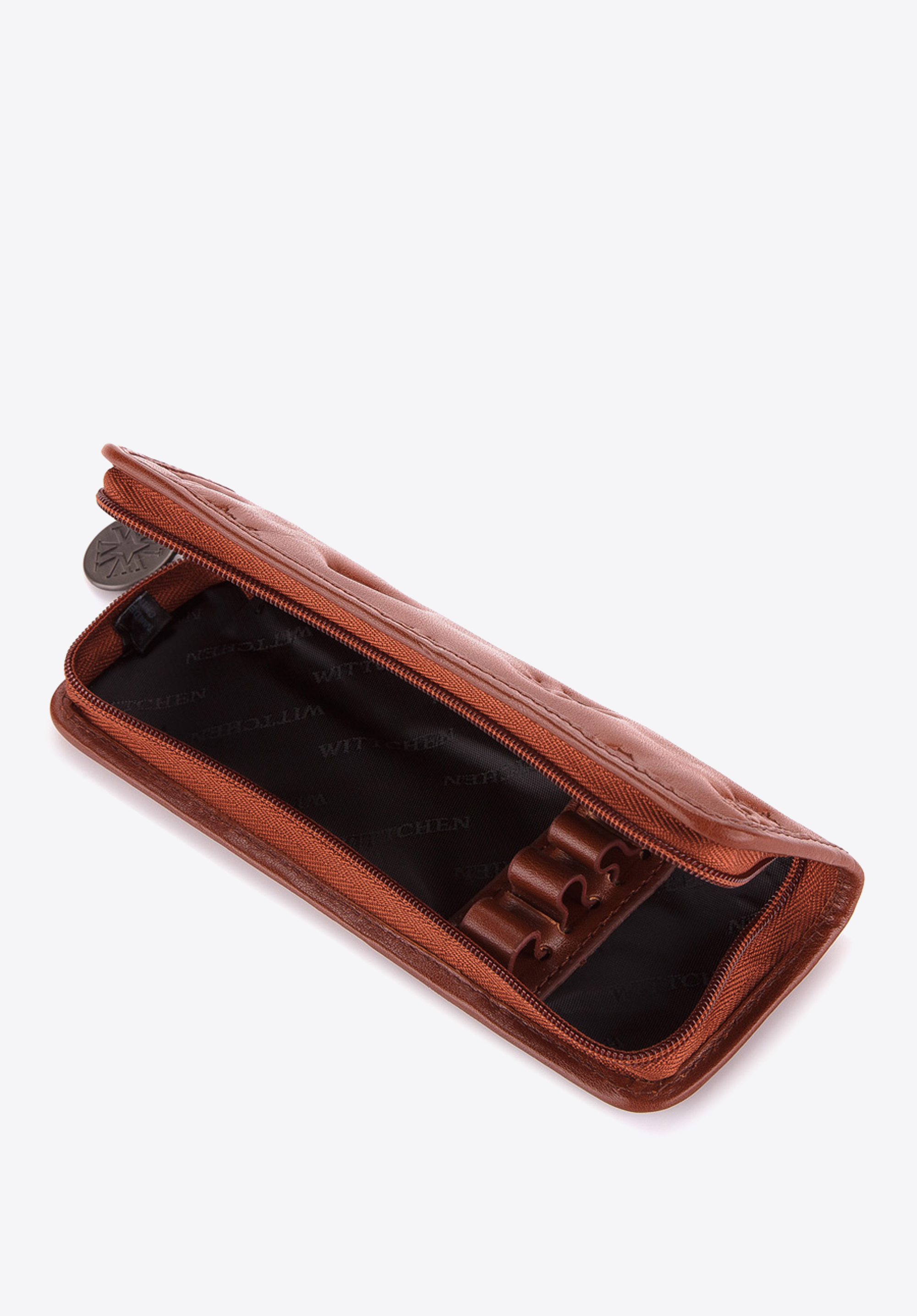 Eleganckie i praktyczne etui na długopisy, wykonane z miękkiej i najwyższej jakości skóry cielęcej. Model ozdobiony charakterystycznymi tłoczeniami, wyposażony w wygodne zamknięcie na suwak. Etui doskonale sprawdzi się podczas biznesowych spotkań oraz w codziennym użytkowaniu.