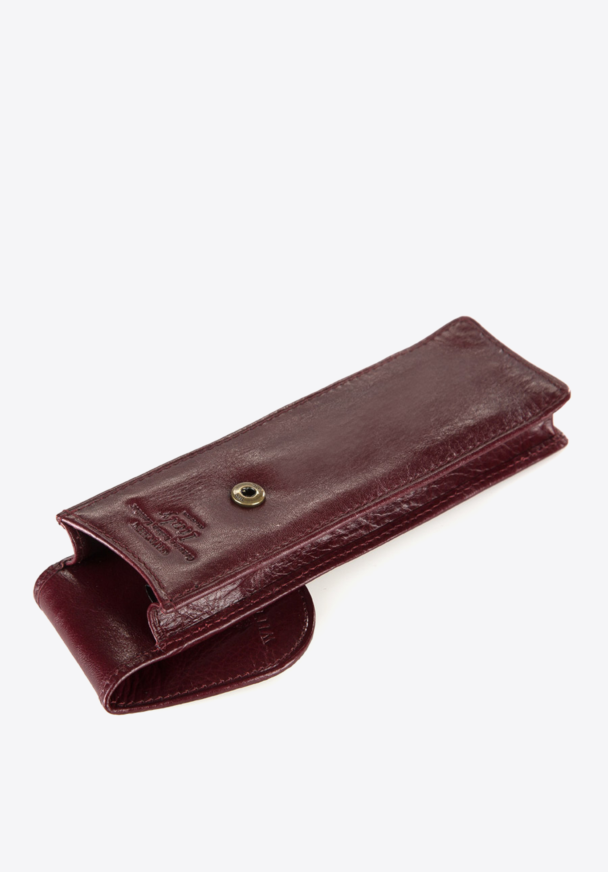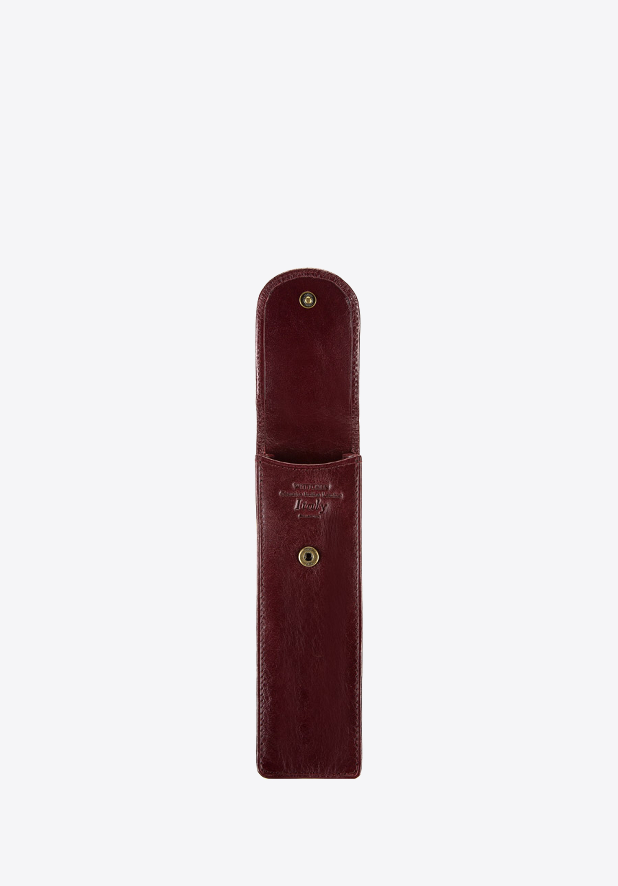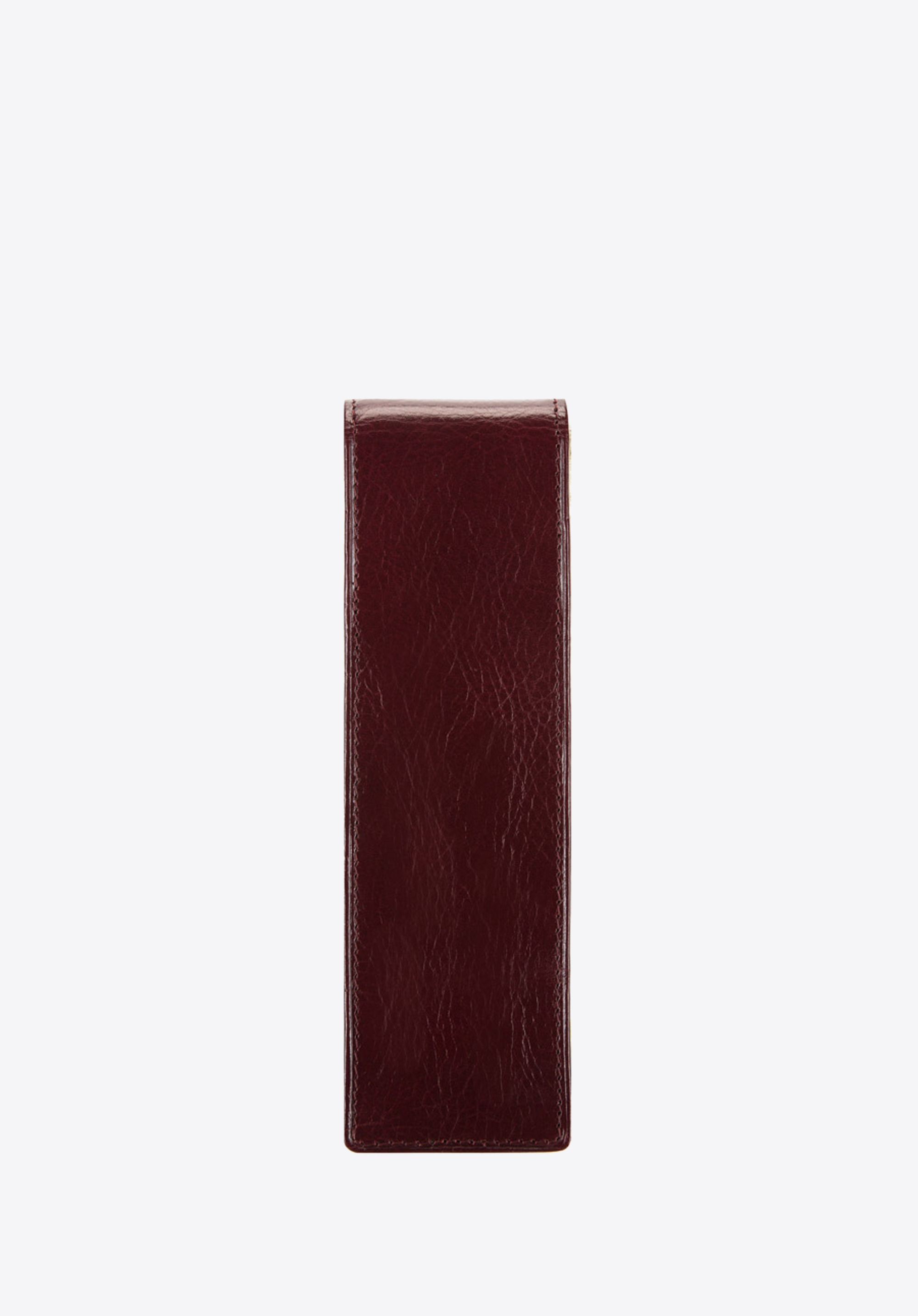 Stylowe i funkcjonalne etui na długopisy, wykonane z dużym kunsztem, z delikatnie połyskującej skóry naturalnej. Etui stanowi idealną ochronę przyborów do pisania, a dzięki małym rozmiarom jest niezwykle praktyczne i wygodne.