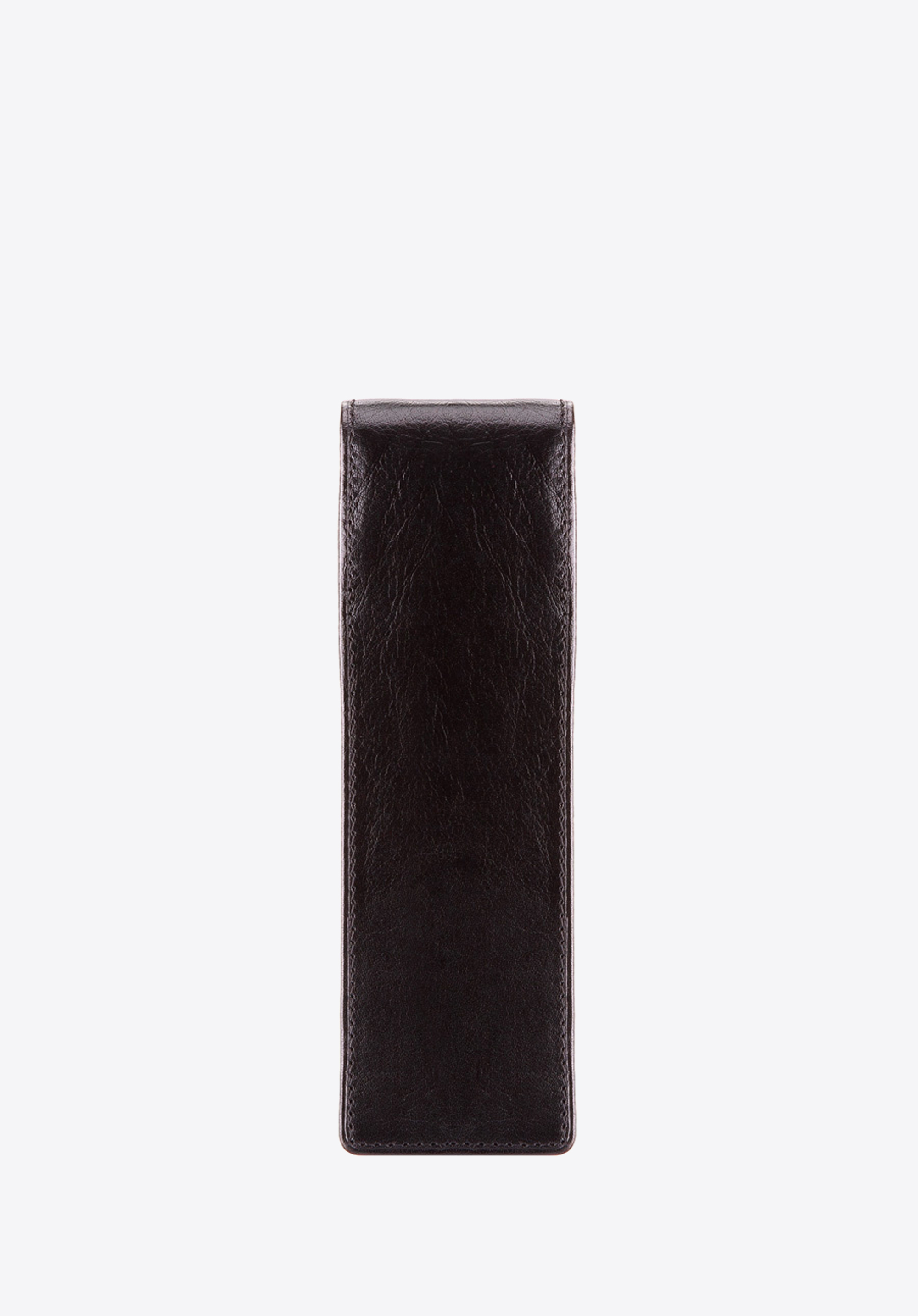 Stylowe i funkcjonalne etui na długopisy, wykonane z dużym kunsztem, z delikatnie połyskującej skóry naturalnej. Etui stanowi idealną ochronę przyborów do pisania, a dzięki małym rozmiarom jest niezwykle praktyczne i wygodne.