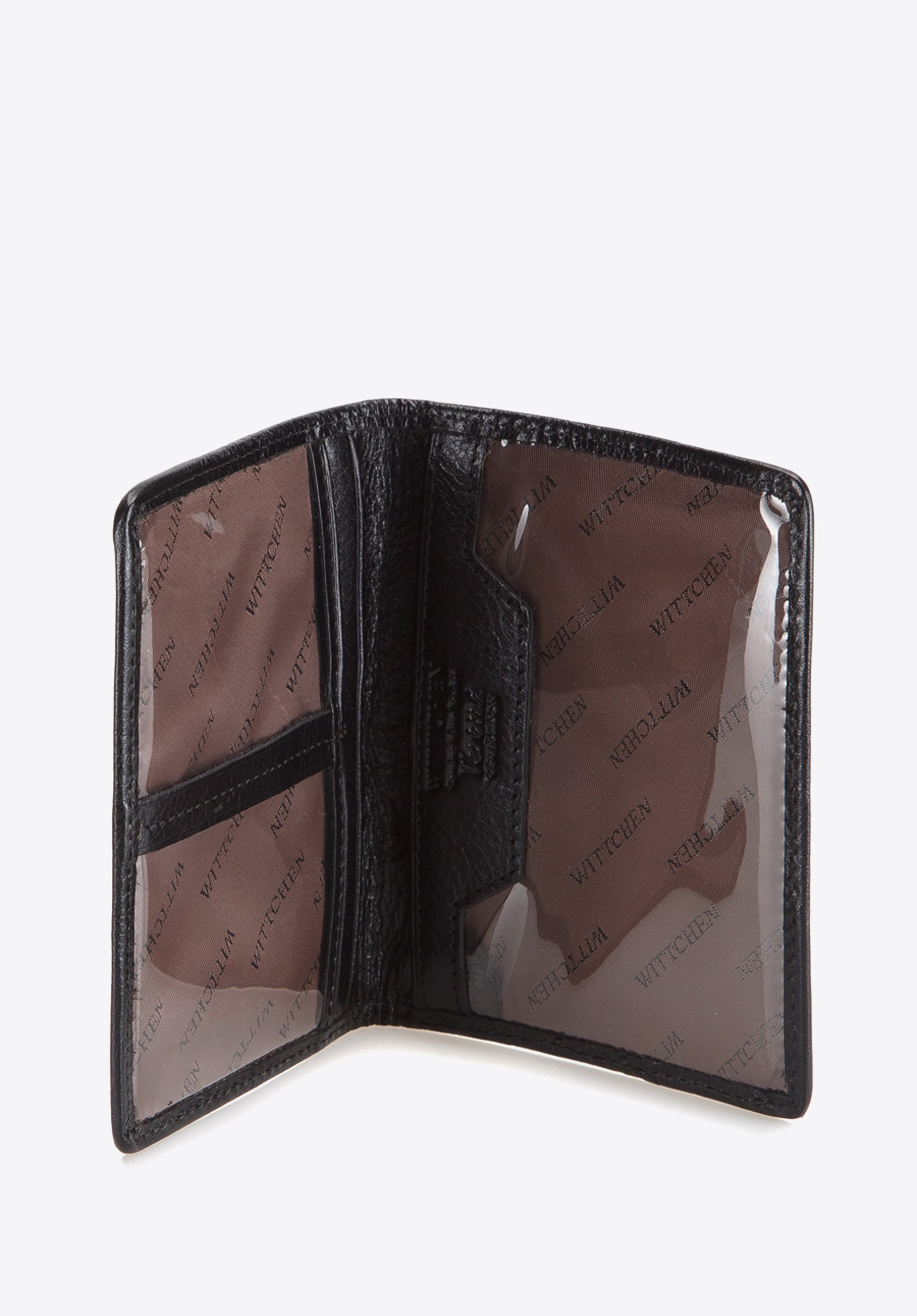 Klasyczne w formie, za to wyjątkowe w wykończeniu - etui na dokumenty uszyte z lakierowanej skóry to dodatek nie tylko praktyczny, lecz także wyjątkowo elegancki. Wnętrze i obszycia w tym modelu zostały wykonane ze skóry licowej, z przodu umieszczone logo - metalowa blaszka z herbem WITTCHEN w kolorze starego złota.