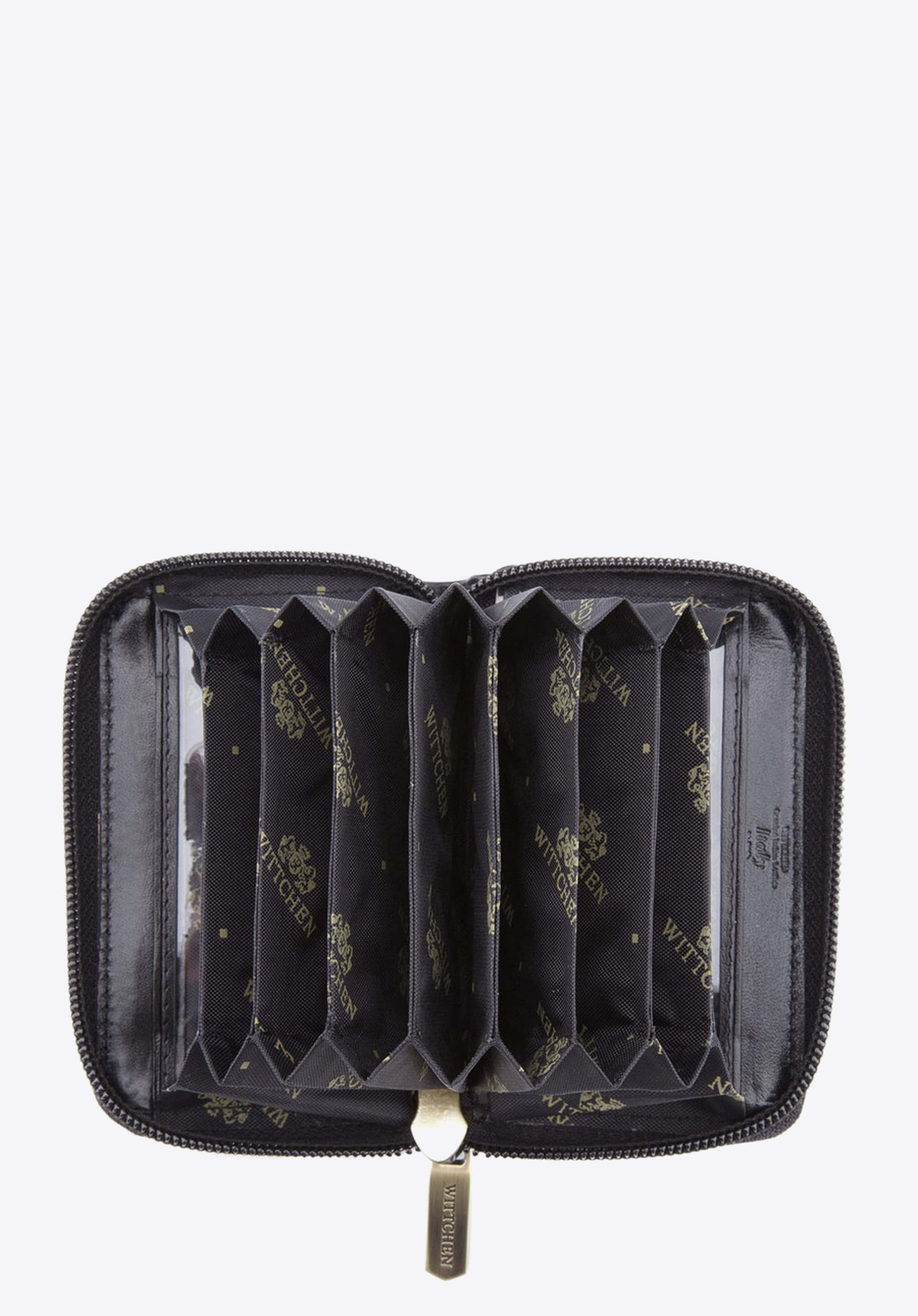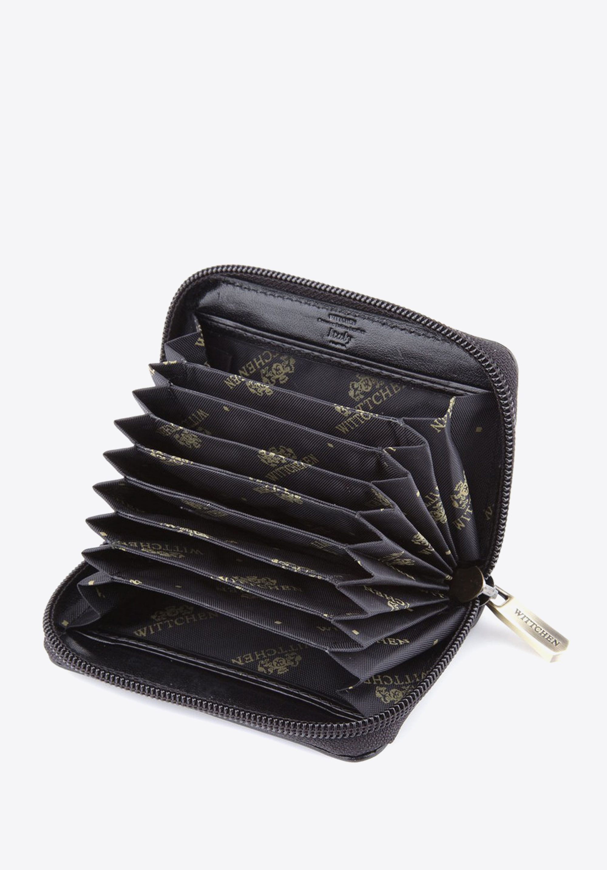 Skórzane etui na karty kredytowe zamykane na suwak, z wnętrzem rozkładanym harmonijkowo. Posiada aż 11 kieszonek na karty. Funkcjonalne i gustowne zarazem.