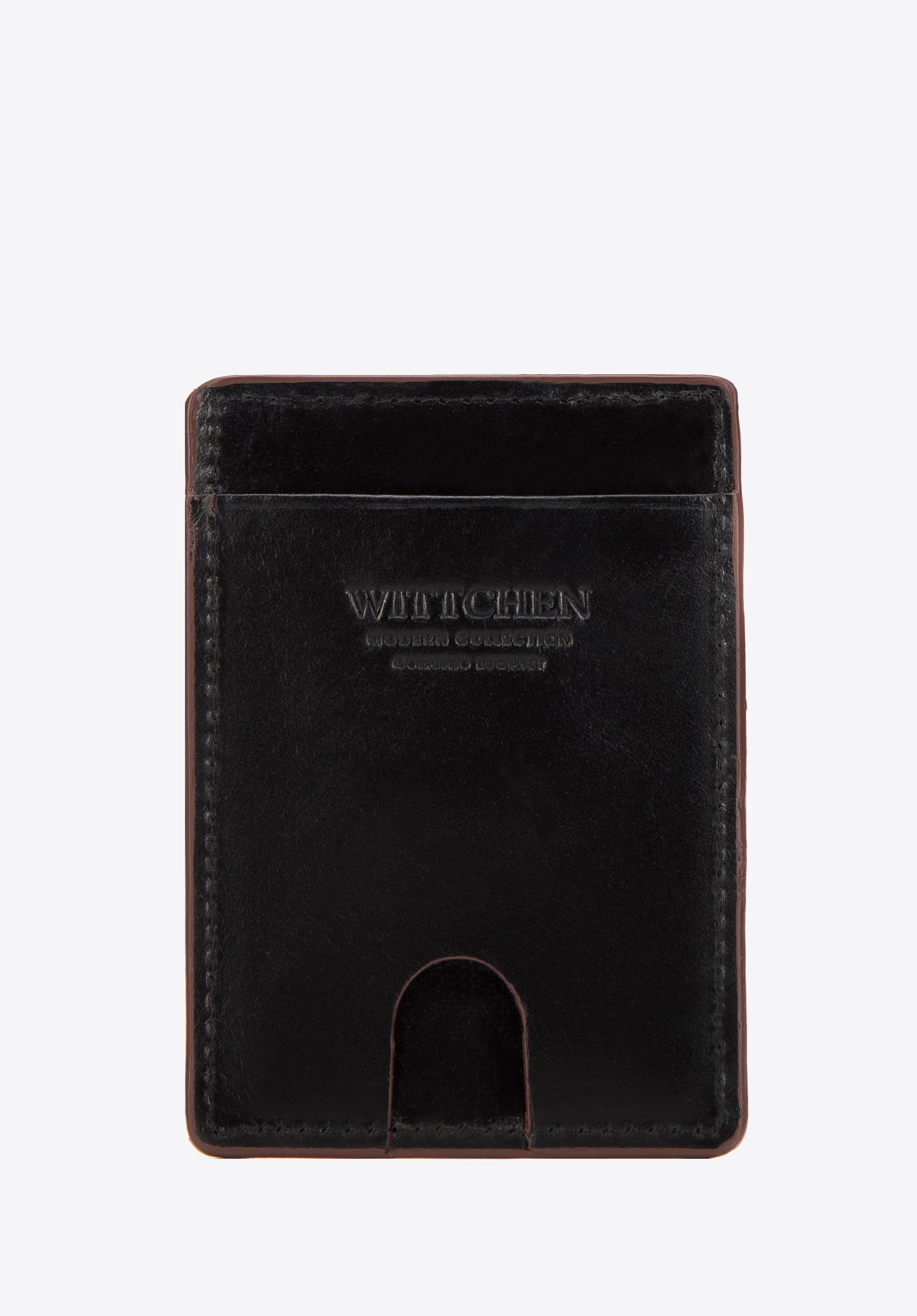 (RFID). Etui na karty skórzane z brązową lamówką to świetny zamiennik małego portfela.