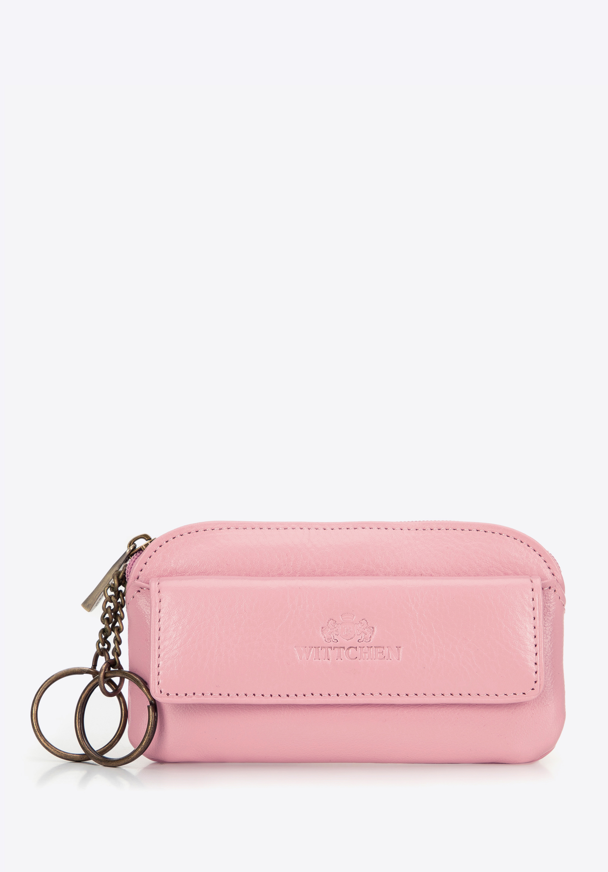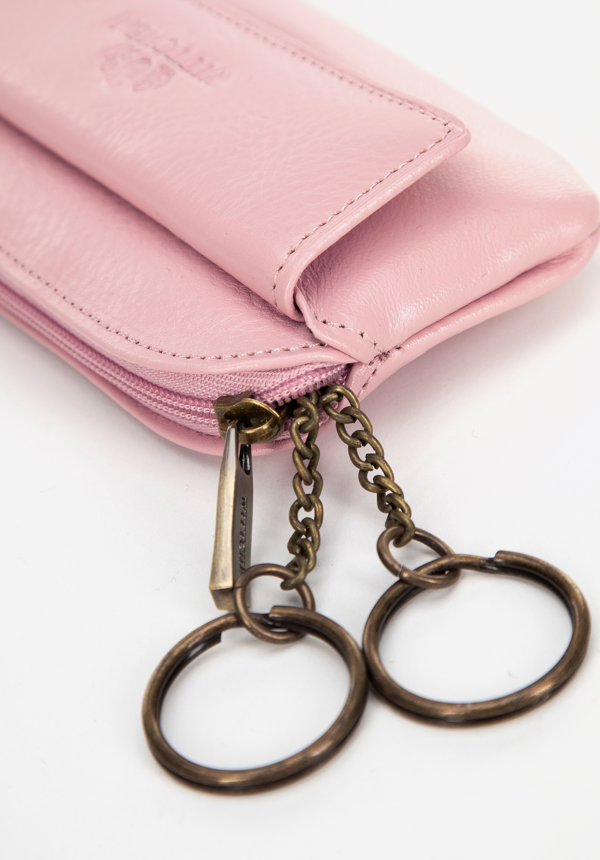 Etui na klucze skórzane z logo sprawdzi się w pracy i na co dzień, kiedy chcesz uniknąć hałasu kluczy w torbie i ochronić jej wnętrze przed zarysowaniami. Zamek zabezpiecza zawartość, dwa kółka porządkują pęk kluczy, a dodatkowa kieszonka na napę daje miejsce na drobne niezbędniki.