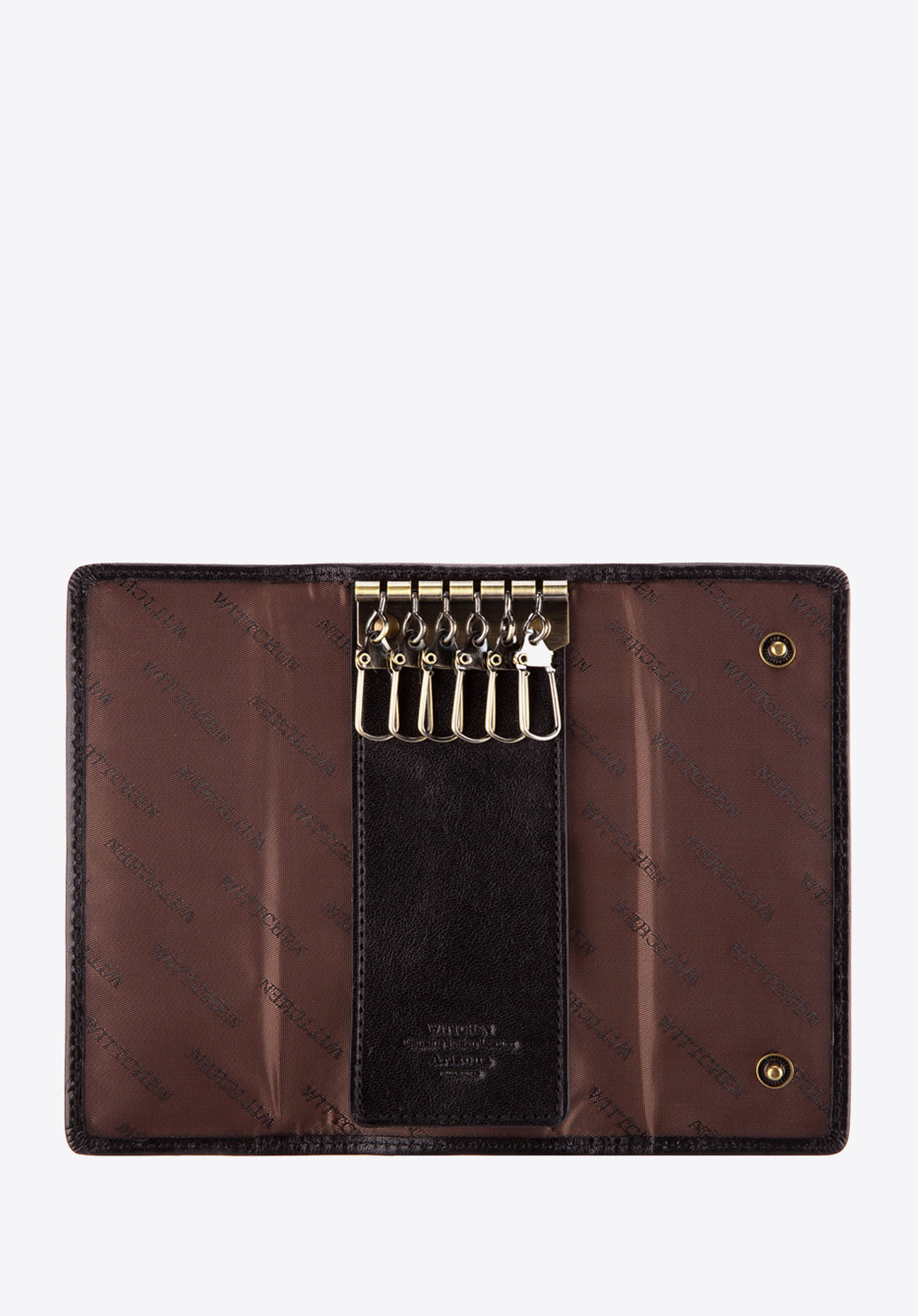 Etui na klucze ze skóry z herbem to elegancki wybór dla osób, które cenią porządek w codziennych akcesoriach i lubią mieć klucze zawsze pod kontrolą, w torebce lub aktówce. Skóra cielęca o subtelnym połysku, 6 karabińczyków i solidne zapięcie na zatrzaski zapewniają wygodę użytkowania oraz estetykę godną kolekcji premium.