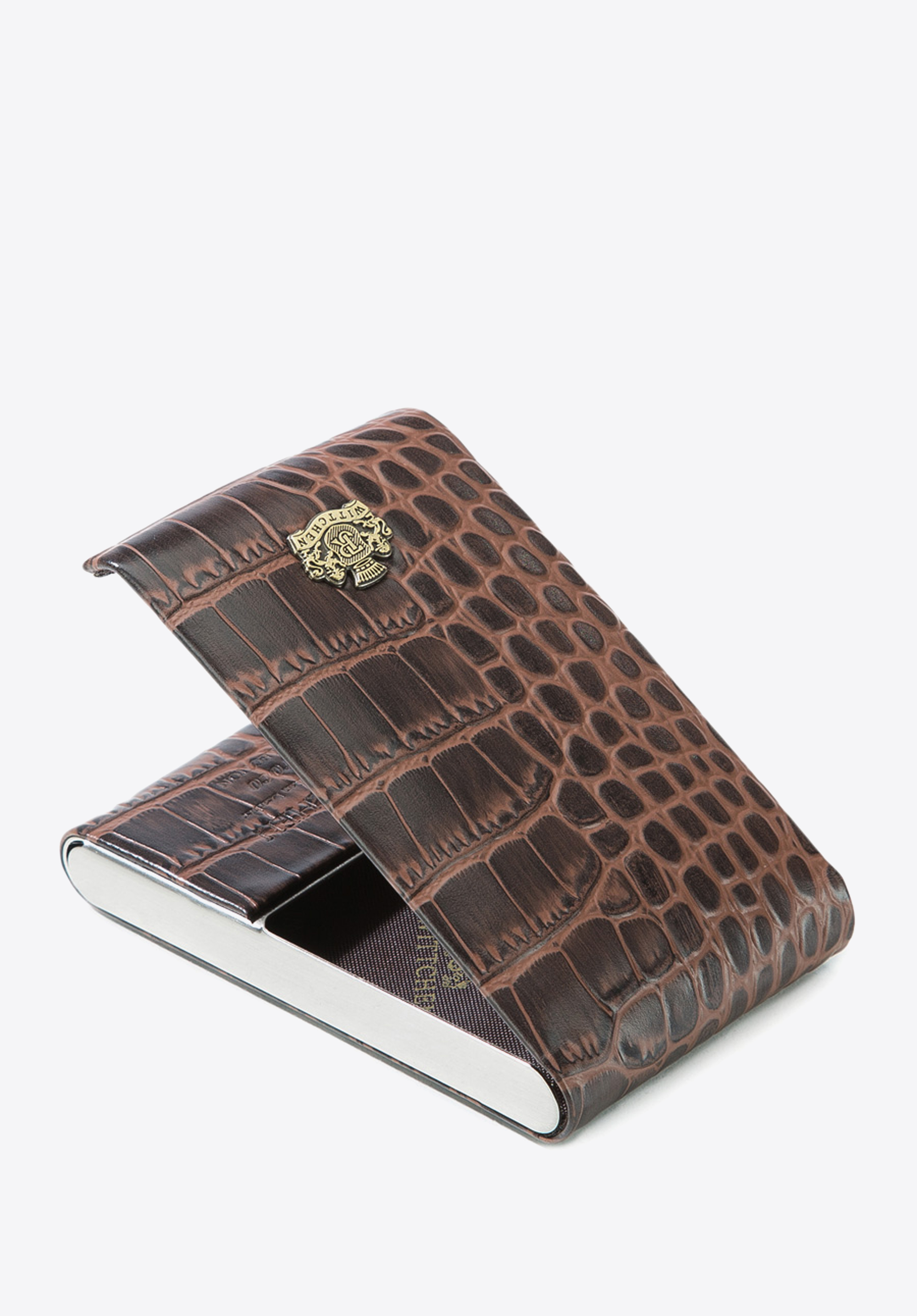 Skórzane etui na wizytówki cechuje klasyczny, a zarazem wyrafinowany styl. Eleganckie tłoczenie i herb WITTCHEN w kolorze starego złota podkreślają szyk tego praktycznego gadżetu. Wizytówki w dedykowanym etui zawsze pozostaną w idealnym porządku.