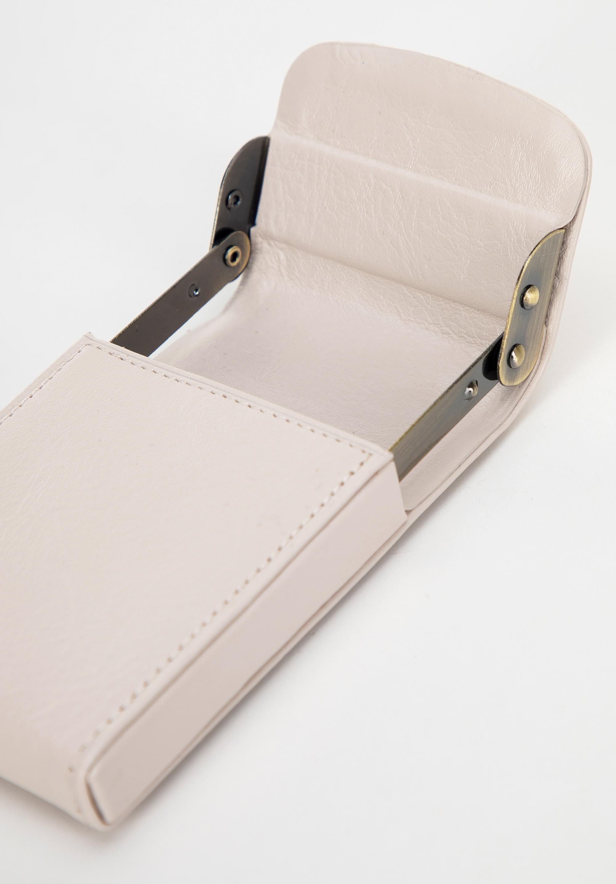 - Zamknięcie: Metalowy mechanizm na wizytówki zapewnia wygodne użytkowanie, umożliwiając łatwe wyciąganie i wkładanie wizytówek.