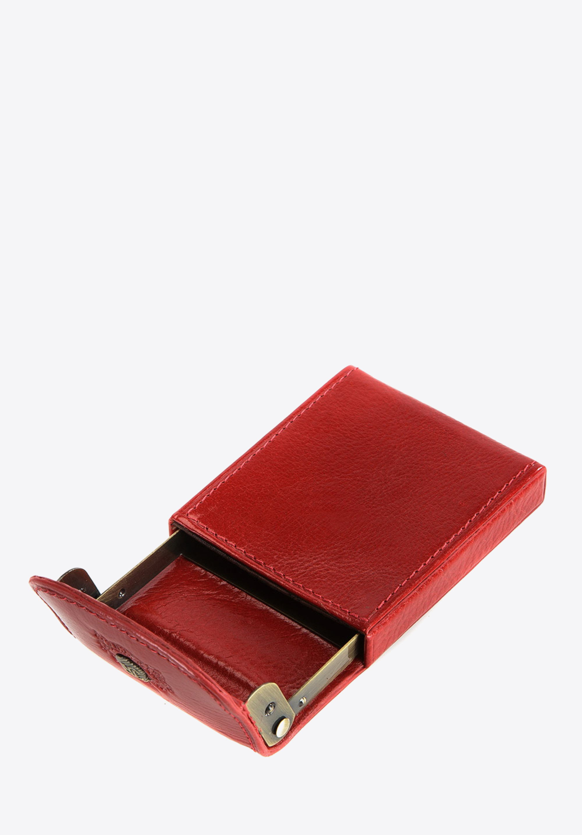 Stylowe etui na wizytówki wykonane z wysokiej jakości skóry naturalnej, podkreśli profesjonalizm w każdej sytuacji biznesowej. Prosty, klasyczny styl to oznaka elegancji, a metalowy mechanizm gwarantuje bezpieczeństwo przechowywanych wizytówek.