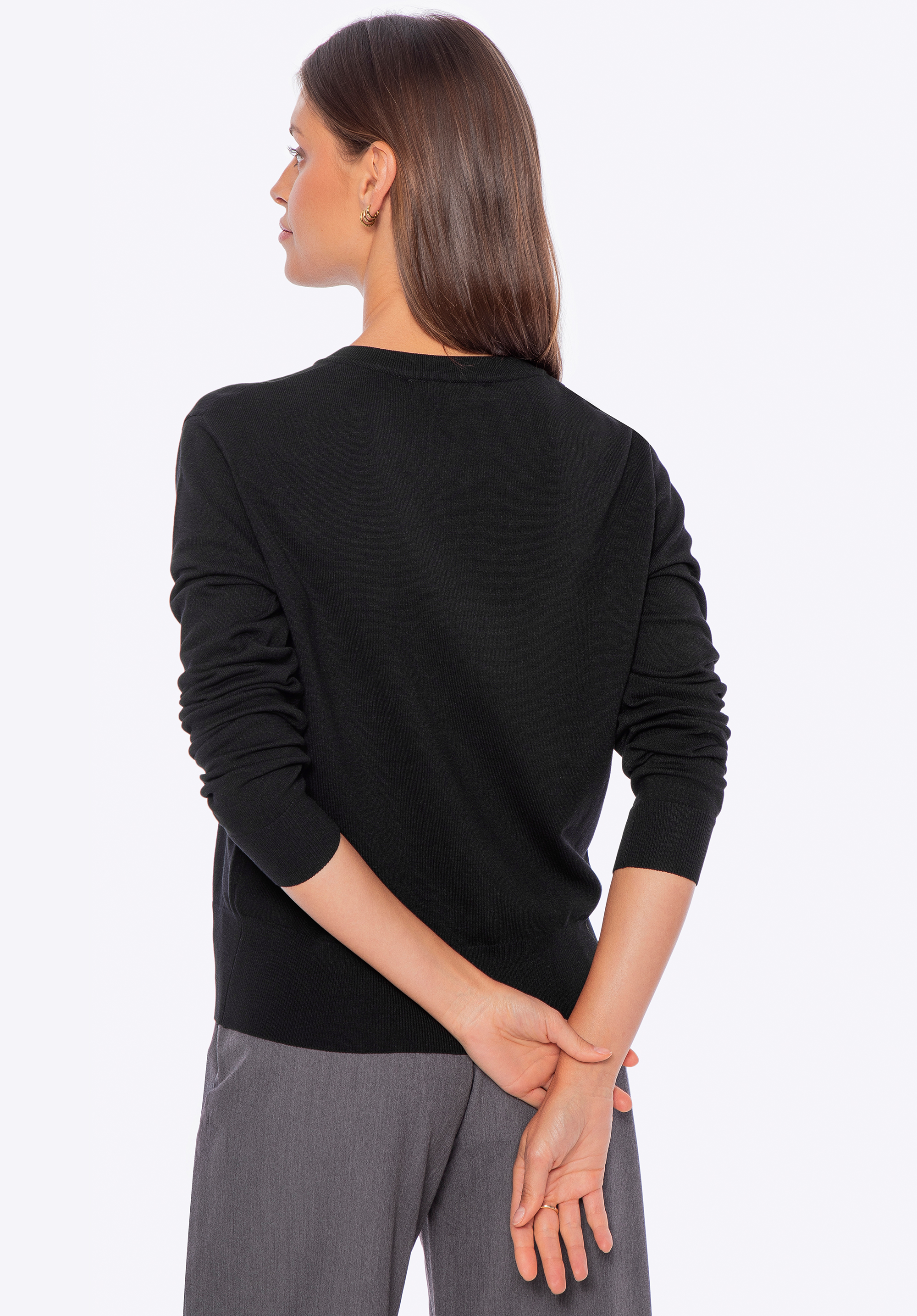 - Ponadczasowy dekolt: Klasyczny, okrągły dekolt zapewnia uniwersalny design, który łatwo łączy się z różnymi stylizacjami, podkreślając Twój wyrafinowany wygląd.
