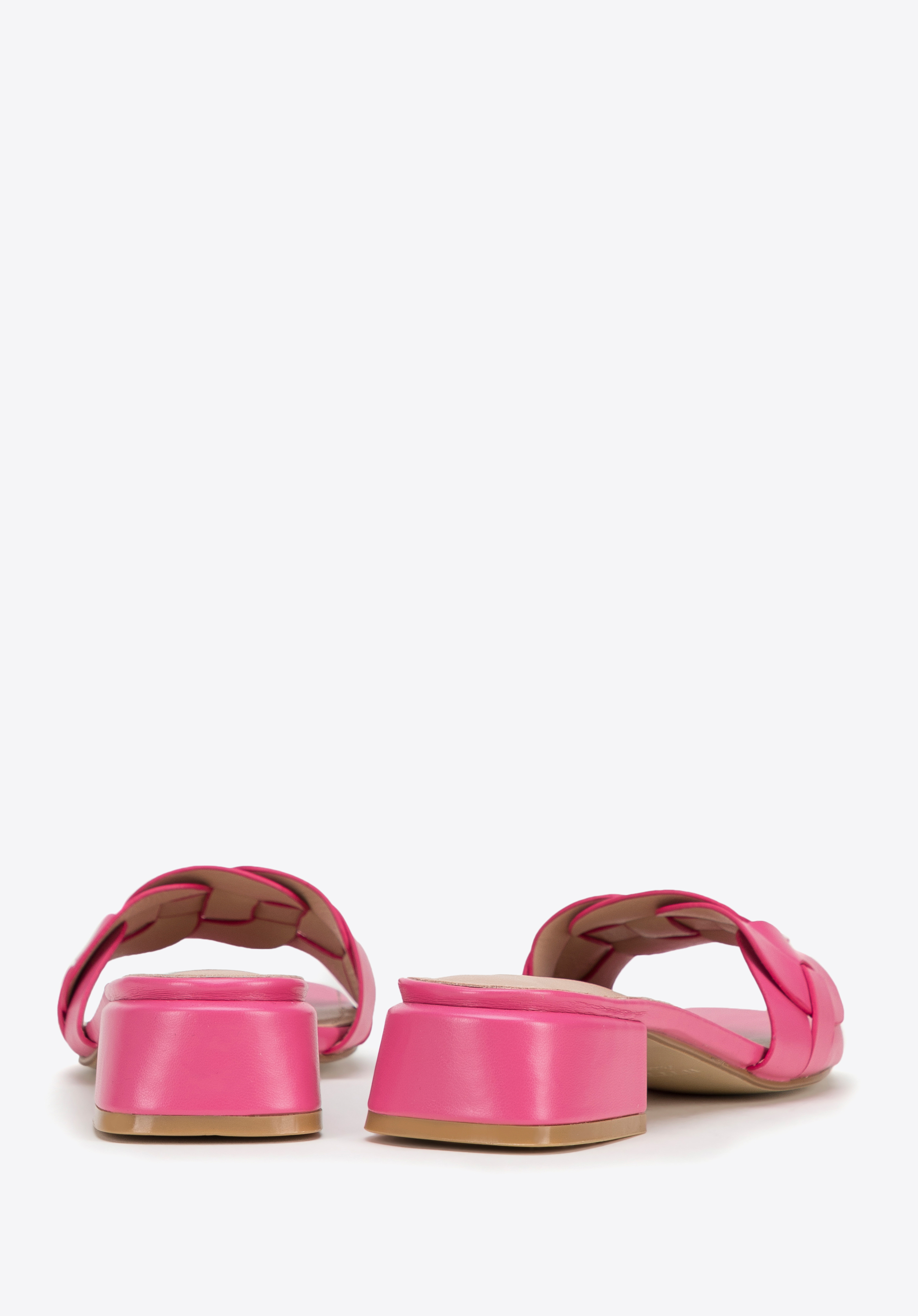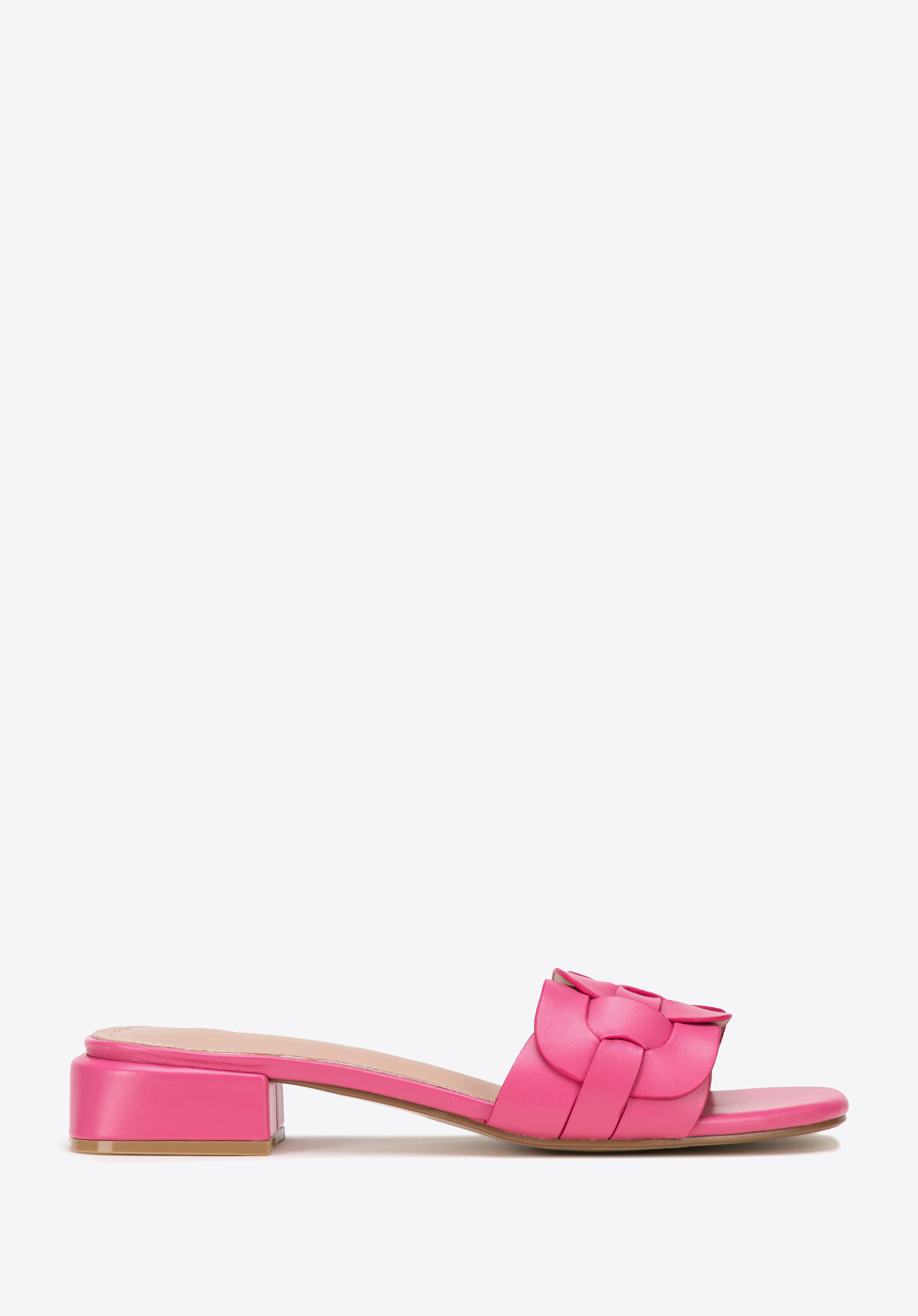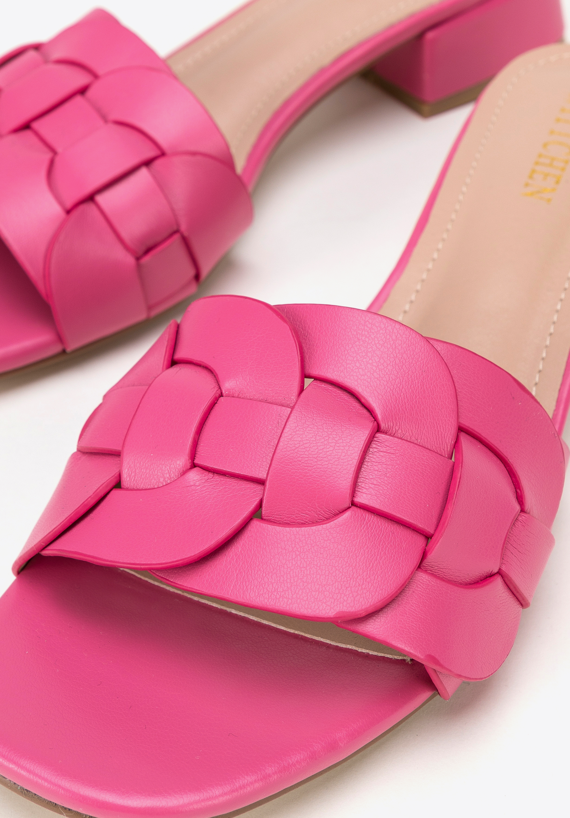 Te urocze klapki przydadzą Ci się na spacery, przyjęcia, imprezy oraz inne miłe okazje wiosną i latem. Mają ponadczasowy fason, który pięknie wyeksponuje stopę. Z przodu palce przytrzymuje szeroka plecionka o ciekawym, łańcuchowym splocie. Niewielki obcas zapewnia odpowiednie uniesienie pięty, dzięki któremu sylwetka się wysmukla. Klapki z plecionką na niskim obcasie dodadzą szyku Twoim letnim stylizacjom. Łącz je z falbaniastymi spódnicami, szmizjerkami i spodniami z szeroką nogawką.