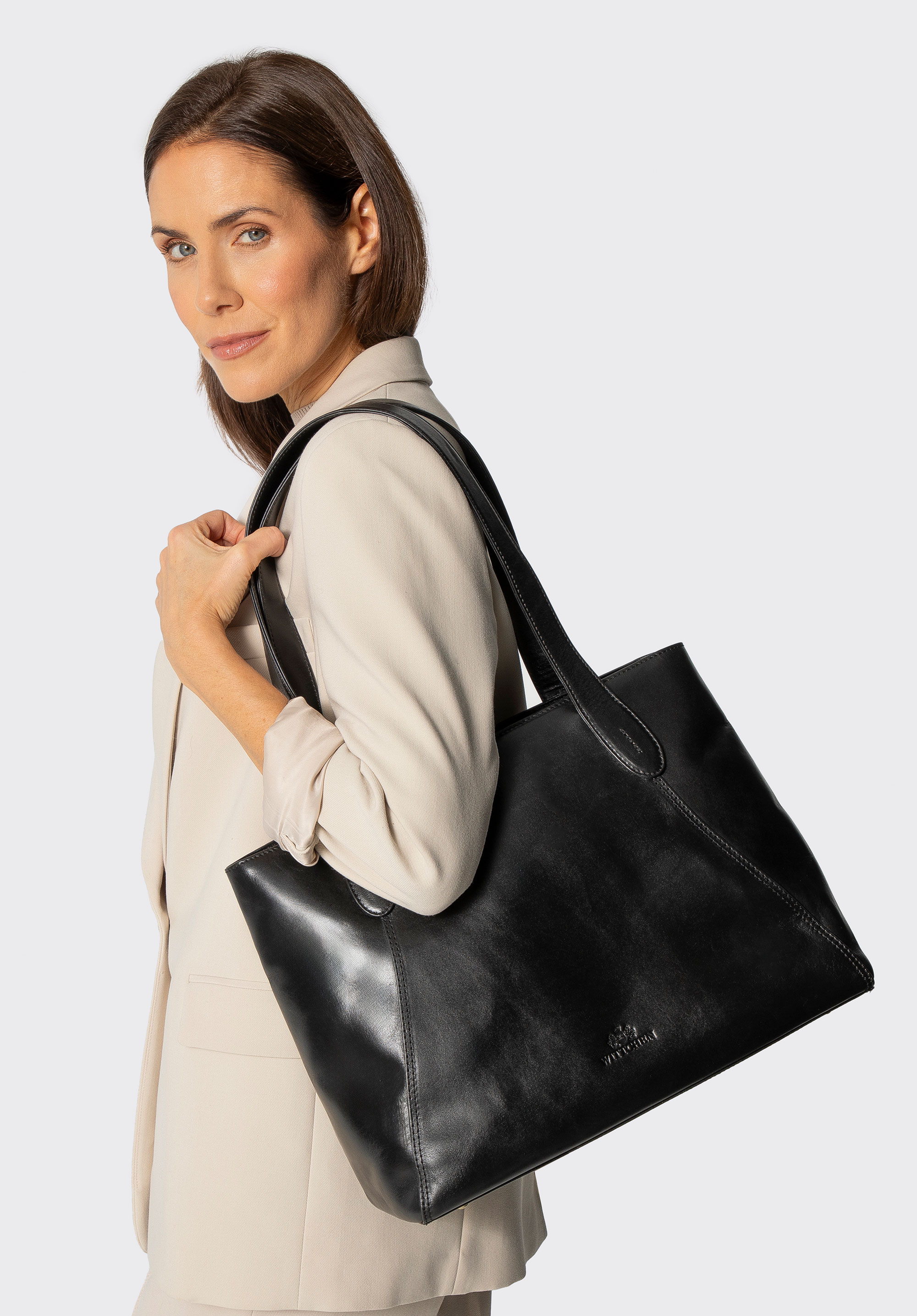 Postaw na klasykę – ta skórzana shopperka łączy elegancję, funkcjonalność i perfekcyjne wykończenie.