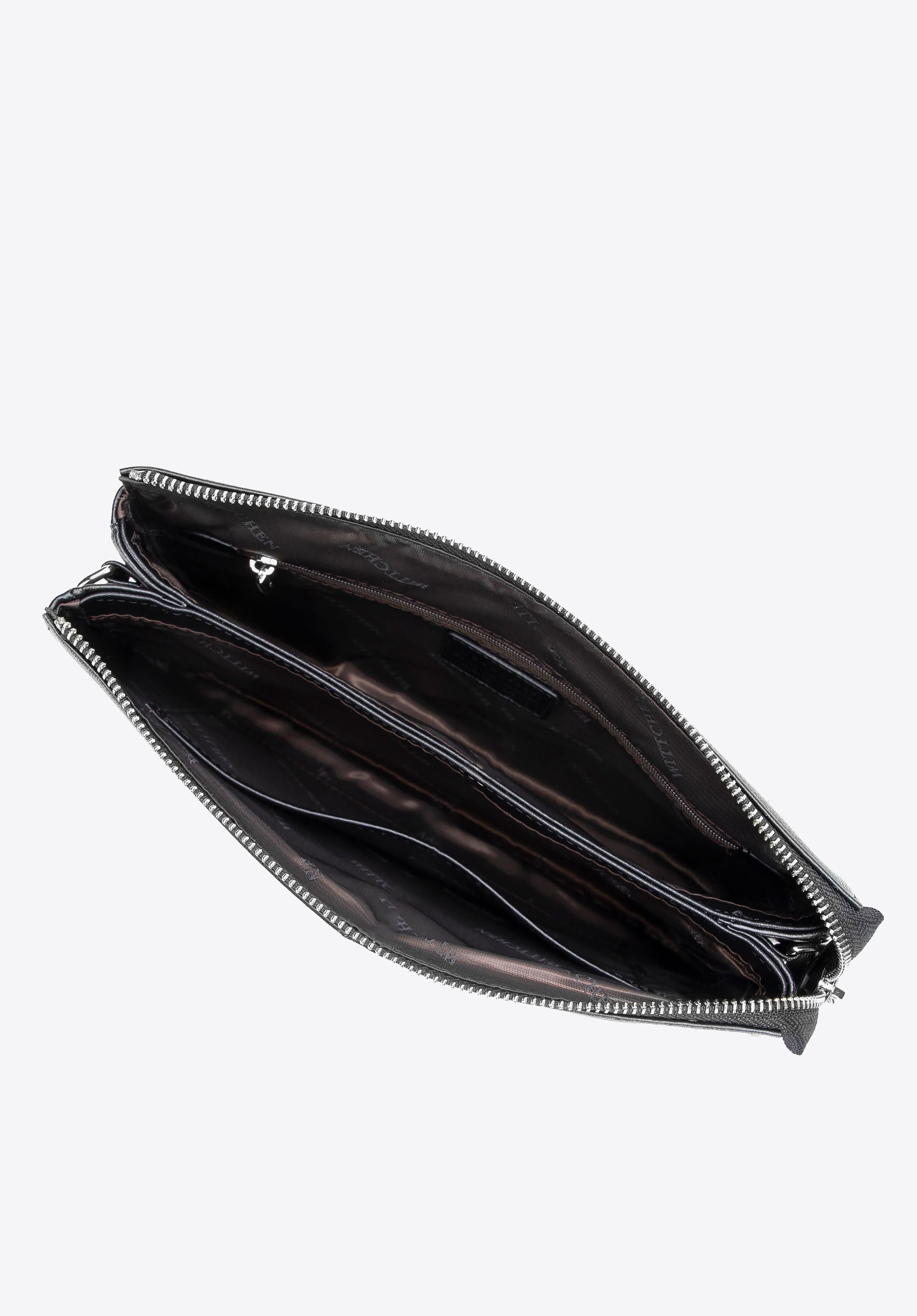 - Praktyczne wnętrze: Dwie kieszenie wewnętrzne, w tym jedna zamykana na zamek, pomagają zachować porządek.