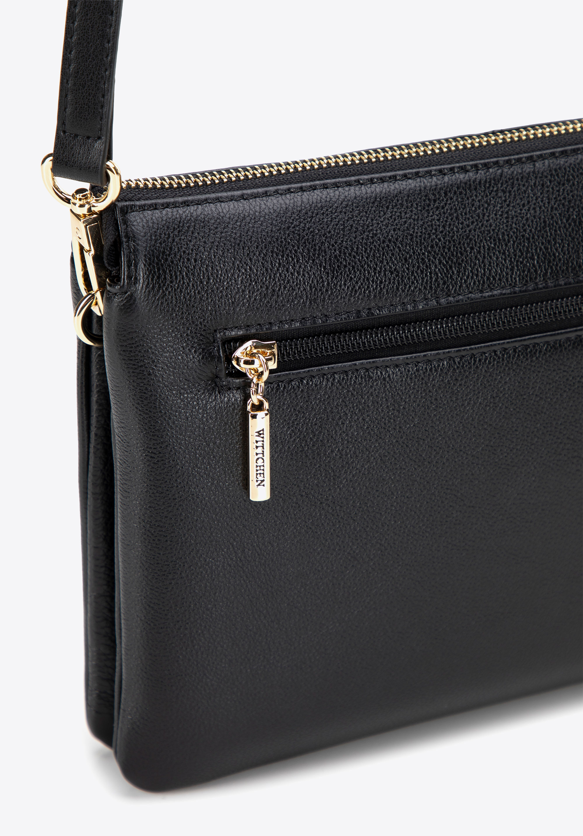 Styl, który idzie z Tobą krok w krok. Listonoszka o korpusie wykonanym z naturalnej skóry zachwyca elegancją i trwałością. Dopełniają ją regulowany pasek oraz wykończenia wewnętrzne z imitacji skóry, które dodają torbie lekkości, zapewniają wygodę i podnoszą jej trwałość w codziennym użytkowaniu. Dwukomorowa konstrukcja pozwala utrzymać porządek i sprawia, że wszystkie niezbędne rzeczy masz zawsze pod ręką. Zamek błyskawiczny chroni zawartość, a zewnętrzna kieszeń od strony ciała umożliwia szybki dostęp do drobiazgów. Praktyczne kieszenie wewnętrzne dopełniają całości, pomagając Ci zorganizować codzienny rytm w najlepszym stylu.