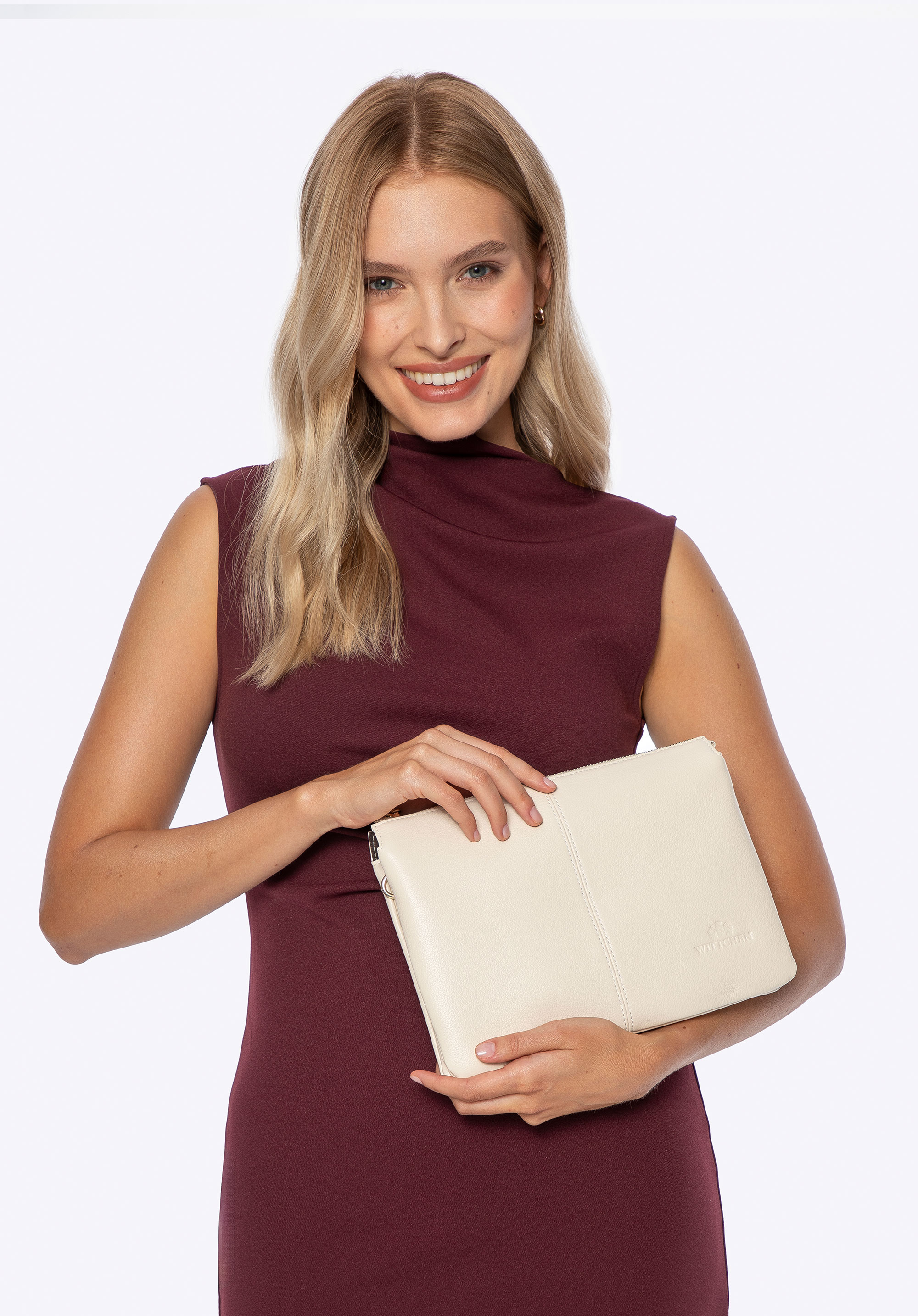 - Materiał: Korpus został wykonany z naturalnej skóry o szlachetnym wyglądzie i wyjątkowej trwałości. Regulowany pasek oraz wykończenia wewnętrzne z imitacji skóry, dodają torbie lekkości, komfortu i odporności na codzienne użytkowanie.