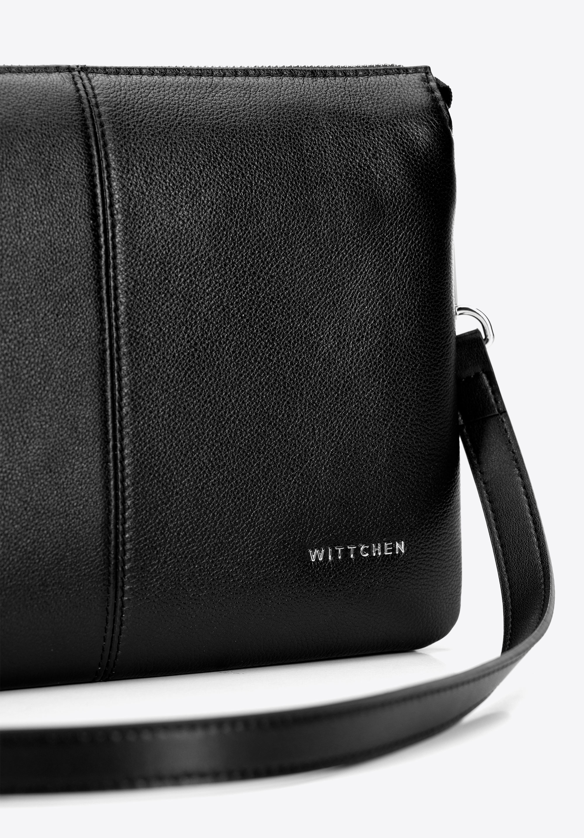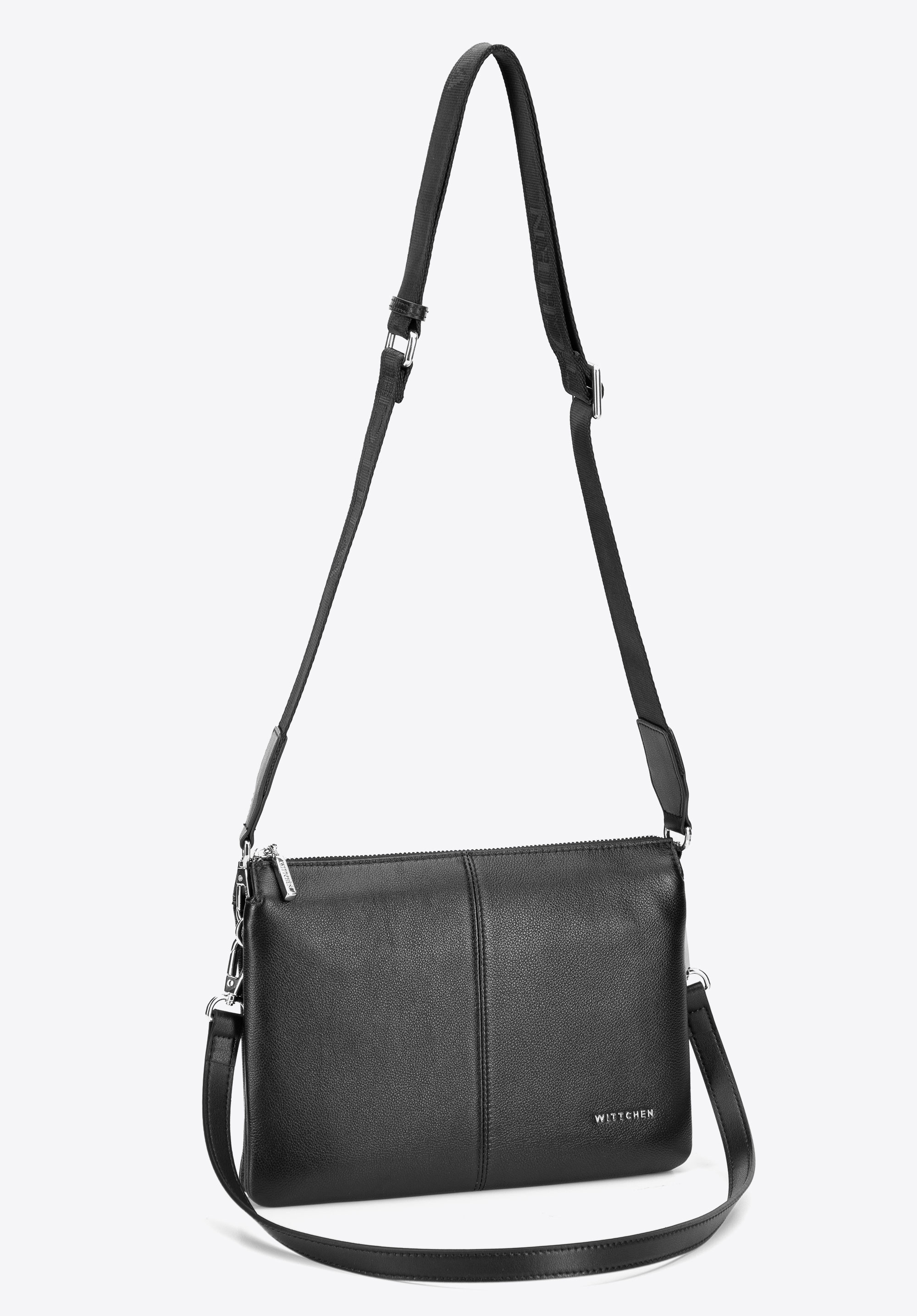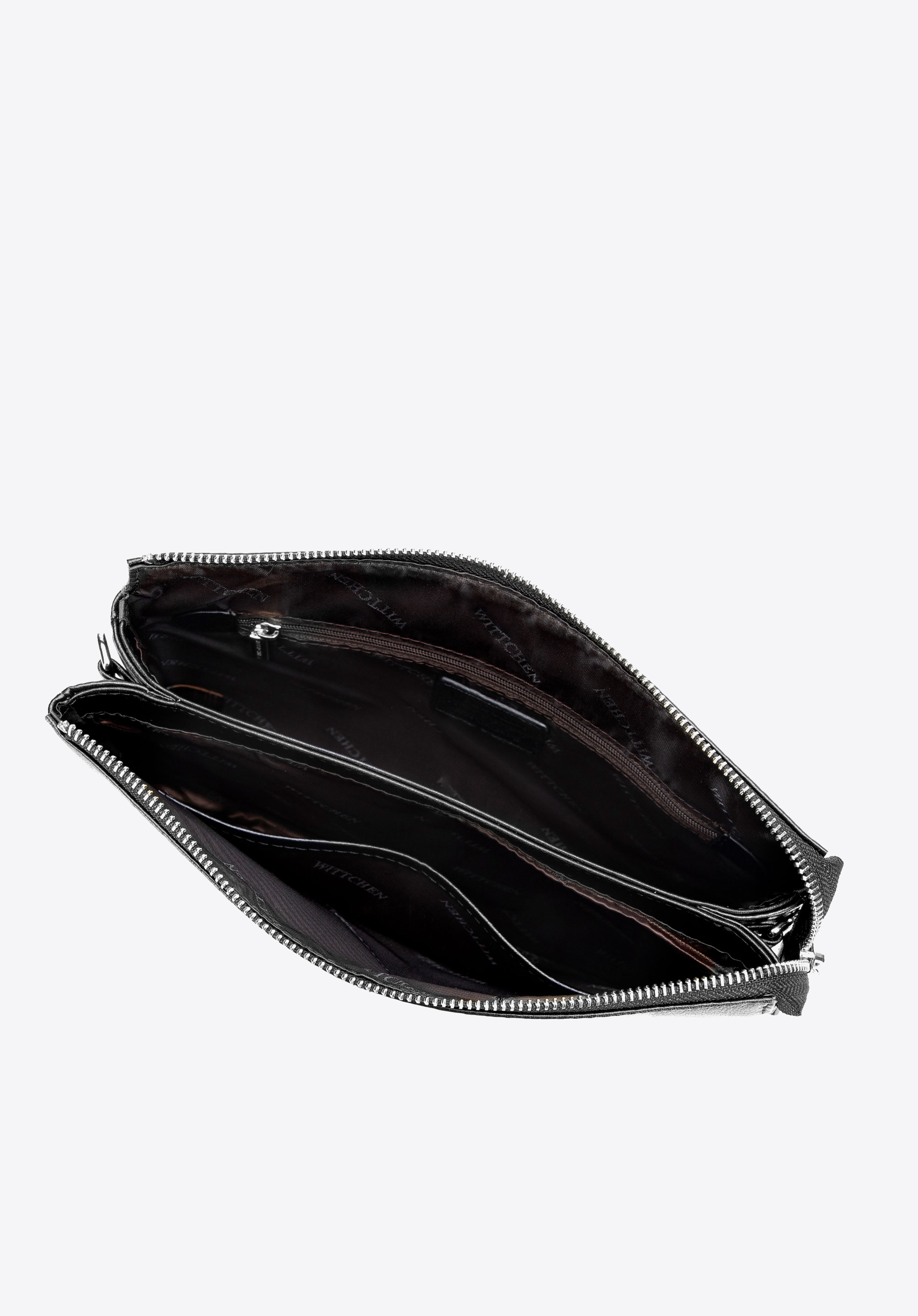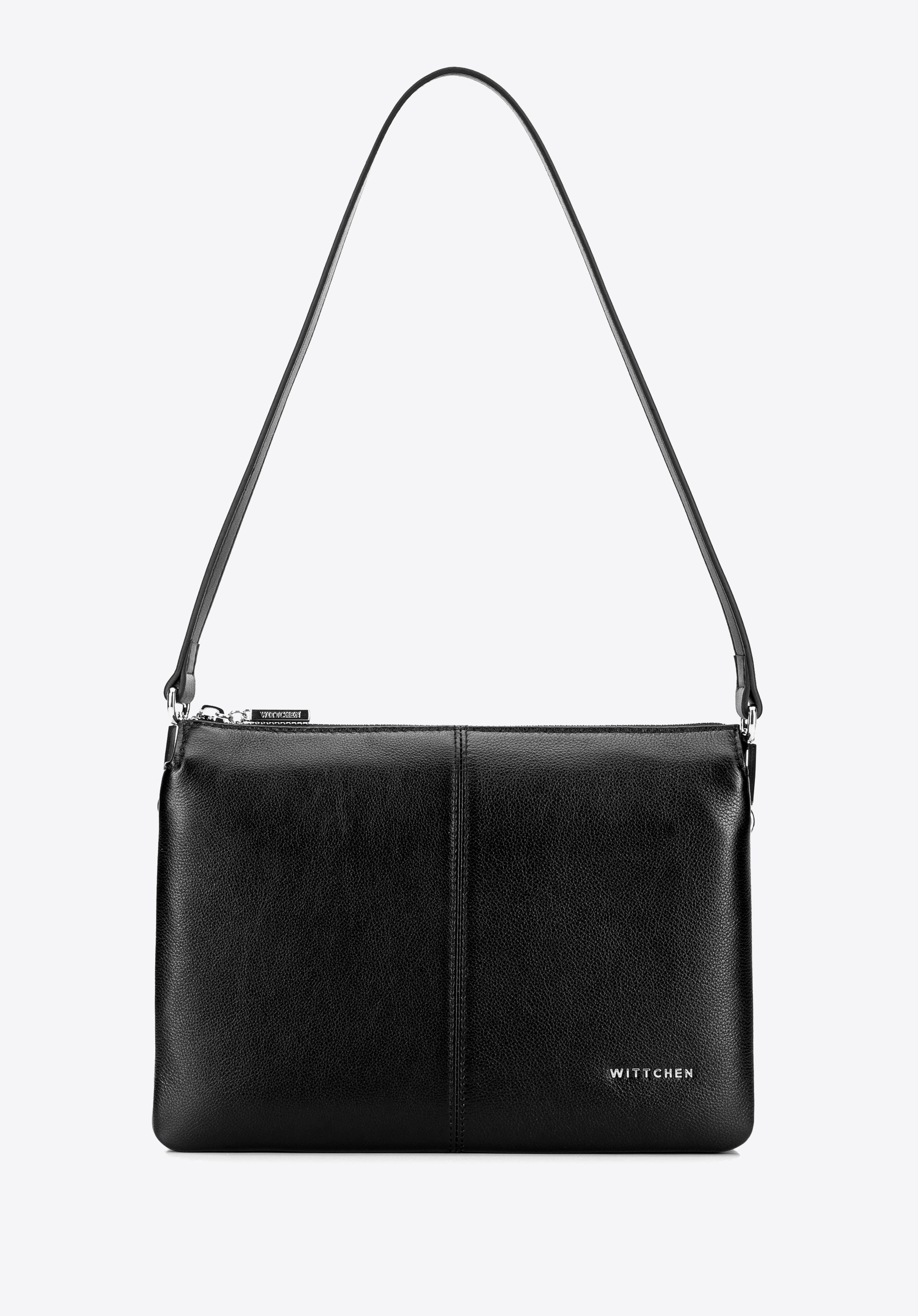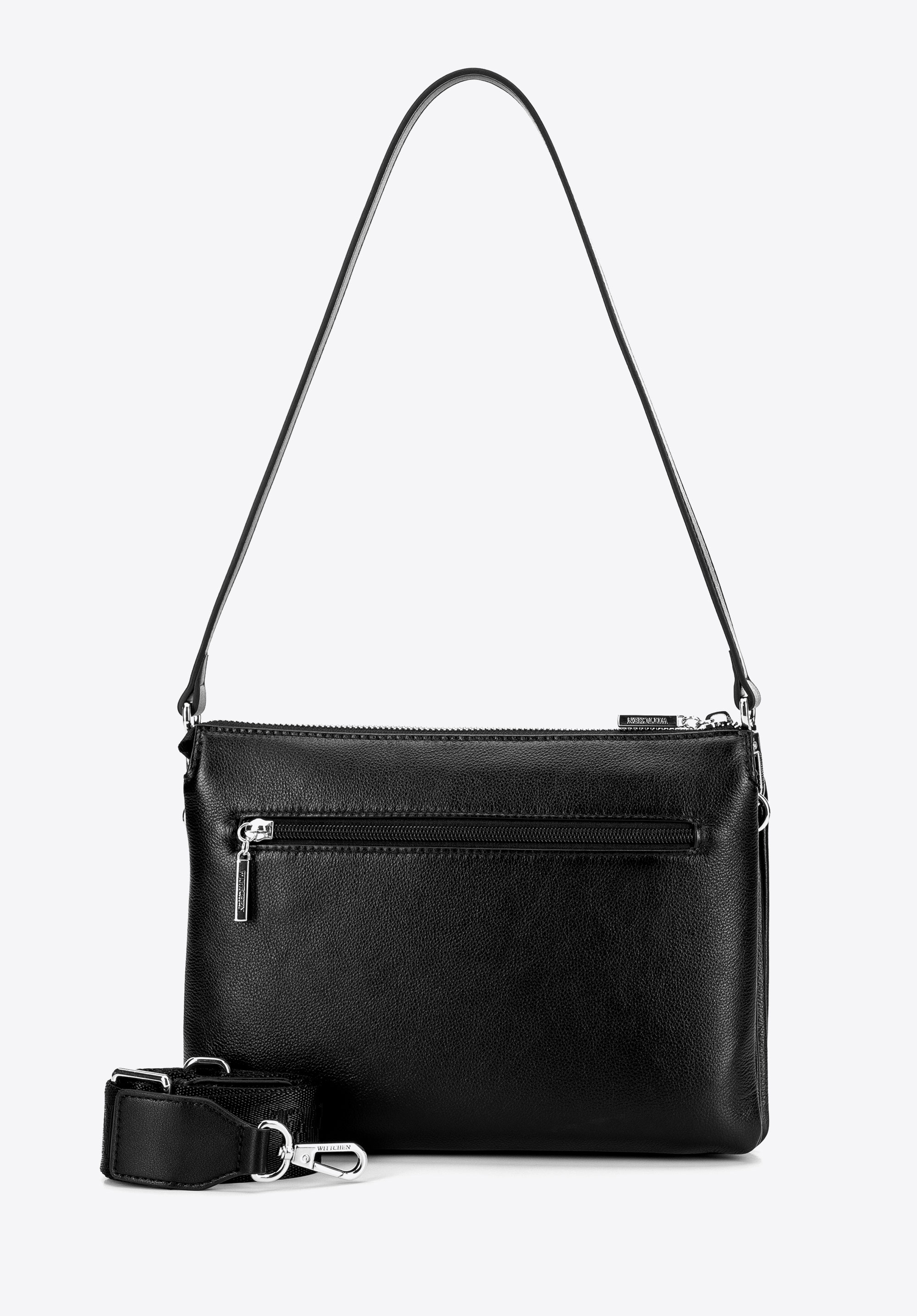 Klasyczna listonoszka ze skóry naturalnej dwukomorowa czarno - srebrna