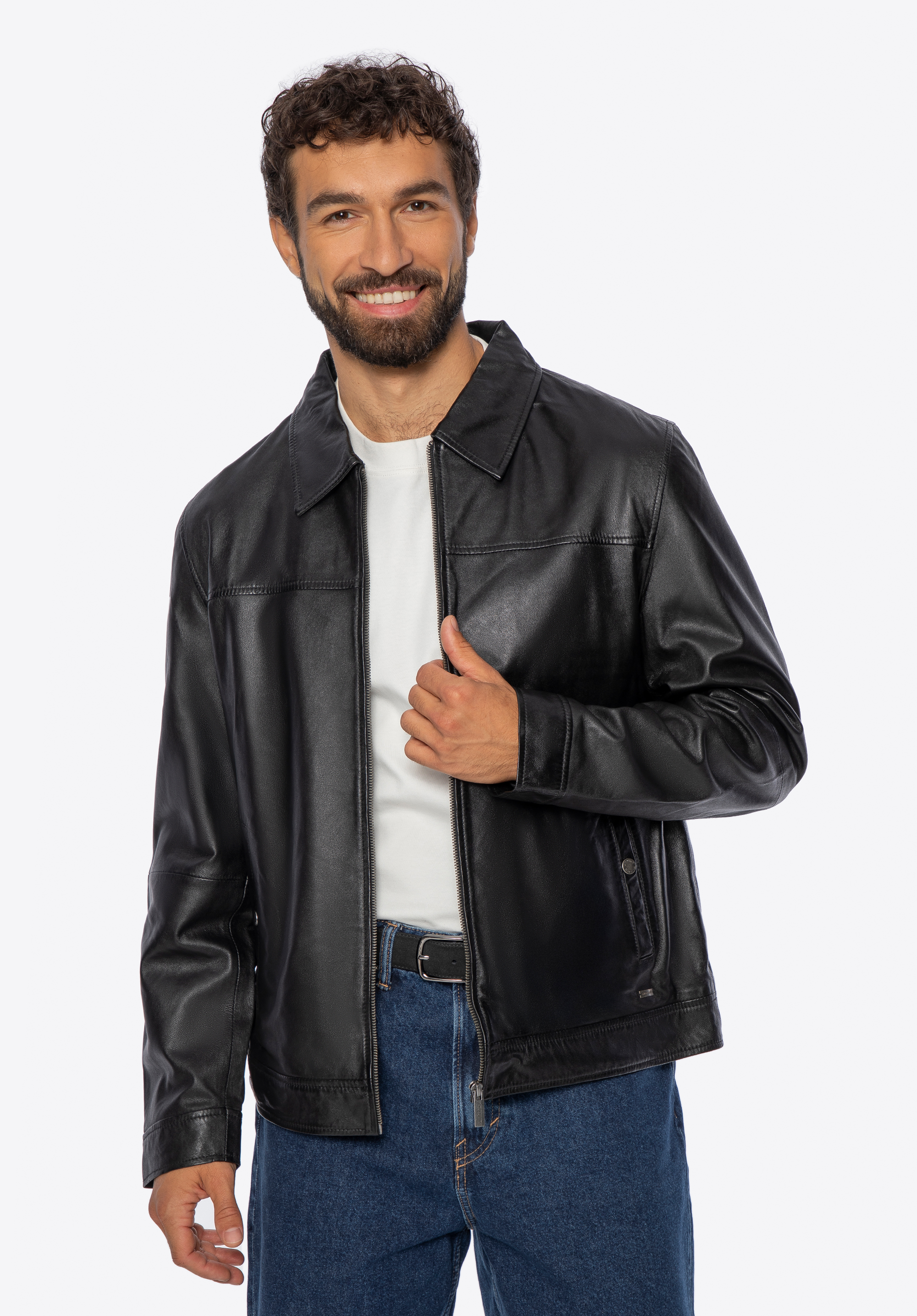 Postaw na kurtkę, która łączy elegancję z funkcjonalnością. Wykonana ze skóry owczej, zachwyca miękkością, trwałością i ponadczasowym stylem. Klasyczny kołnierz dodaje elegancji, a praktyczne zapięcie na zamek gwarantuje wygodę i szybkie dopasowanie do każdej sytuacji. Metalowe logo producenta na boku oraz logowane suwaki podkreślają ekskluzywny charakter kurtki. Funkcjonalność idzie w parze z designem: dwie kieszenie po bokach na napę pozwalają wygodnie przechować drobiazgi, a w środku znajdziesz dwie kieszenie, w tym jedną na zamek, zapewniające bezpieczne miejsce na telefon, portfel czy dokumenty.