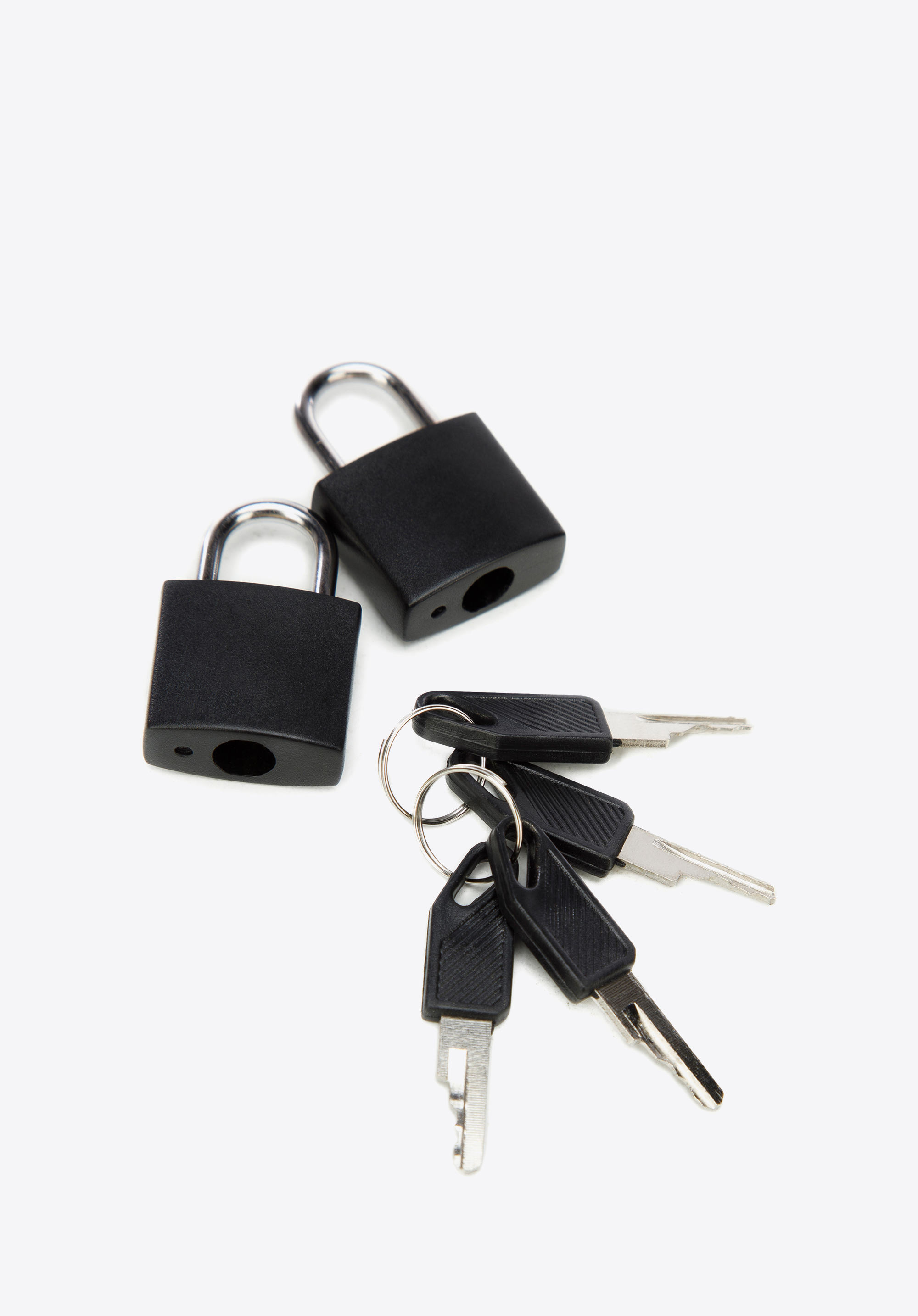 z mosiądzu pokrytego tworzywem ABS. Dzięki niewielkim rozmiarom zmieścisz je do małej kosmetyczki lub torebki nerki. Możesz nimi zabezpieczyć przedmioty w domu lub w podróży i zadbać o bezpieczeństwo swoich rzeczy.