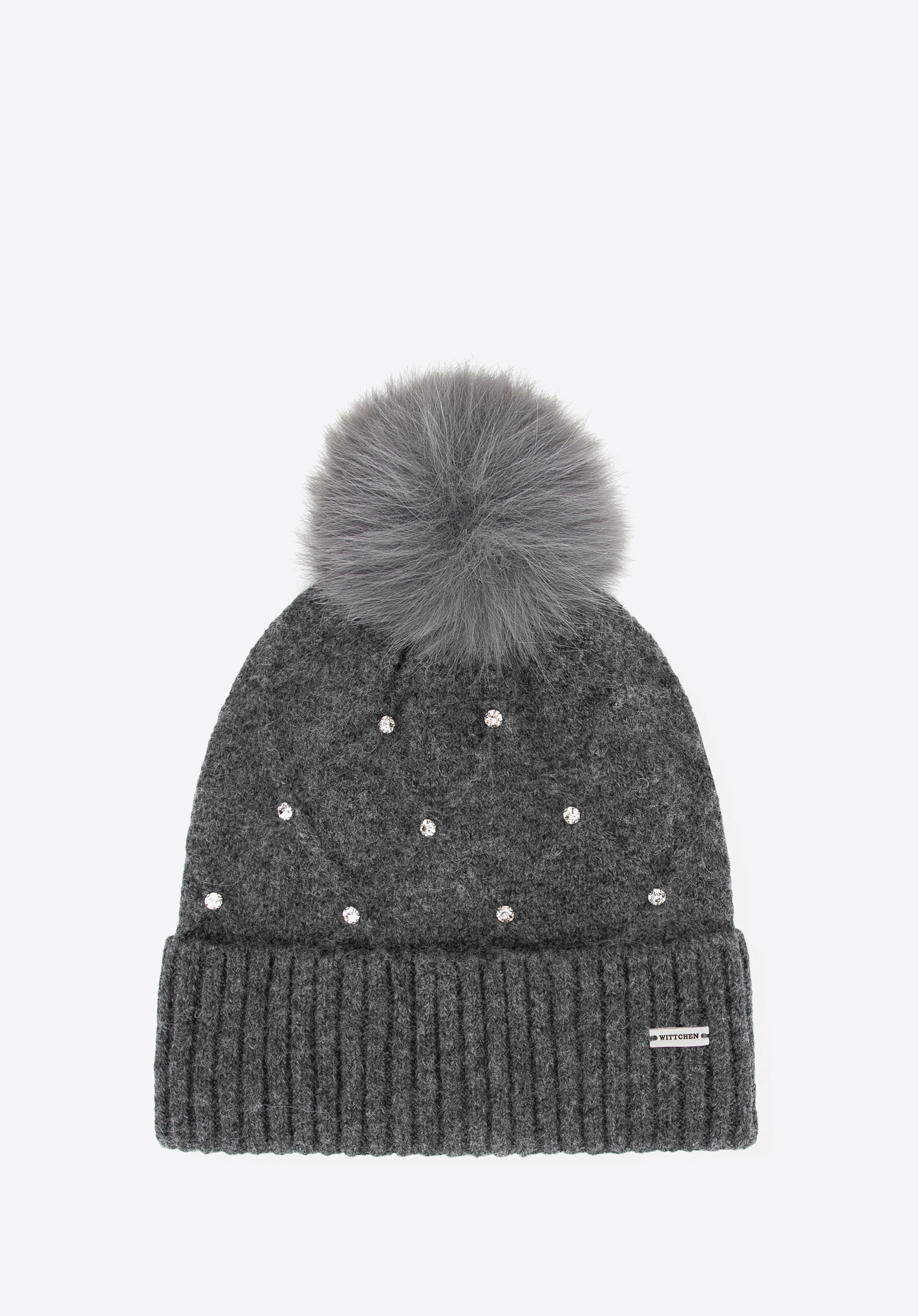 - Detale: Miękki pompon wykonany z poliestru oraz subtelne kryształki z tworzywa sztucznego dodają całości kobiecego, eleganckiego charakteru.