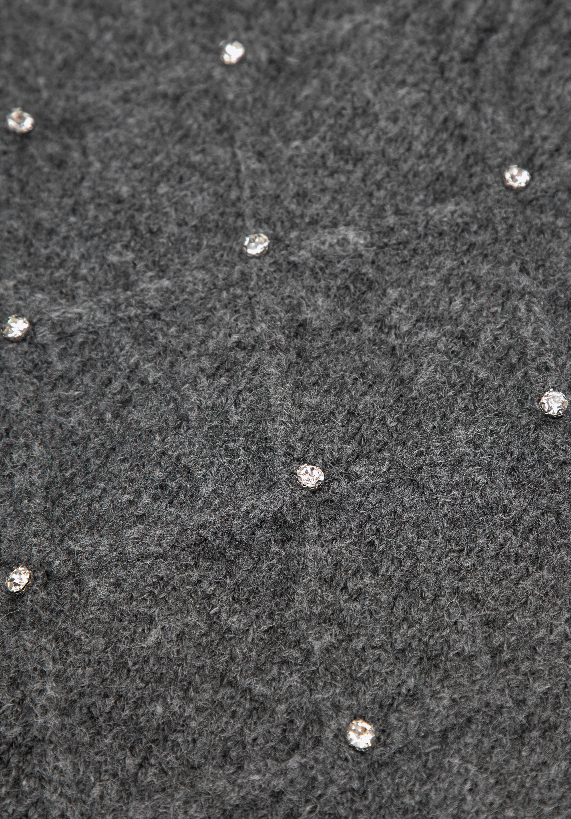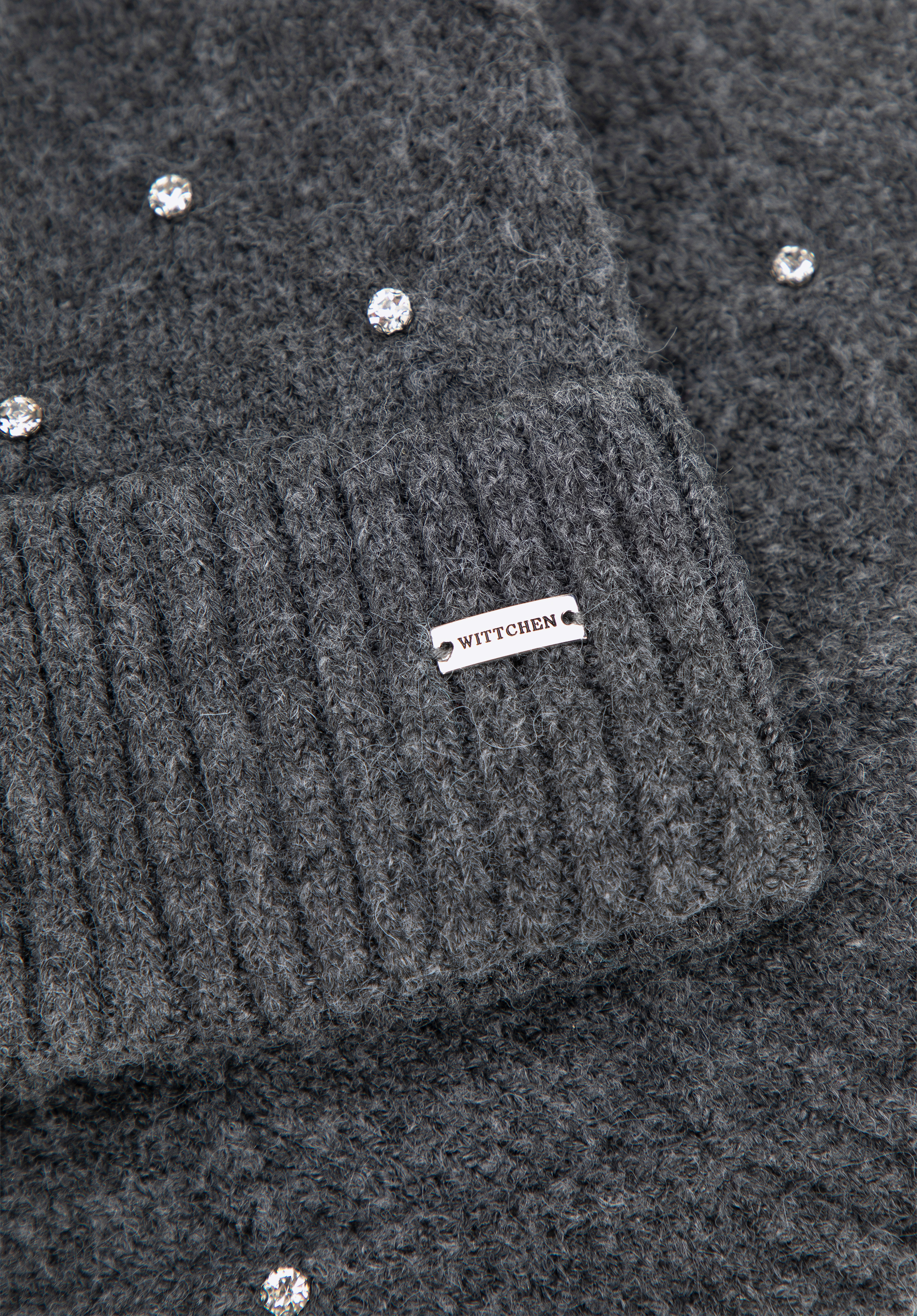 - Skład czapki i komina: 65% poliester, 13% akryl, 13% nylon, 6% wełna, 3% spandex; elementy ozdobne – 100% poliester, kryształki z tworzywa sztucznego.