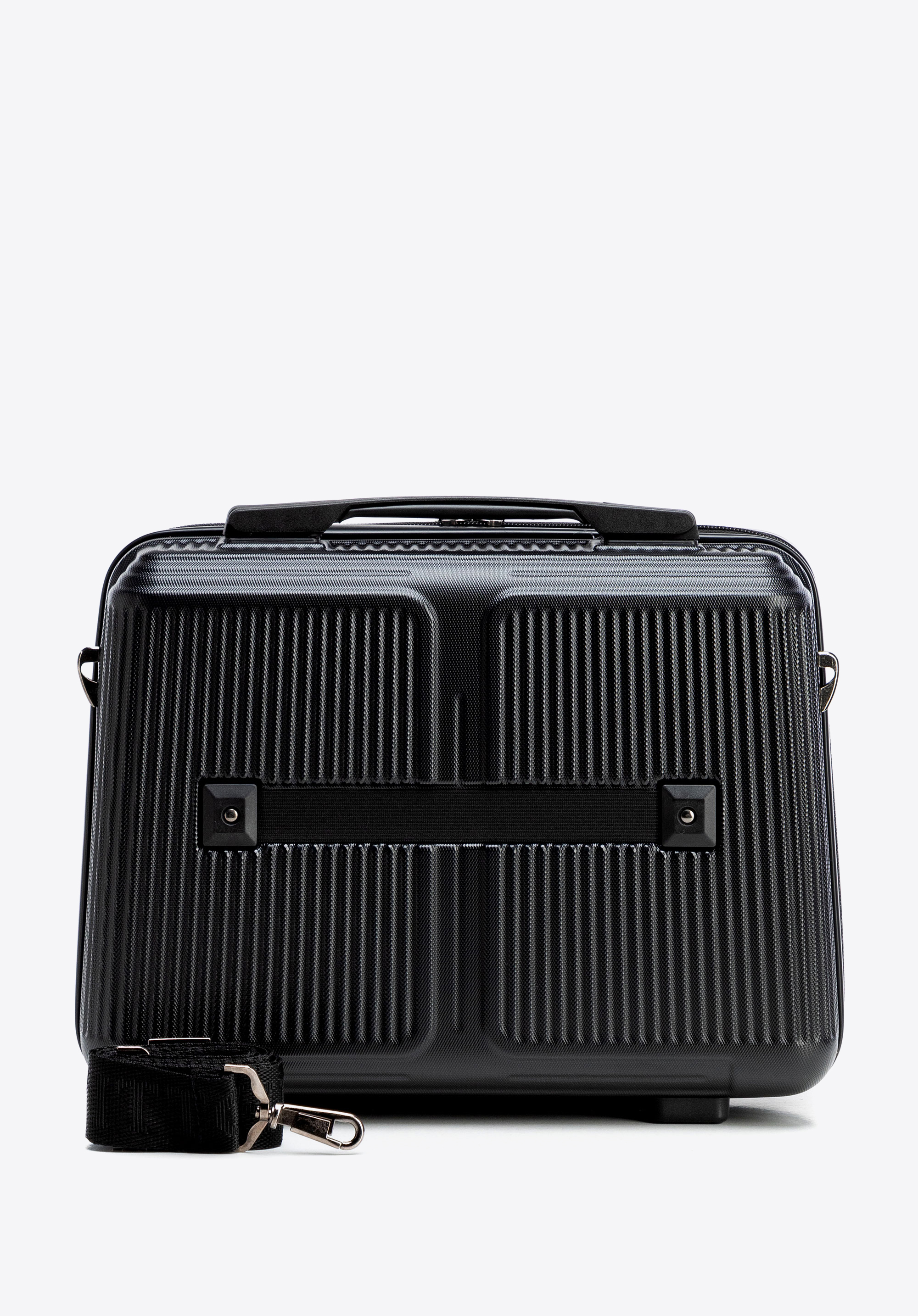- Wygoda użytkowania: Mała walizka wyposażona jest w rączkę, natomiast modele średni i duży posiadają 2 uchwyty, co zwiększa komfort przenoszenia. Kosmetyczka oferuje rączkę do przenoszenia oraz regulowany, odpinany pasek na ramię.