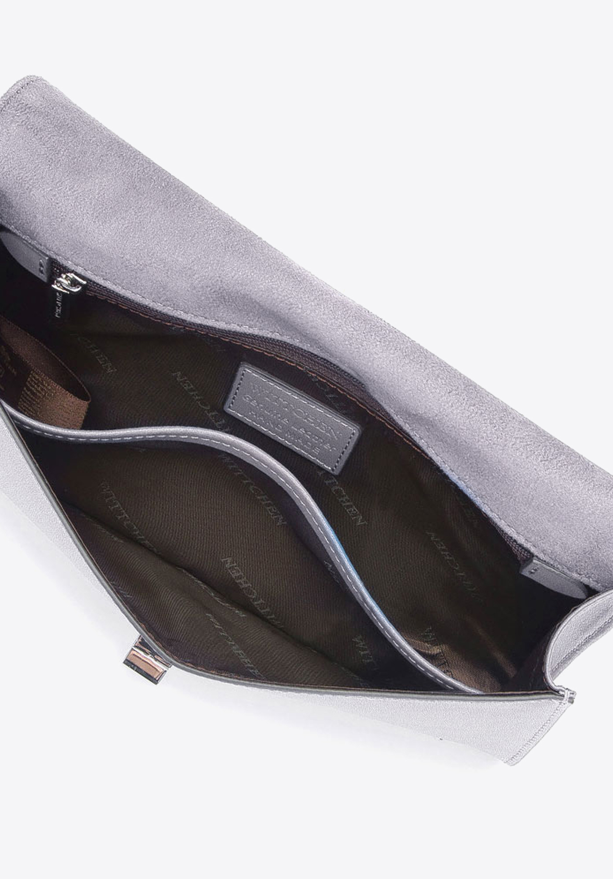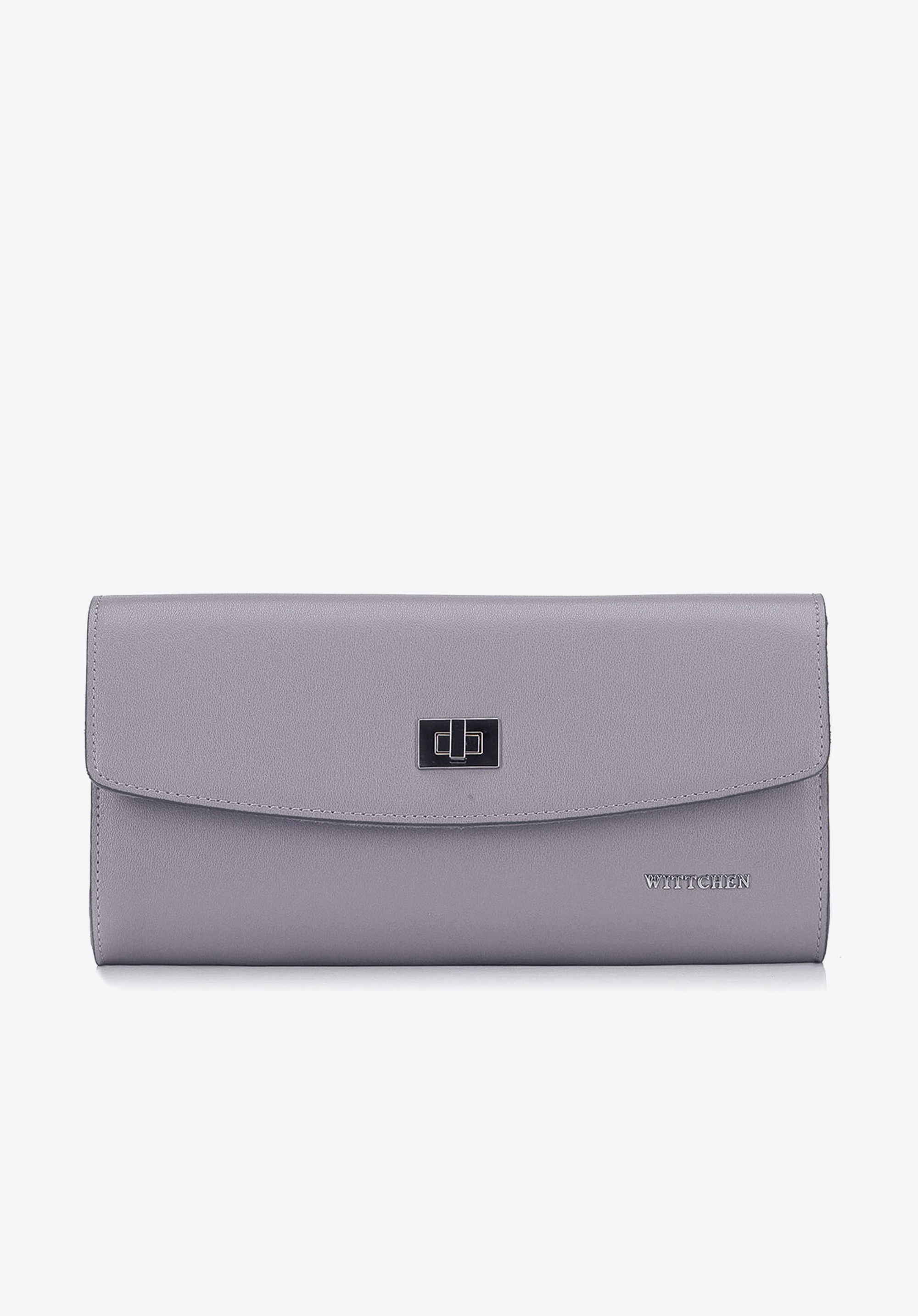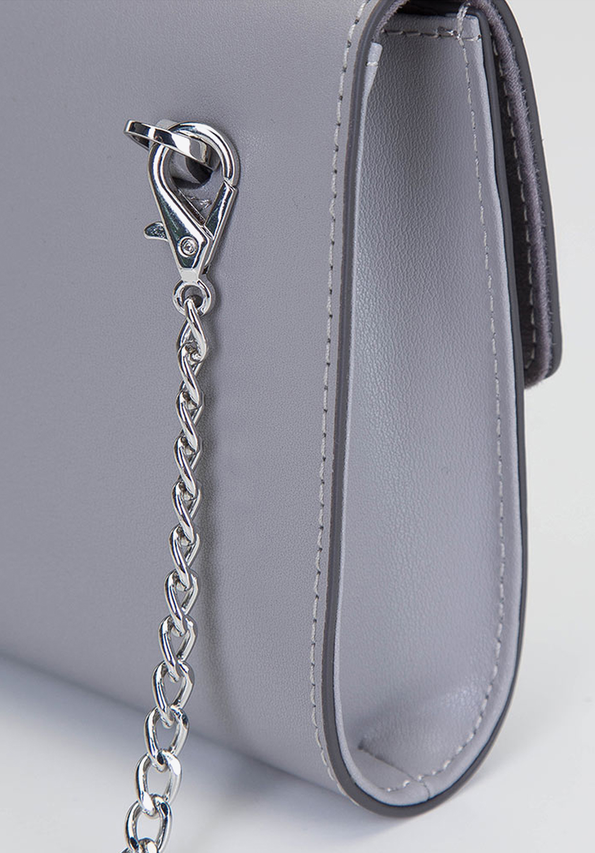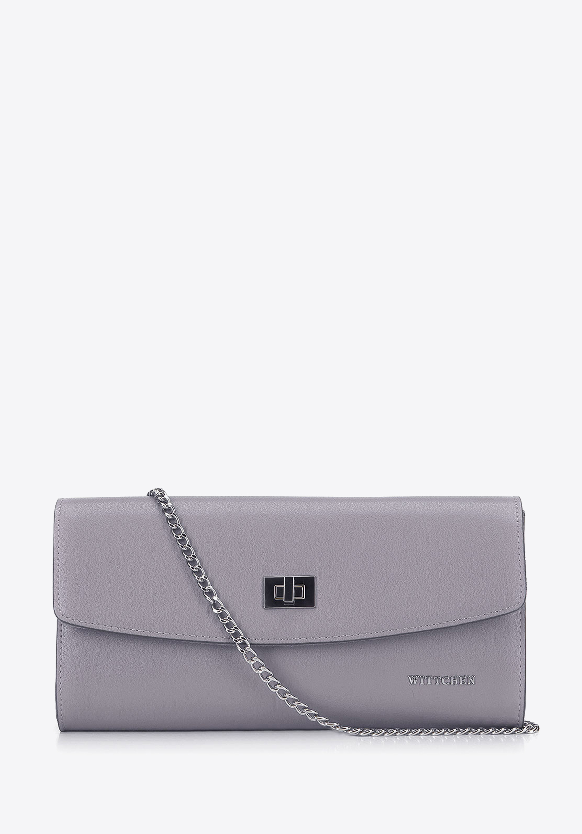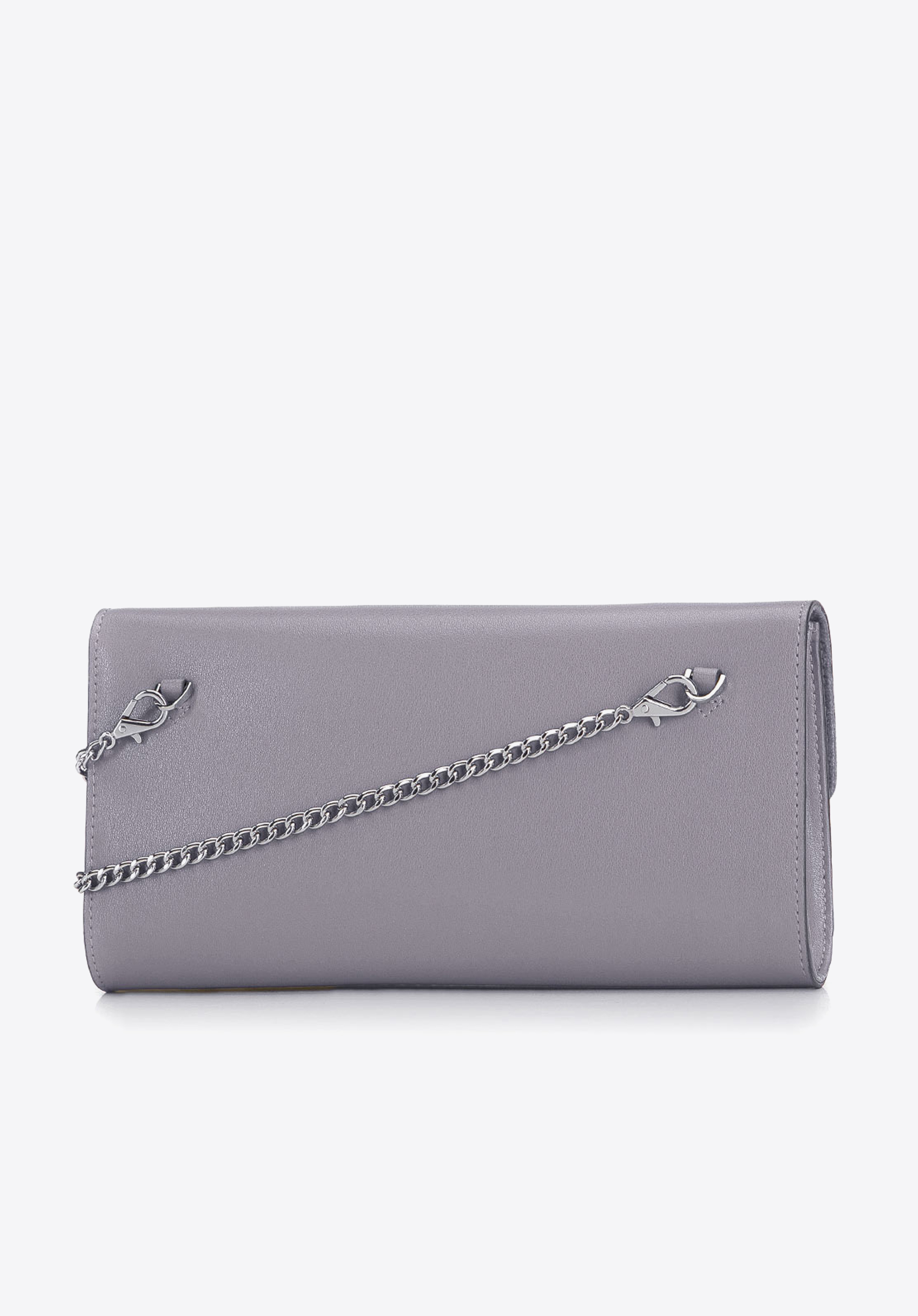 Kopertówka skórzana prosta z łańcuszkiem szara
