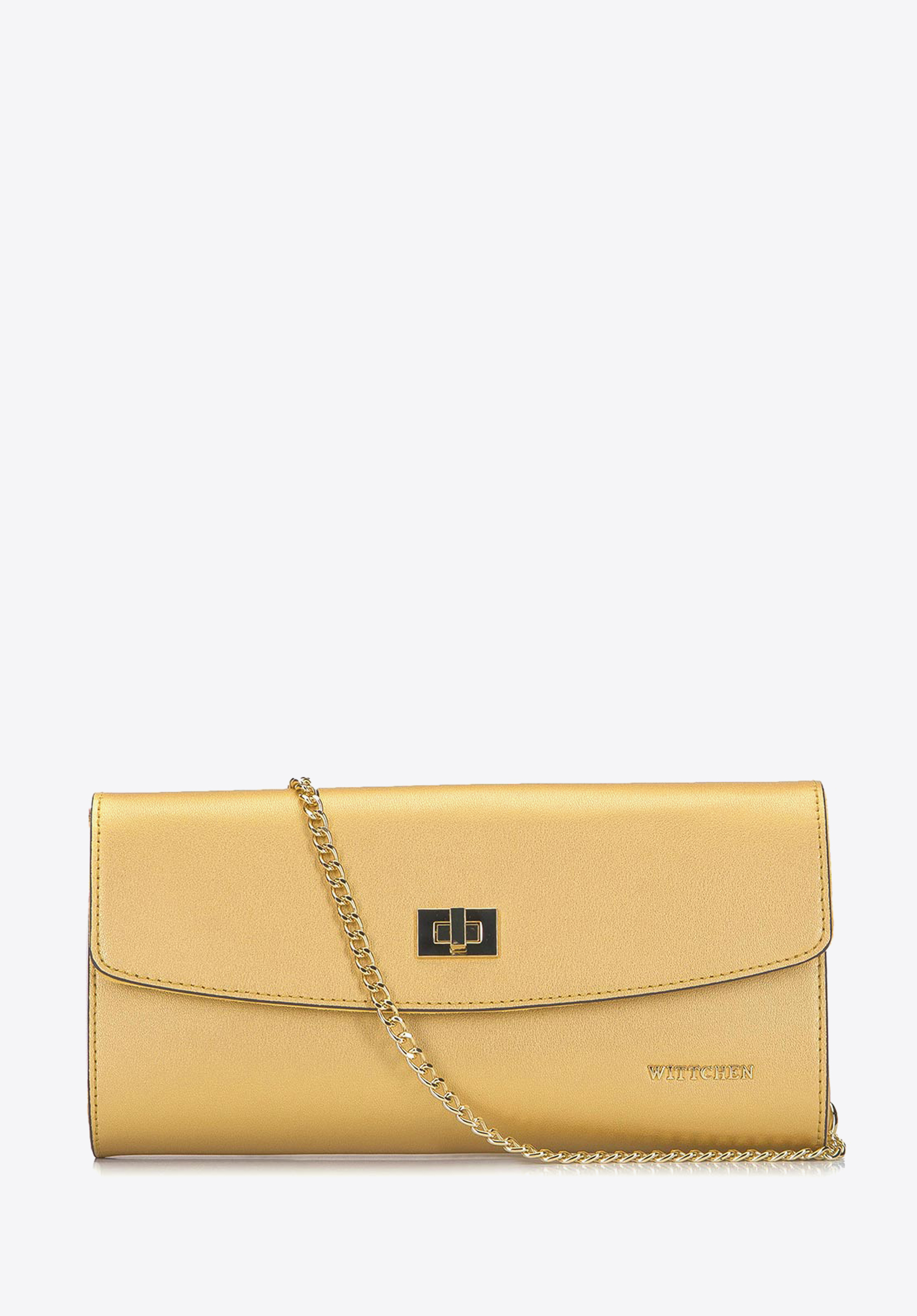 Kopertówka, czyli torebka w kształcie koperty to idealny dodatek na wieczory spacer czy elegancką kolację. Uszyta jest z wysokiej jakości skóry naturalnej, która będzie świetnie wyglądała przez lata. Ma popularny, prosty fason o lekko zaokrąglonych brzegach i płytko wykrojony brzeg klapy. Ten model możesz nosić zarówno na doczepianym pasku ze wstawkami z łańcucha, w dłoni, a nawet pod pachą. Nie dość, że zachwyca klasą i szykiem to jest dość szeroka i pomieści naprawdę sporo drobiazgów, na przykład: kartę płatniczą, drobne kosmetyki i malutki flakonik z perfumami. Prosta skórzana kopertówka z łańcuszkiem to eleganckie wykończenie Twoich stylizacji.